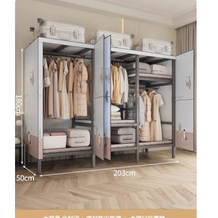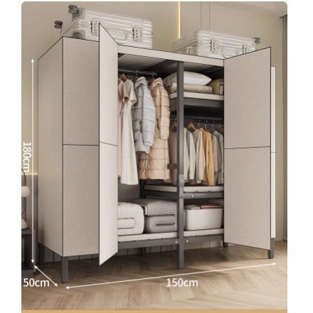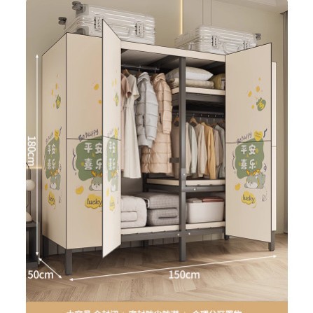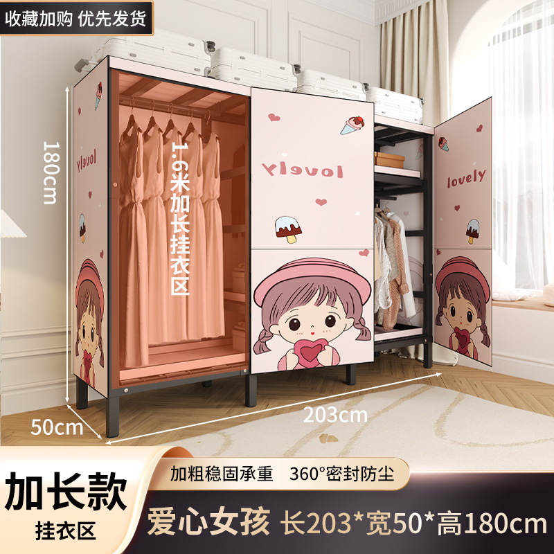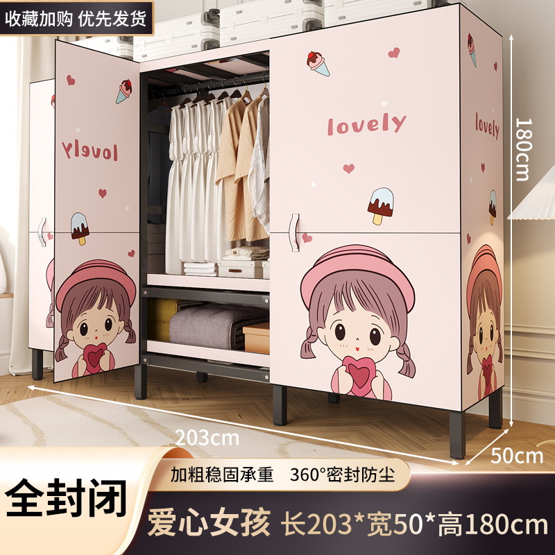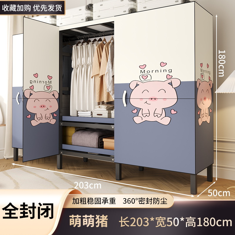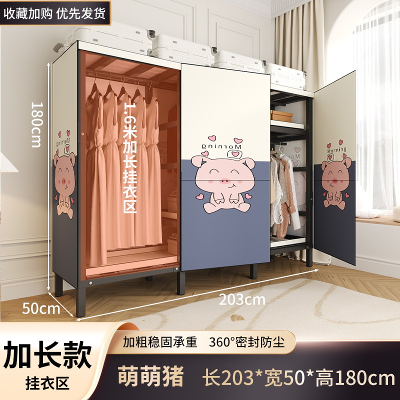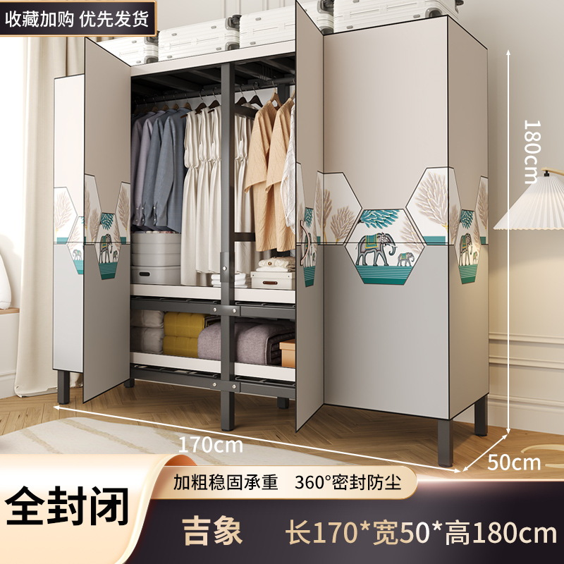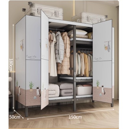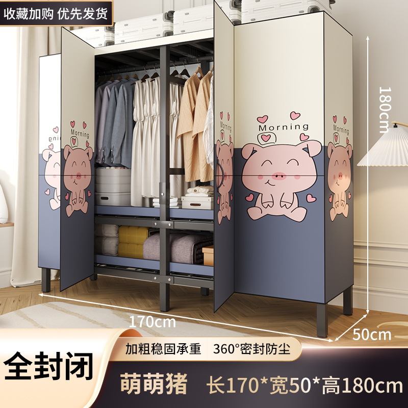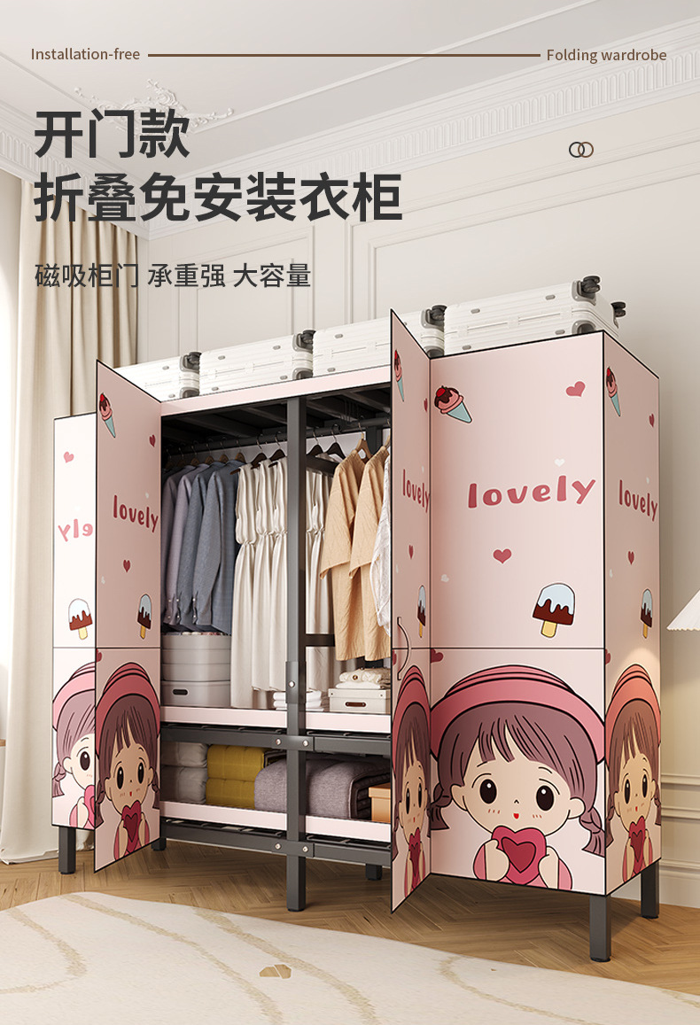 설치 무료 옷장 홈 침실 간단한 조립 천 옷장 접이식 전체 강철 프레임 임대 룸 옷장 견고하고 내구성
