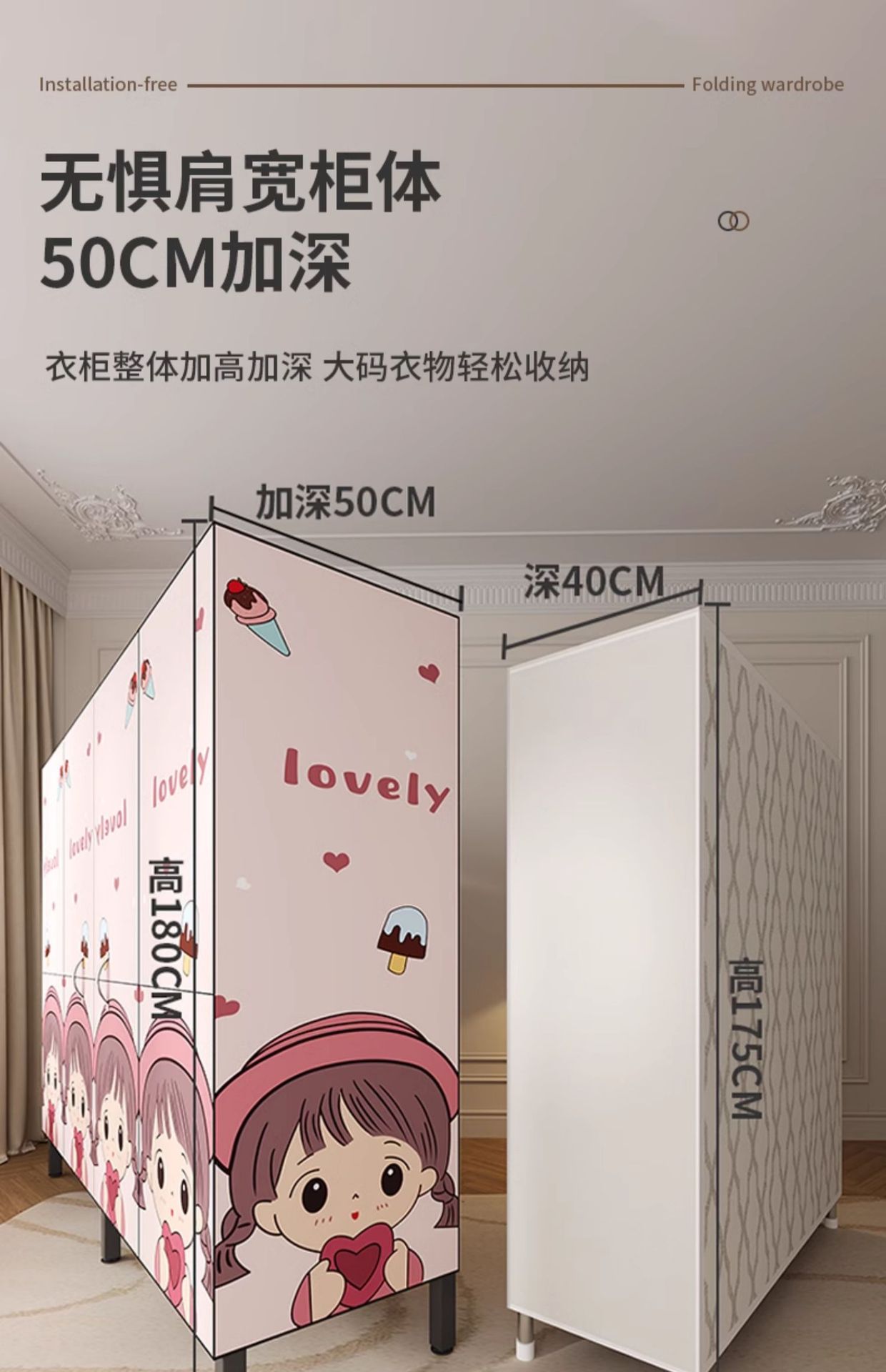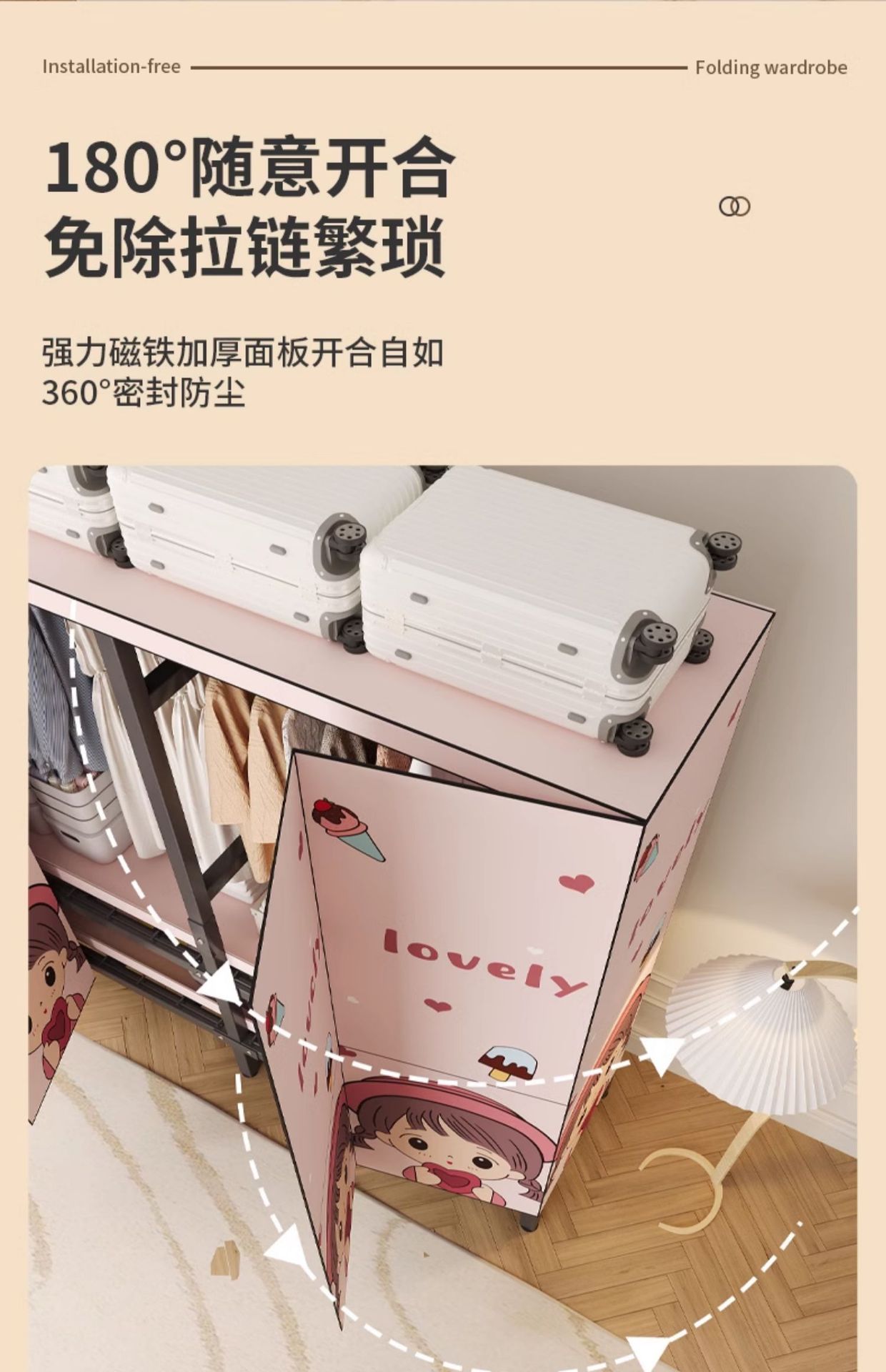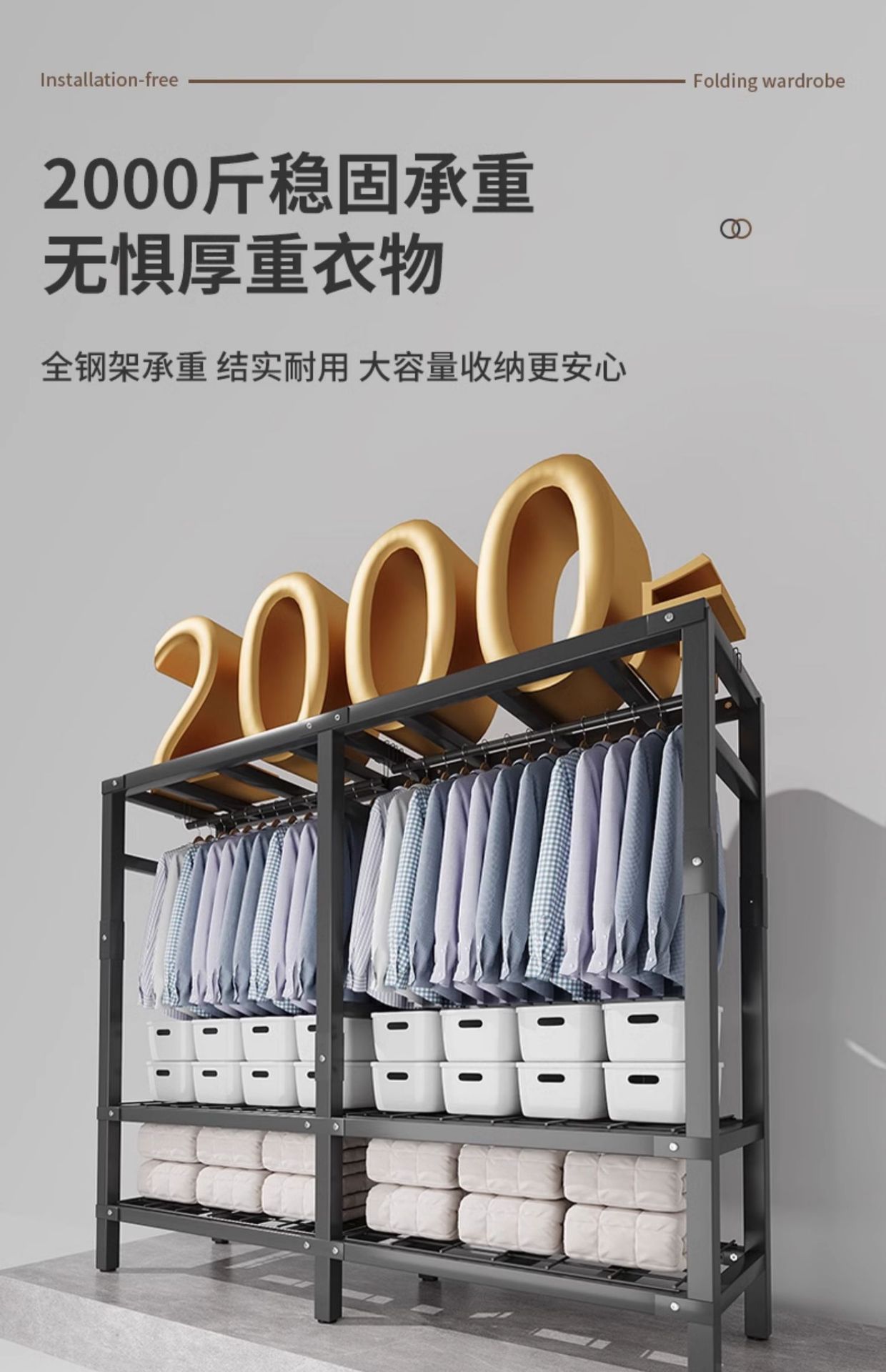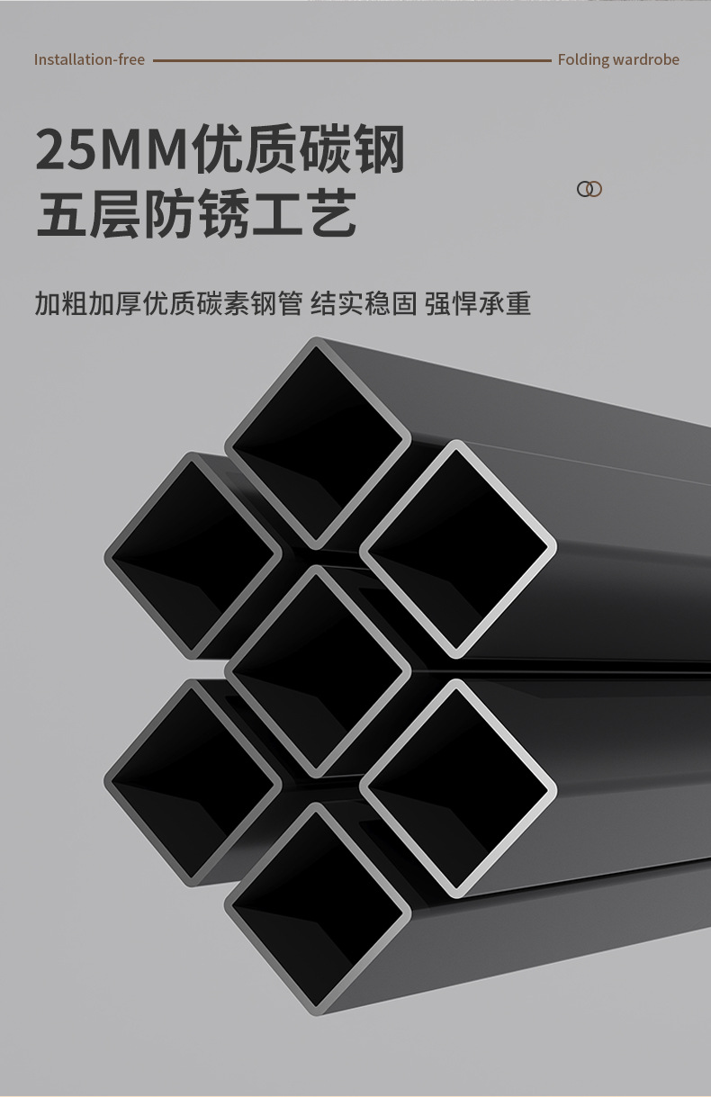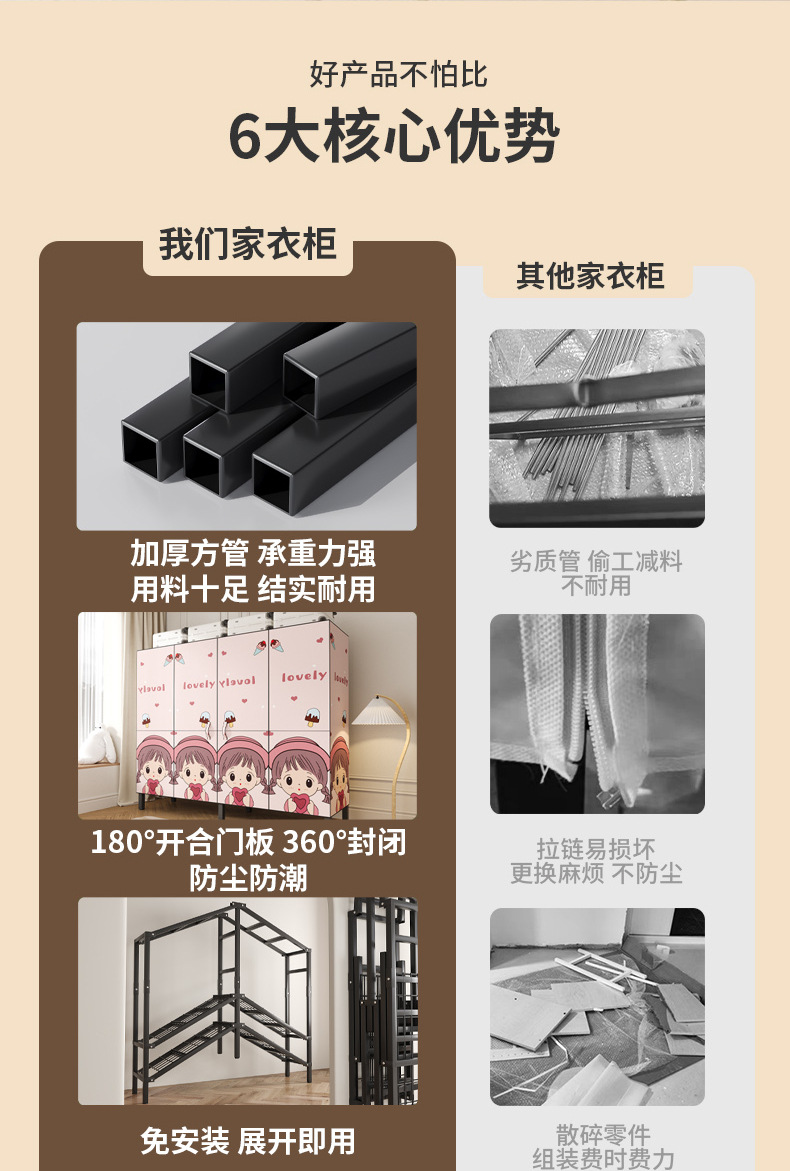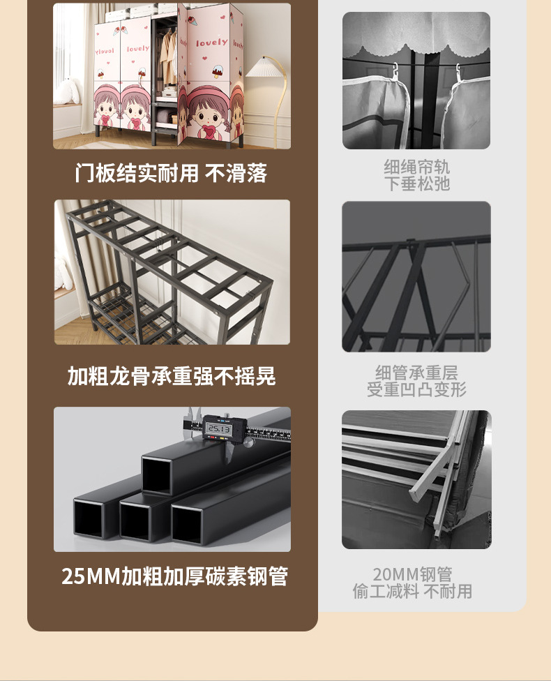 설치 무료 옷장 홈 침실 간단한 조립 천 옷장 접이식 전체 강철 프레임 임대 룸 옷장 견고하고 내구성