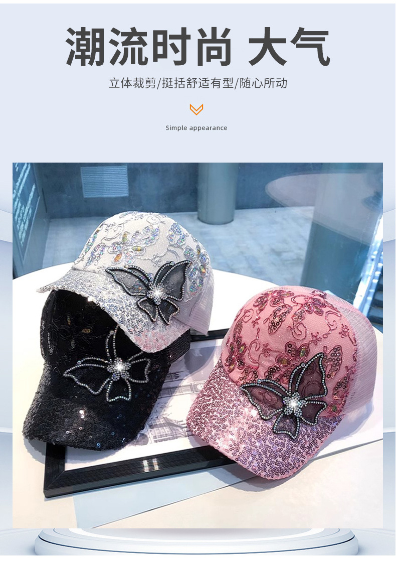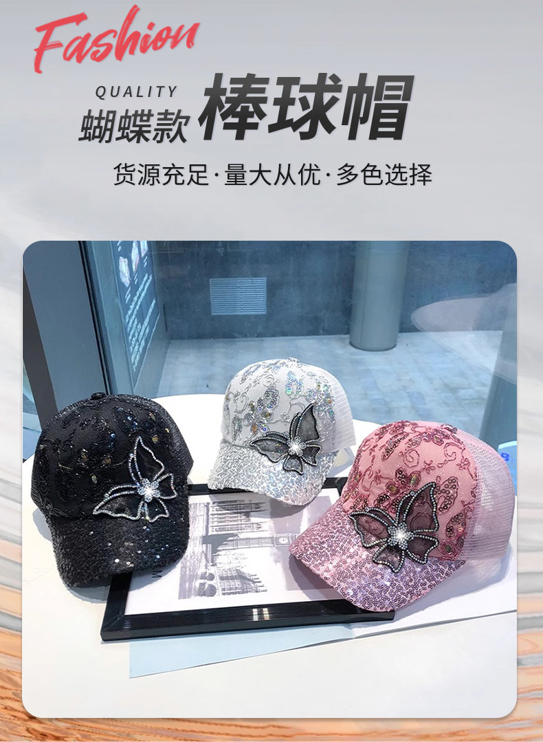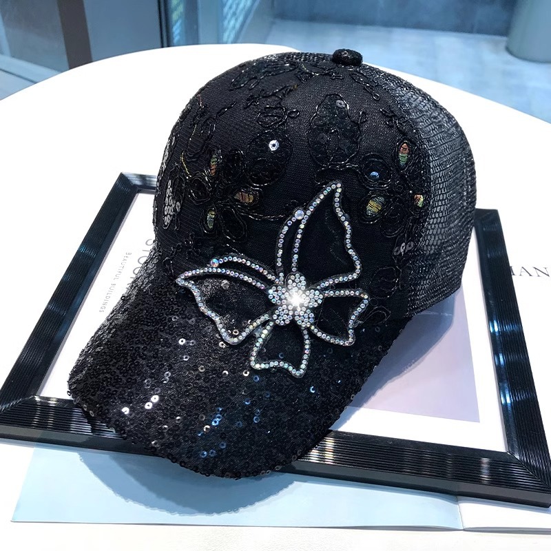 여름 그물 모자 여성의 다채로운 모조 다이아몬드 M 표준 피크 캡 일본 조커 거리 개성 조수 브랜드 제조 업체 도매스토어 가기