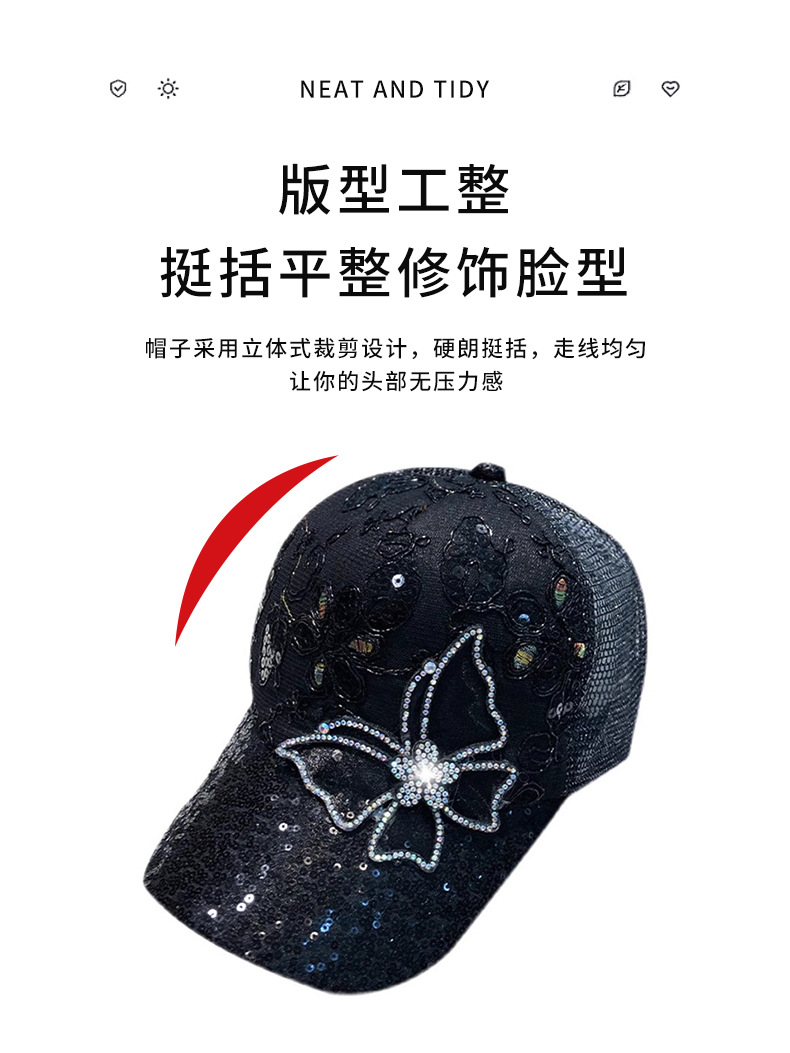 여름 그물 모자 여성의 다채로운 모조 다이아몬드 M 표준 피크 캡 일본 조커 거리 개성 조수 브랜드 제조 업체 도매