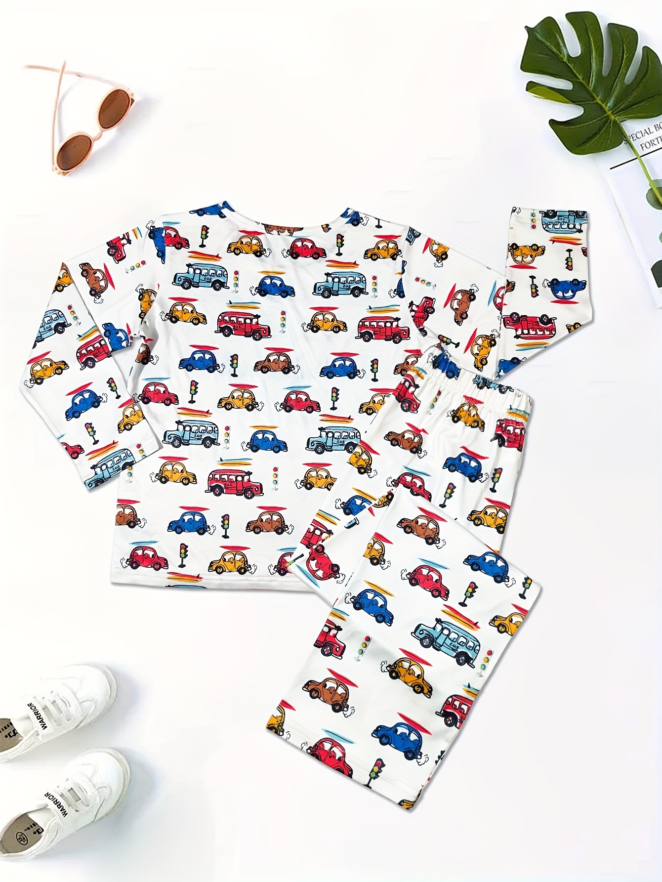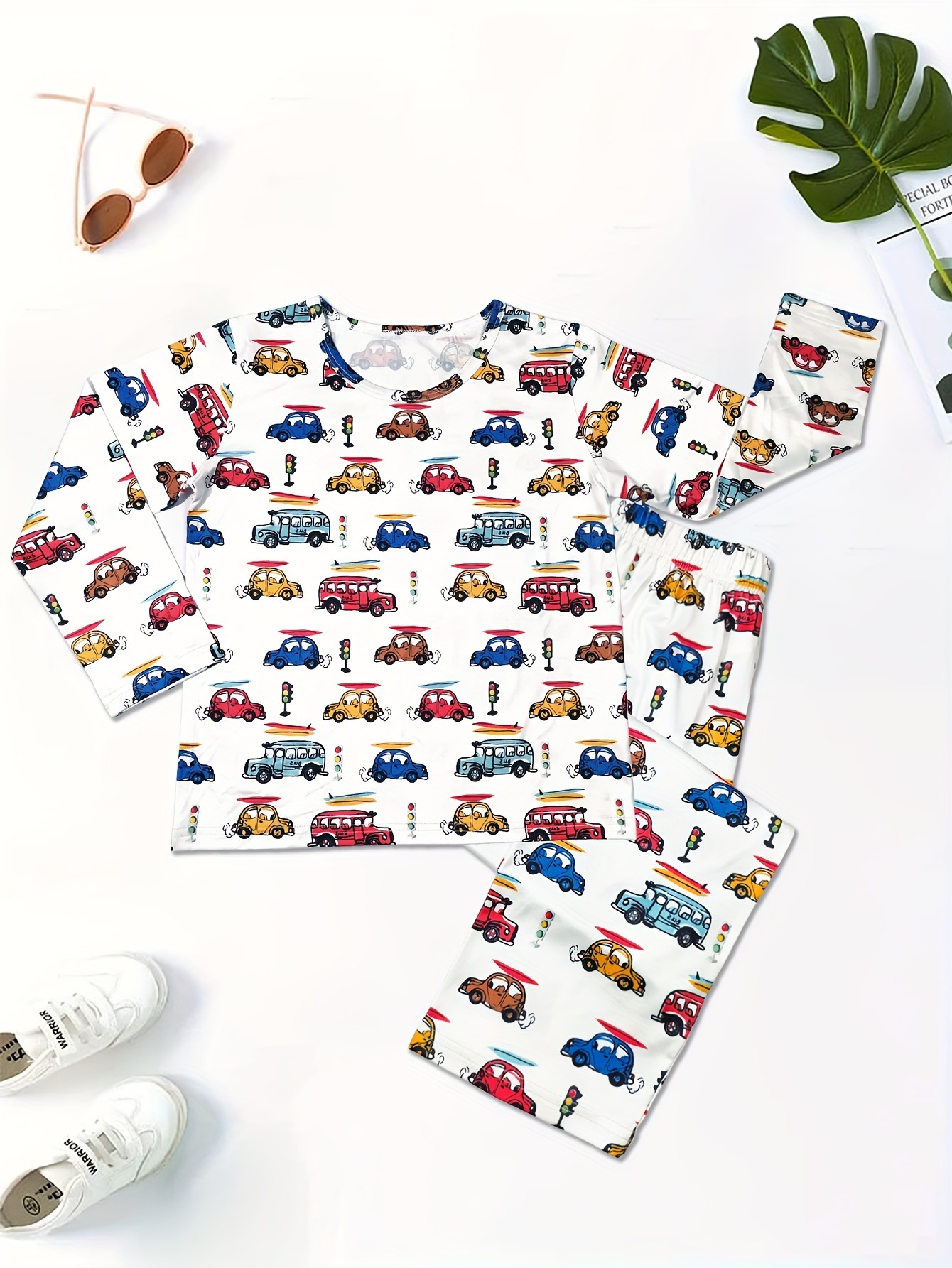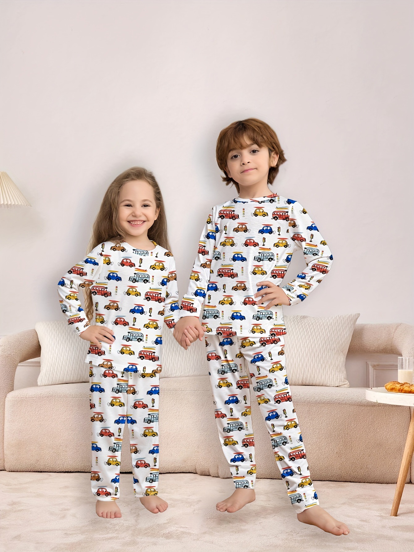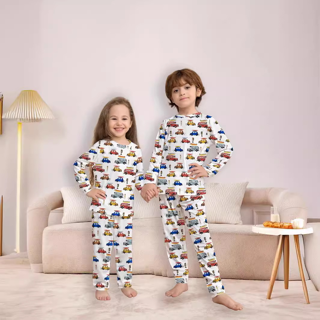 어린이 가을 옷과 바지 클래스 홈 의류 어린이 의류 도매 잠옷 소년 소녀 자동차 인쇄 속옷 세트스토어 가기