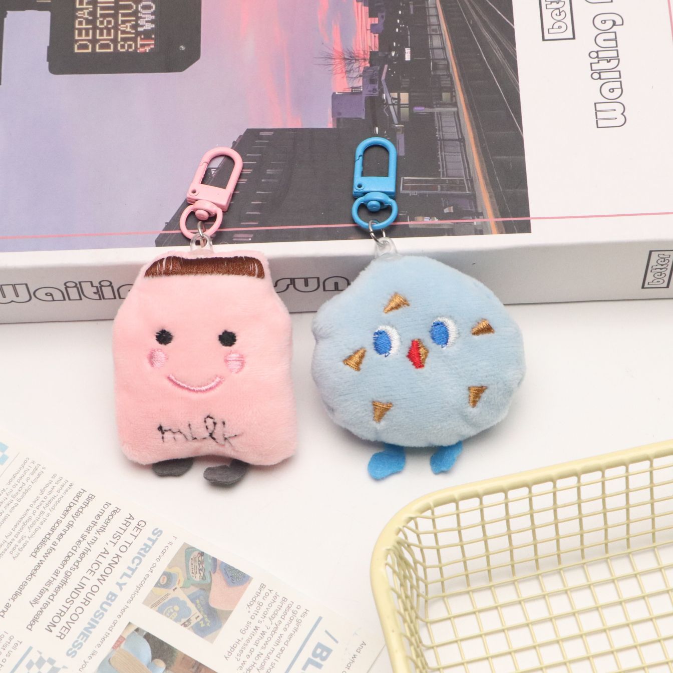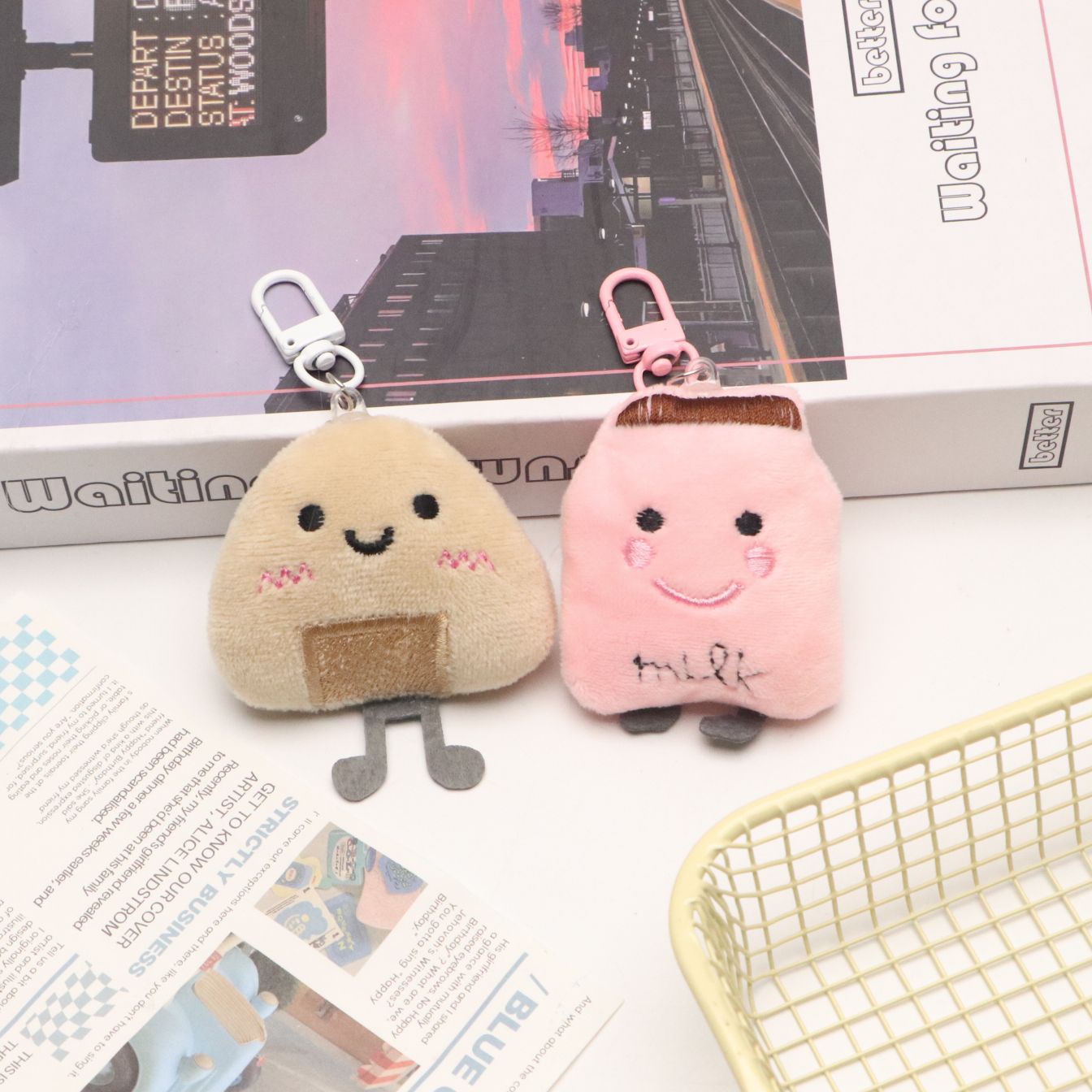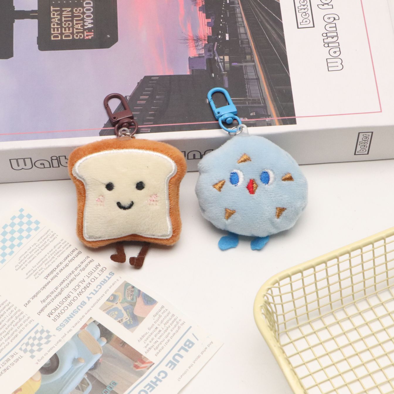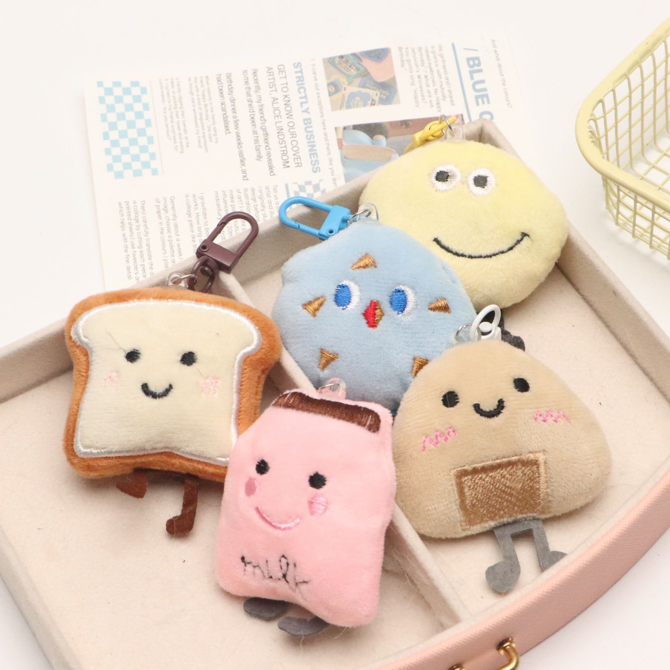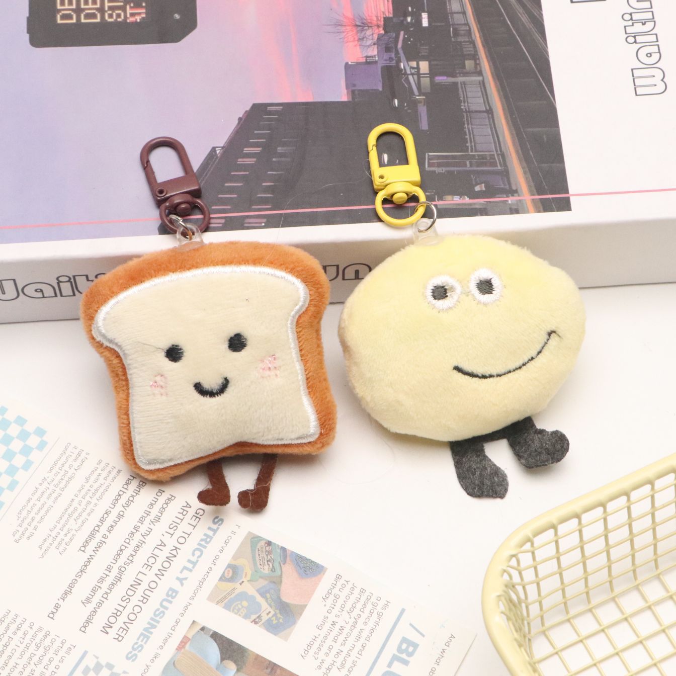 토스트빵 모양 열쇠고리 봉제 만화 캐릭터 키링 소녀 감성 가방걸이 학생 친구 가방 장식
