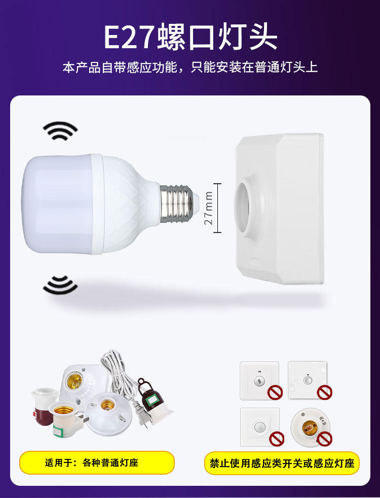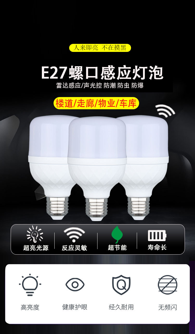 Led 전구 복도 레이더 유도 소리와 빛 제어 인체 유도 전구 나사 지능형 유도 램프스토어 가기