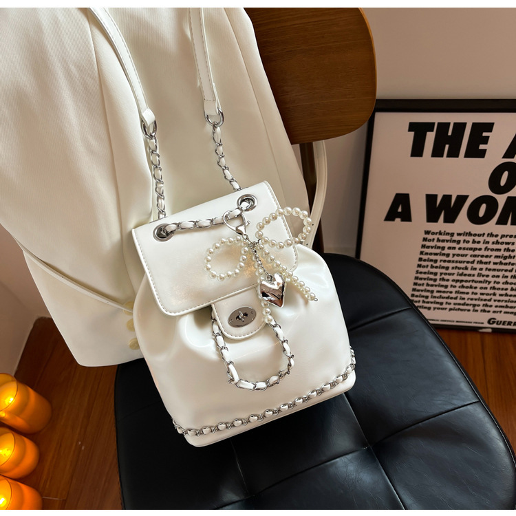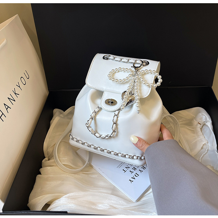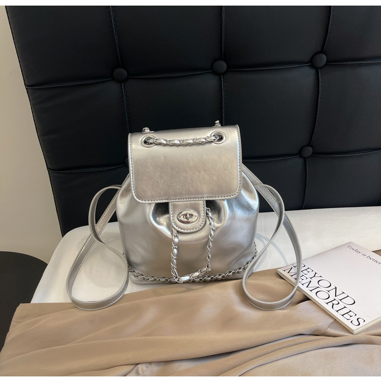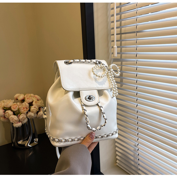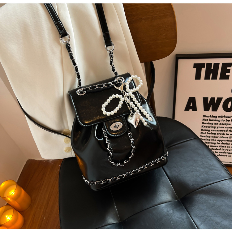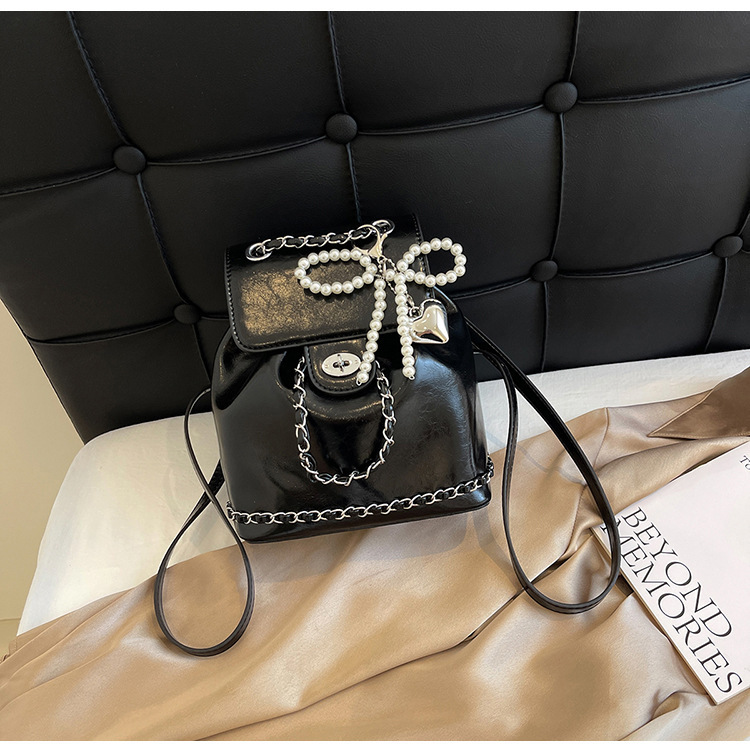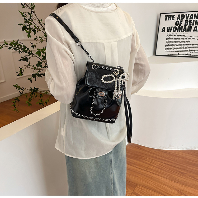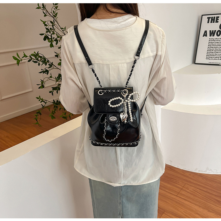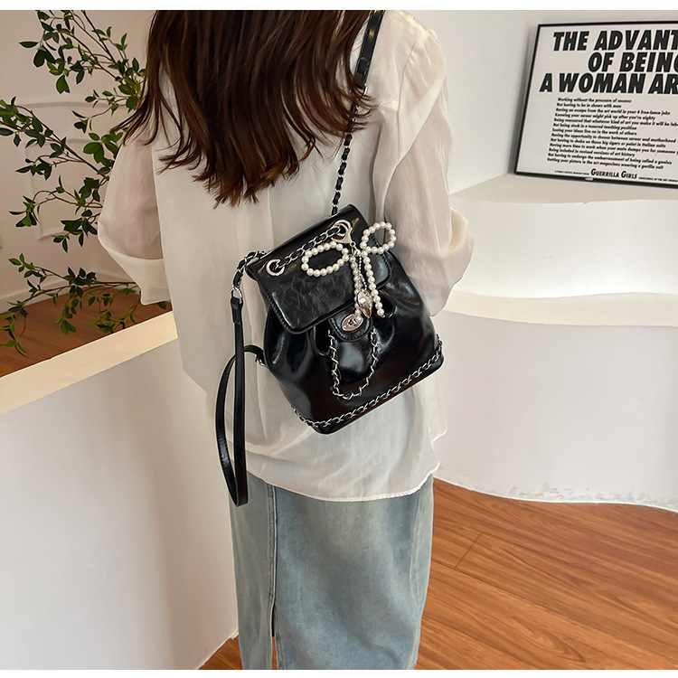 한국 틈새 24 년 여름 미니 샤넬 스타일 체인 배낭 여성 학생 오일 왁스 가죽 어깨 크로스 백