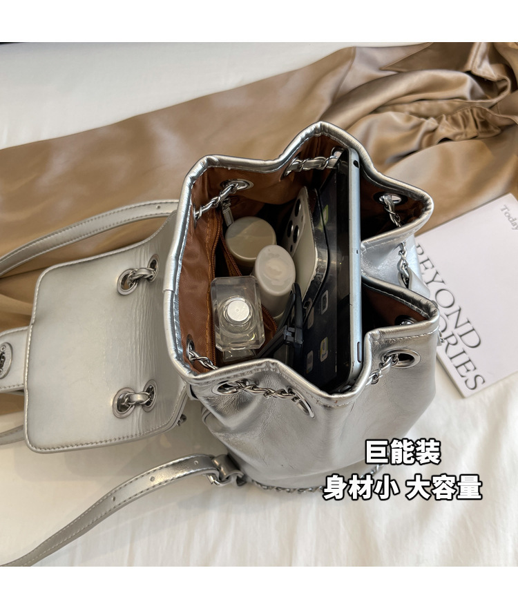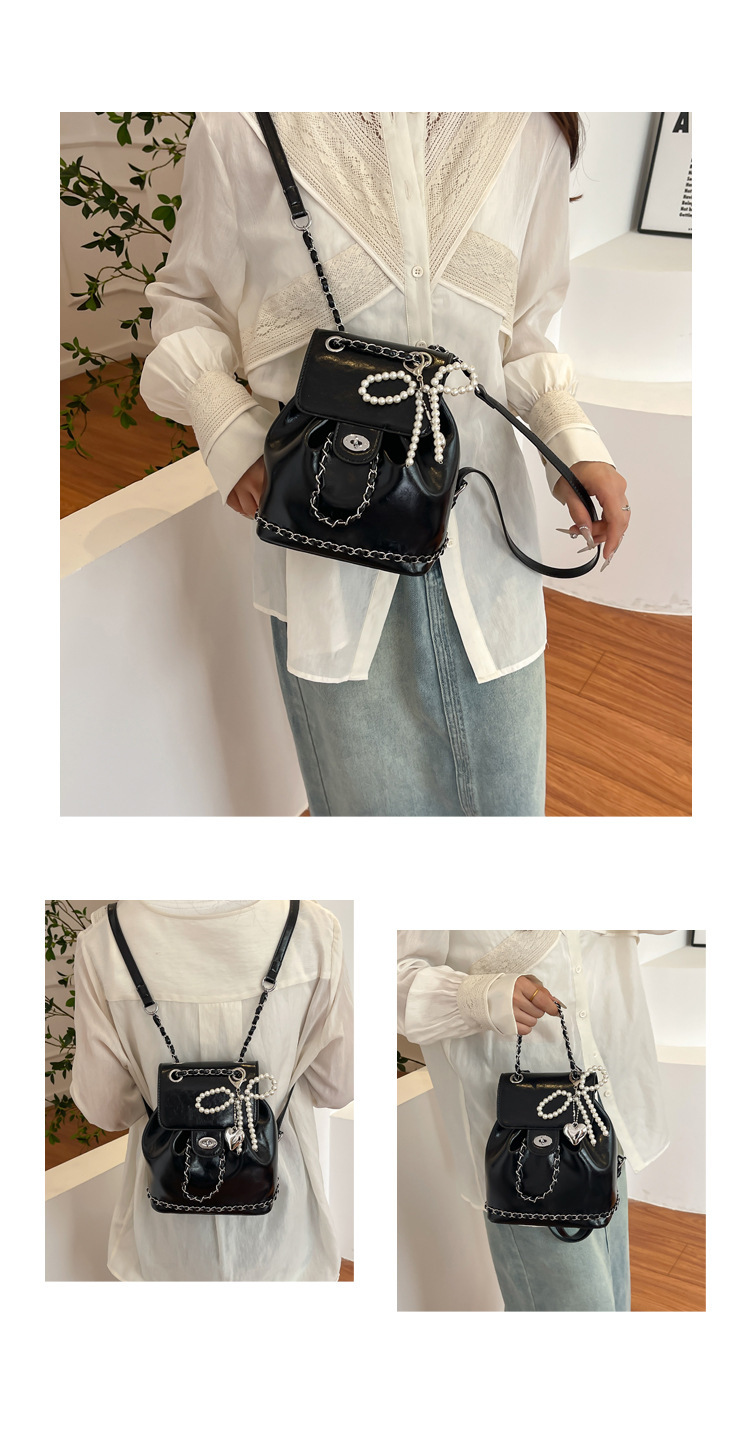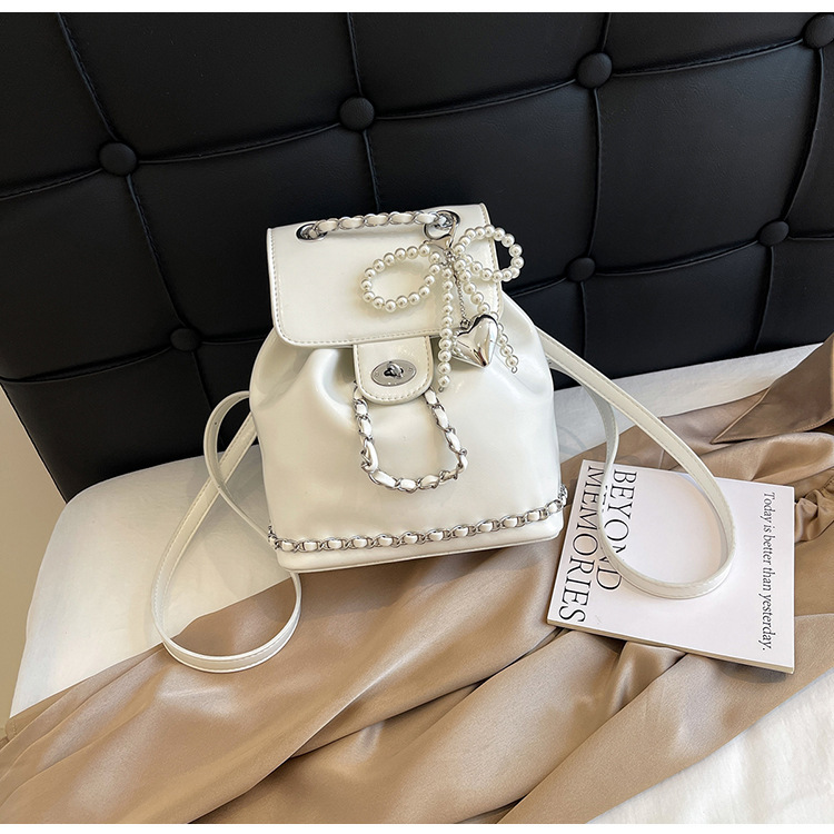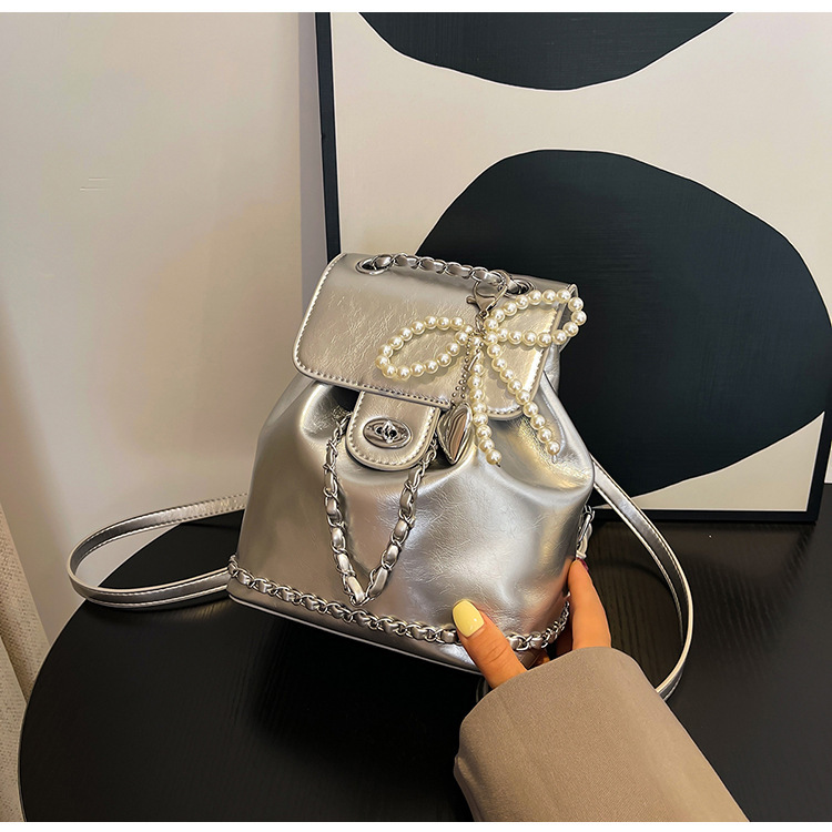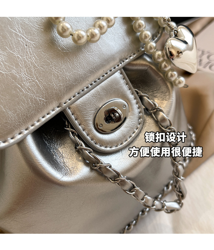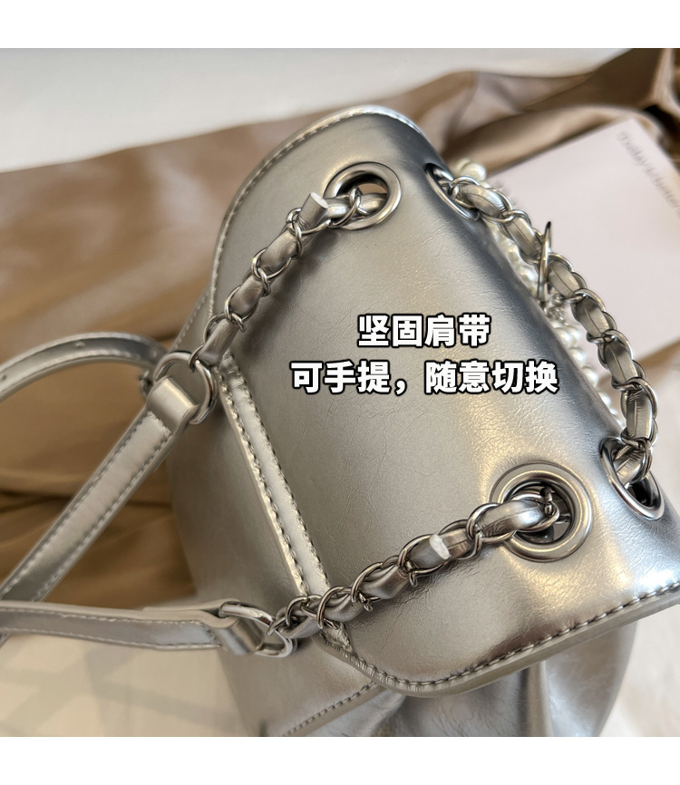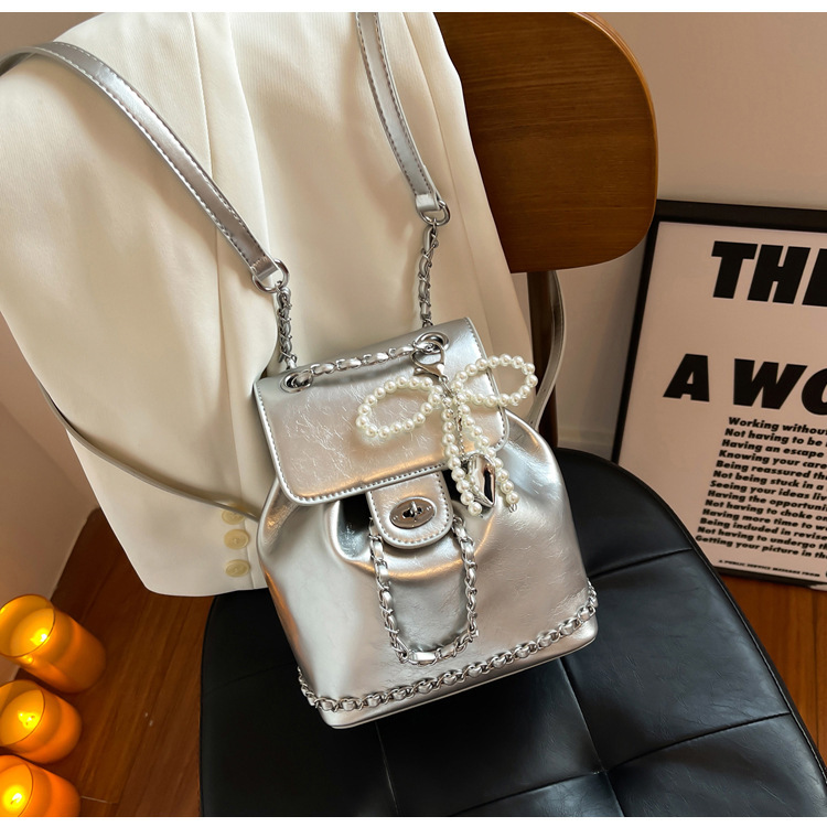 한국 틈새 24 년 여름 미니 샤넬 스타일 체인 배낭 여성 학생 오일 왁스 가죽 어깨 크로스 백