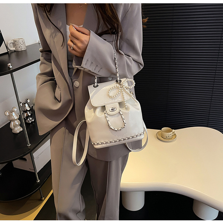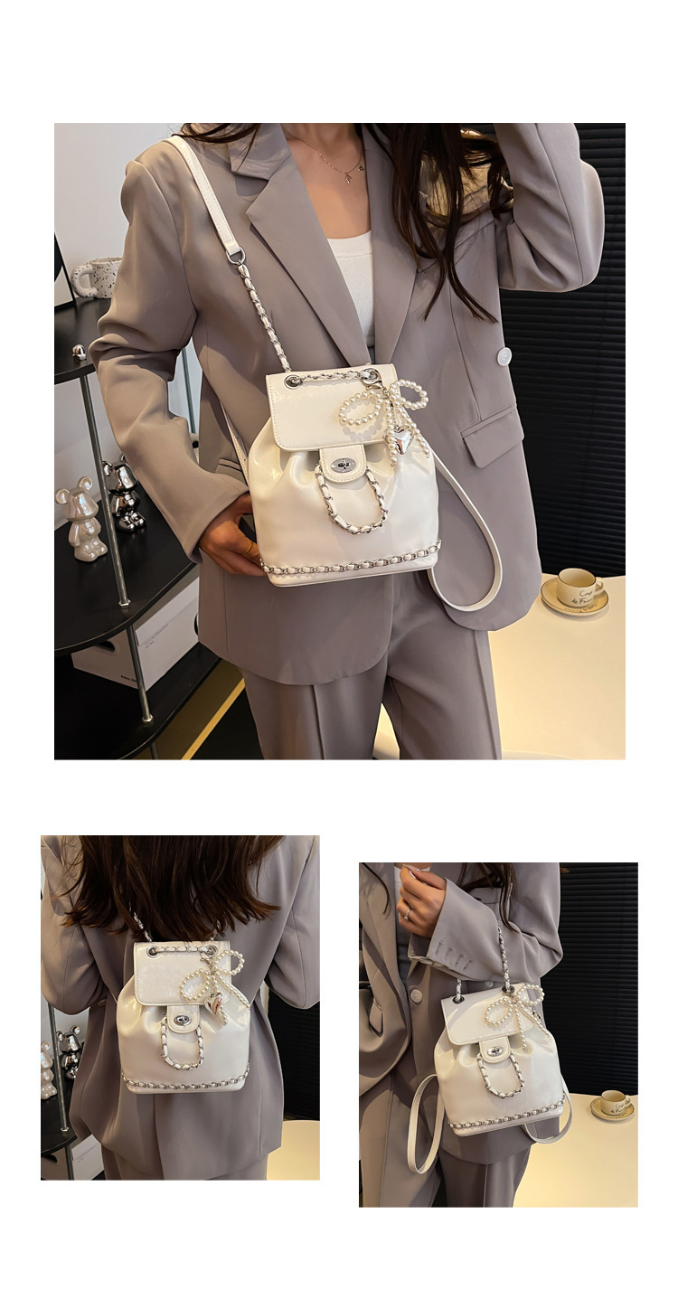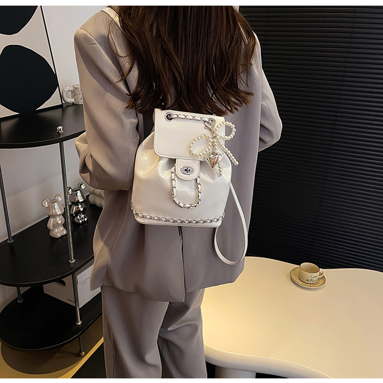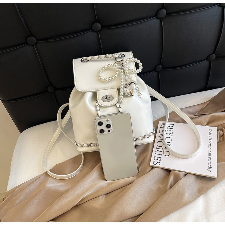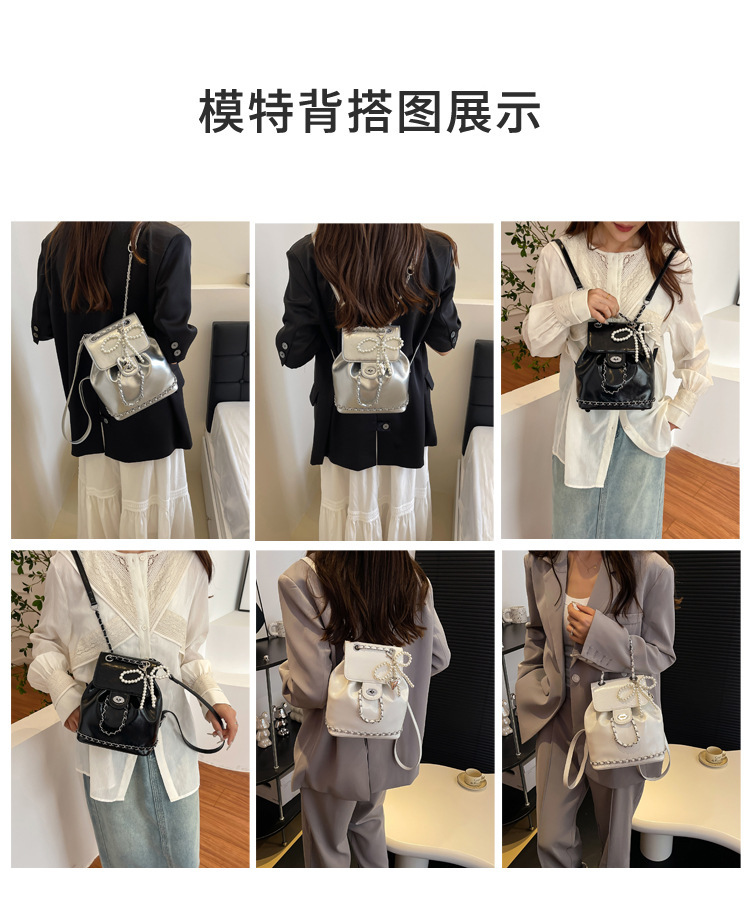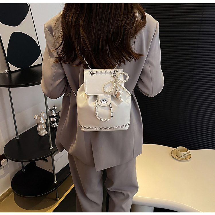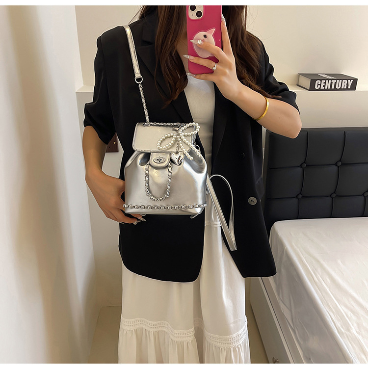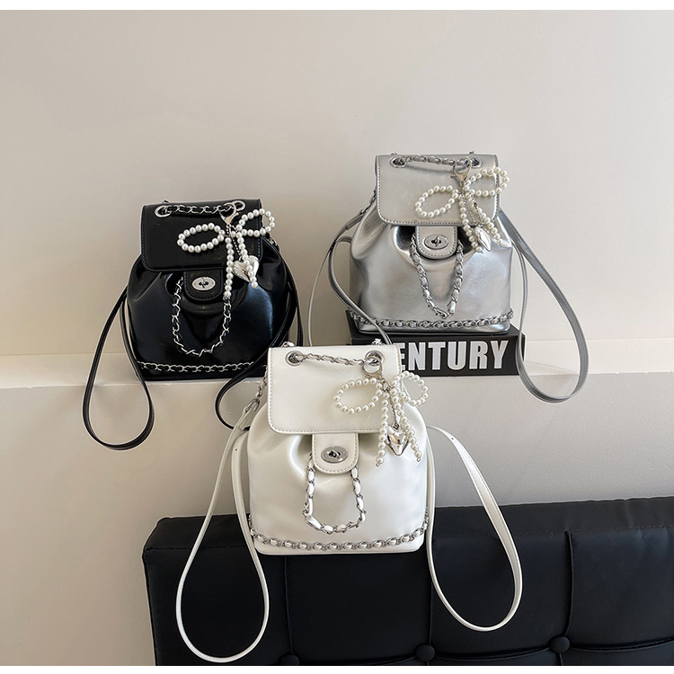 한국 틈새 24 년 여름 미니 샤넬 스타일 체인 배낭 여성 학생 오일 왁스 가죽 어깨 크로스 백