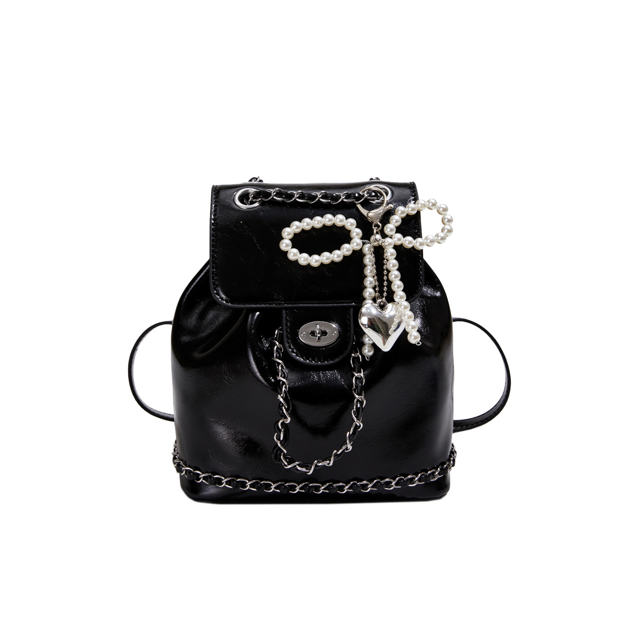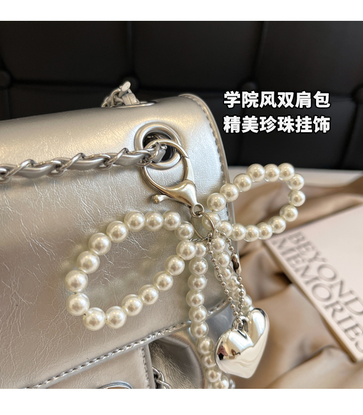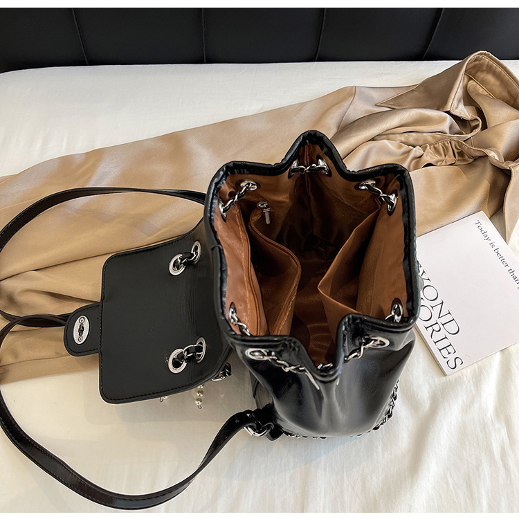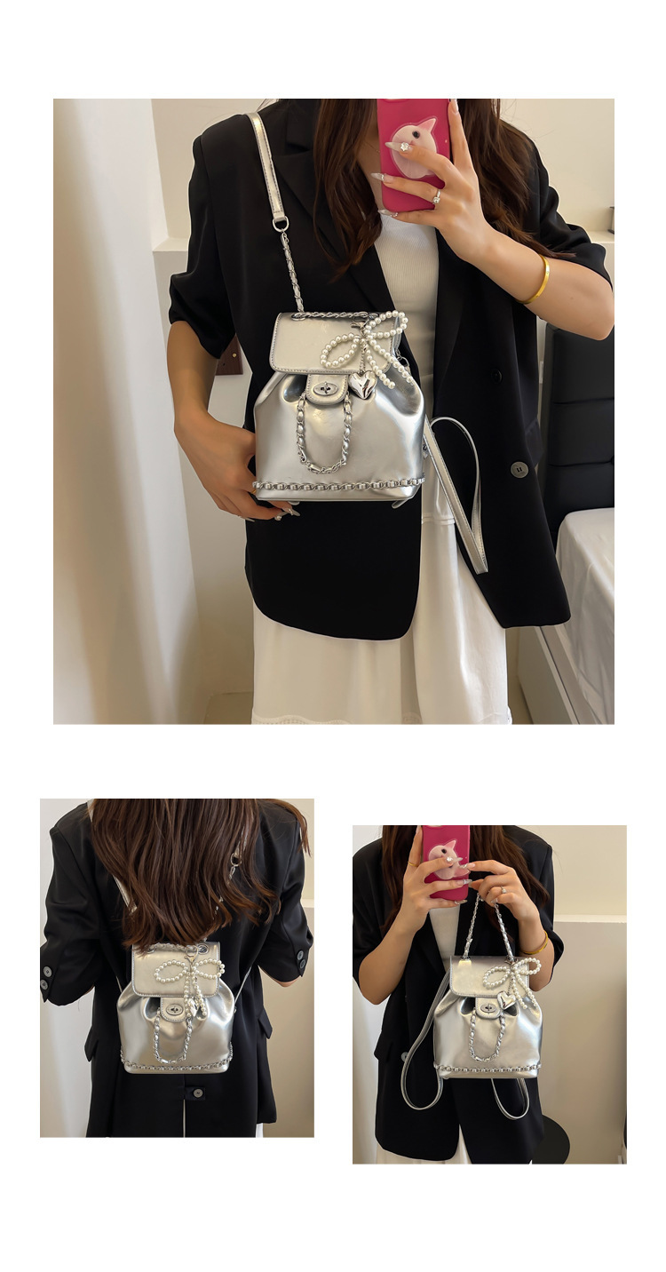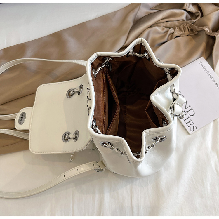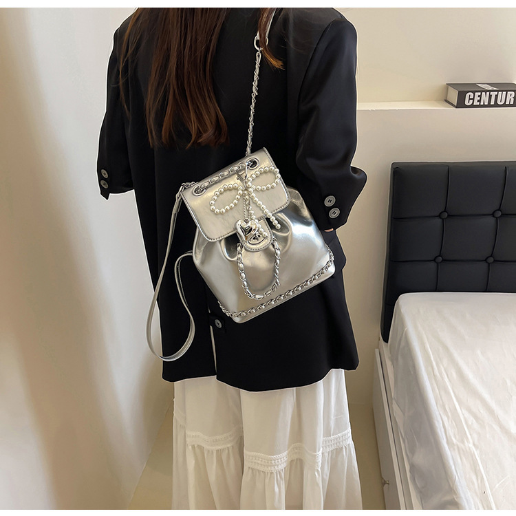 한국 틈새 24 년 여름 미니 샤넬 스타일 체인 배낭 여성 학생 오일 왁스 가죽 어깨 크로스 백