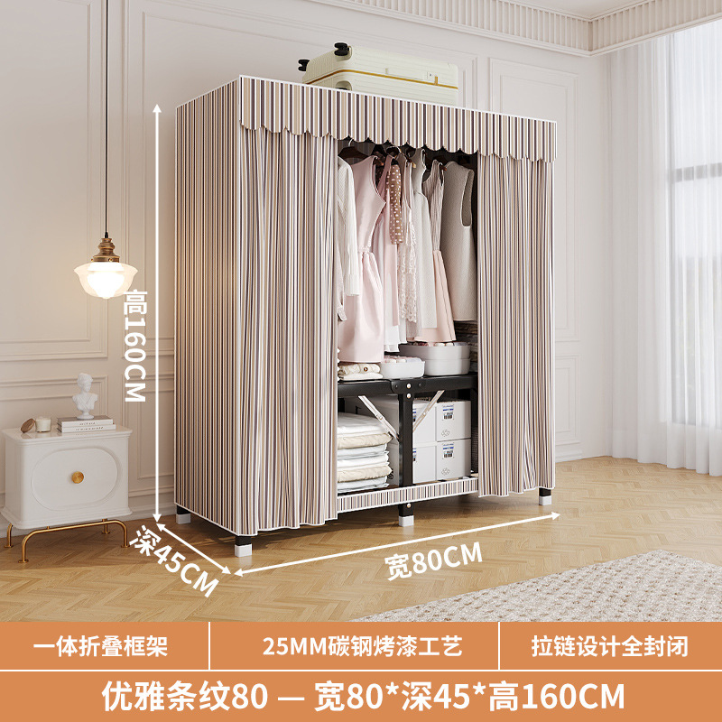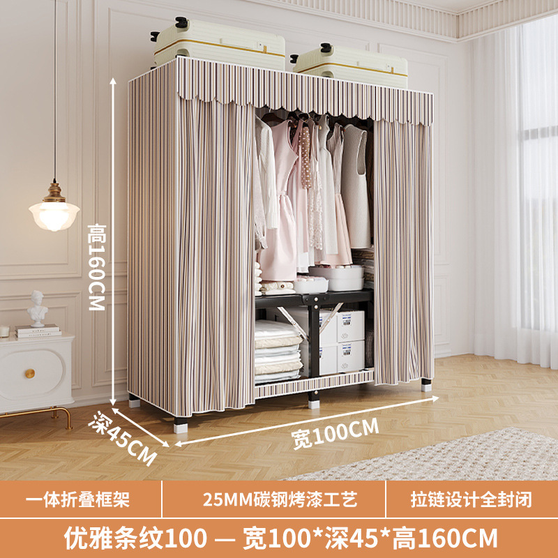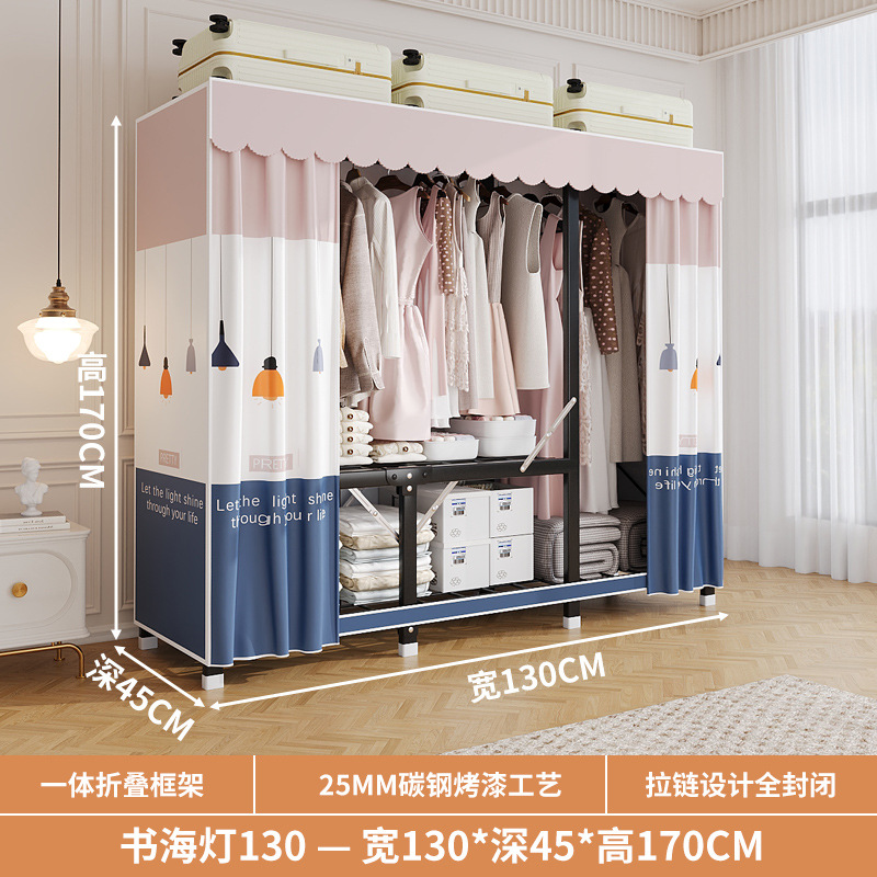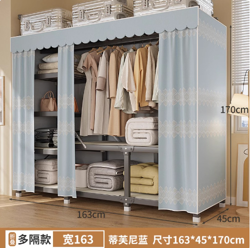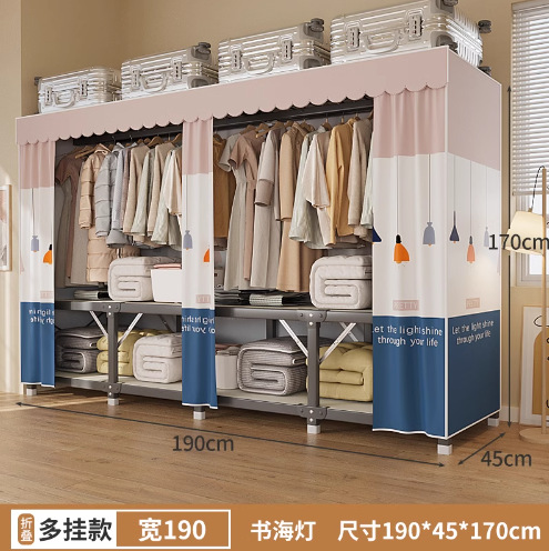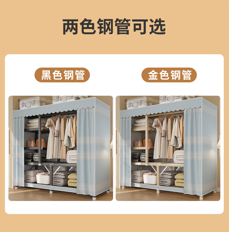 신형 2024 천 옷장 임대 방 간단한 조립 두꺼운 굵은 풀 스틸 프레임 강력하고 튼튼한 옷장