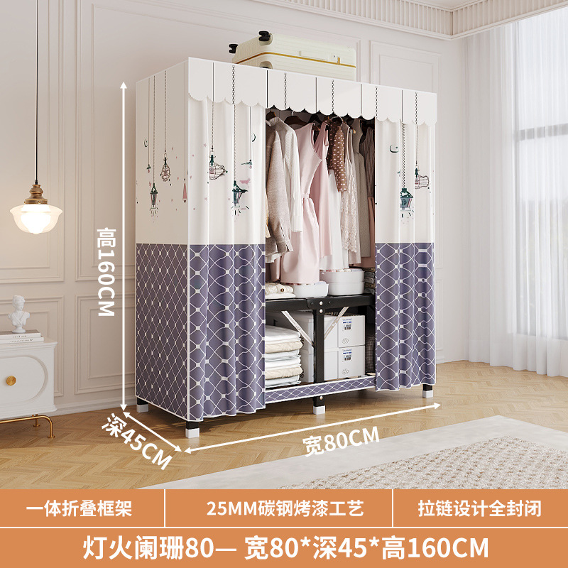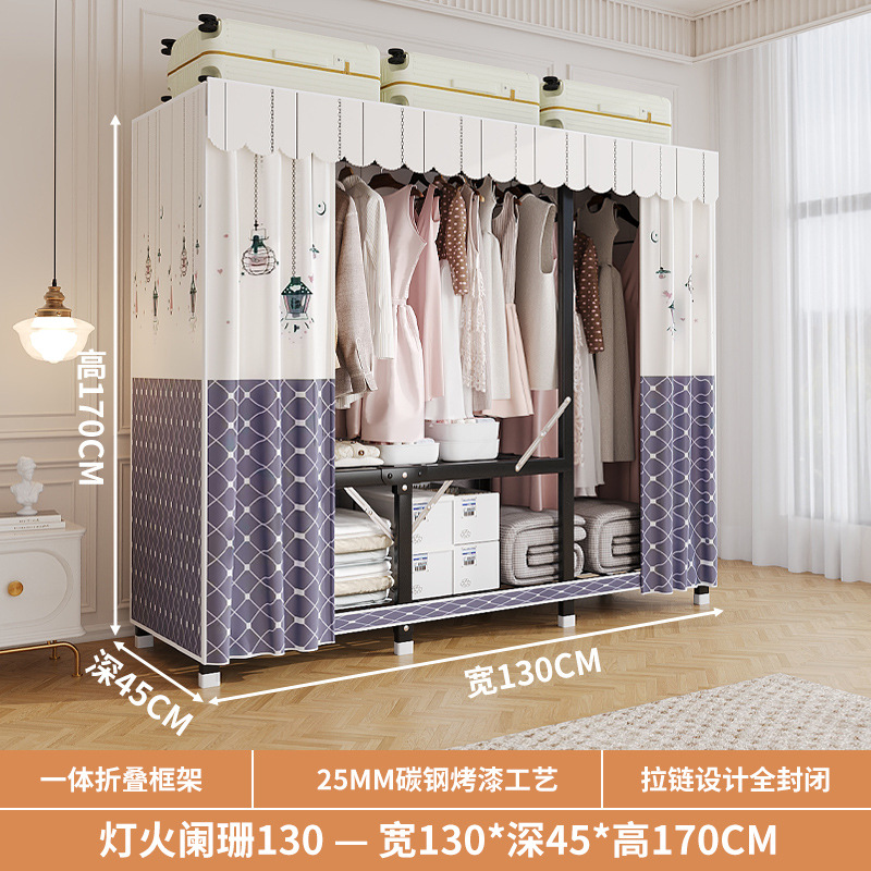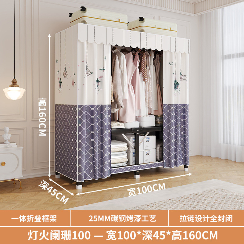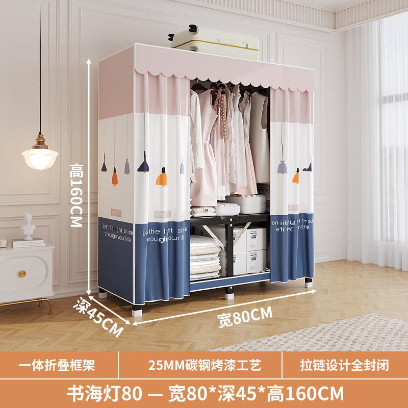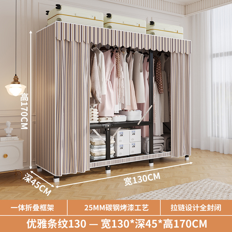 신형 2024 천 옷장 임대 방 간단한 조립 두꺼운 굵은 풀 스틸 프레임 강력하고 튼튼한 옷장