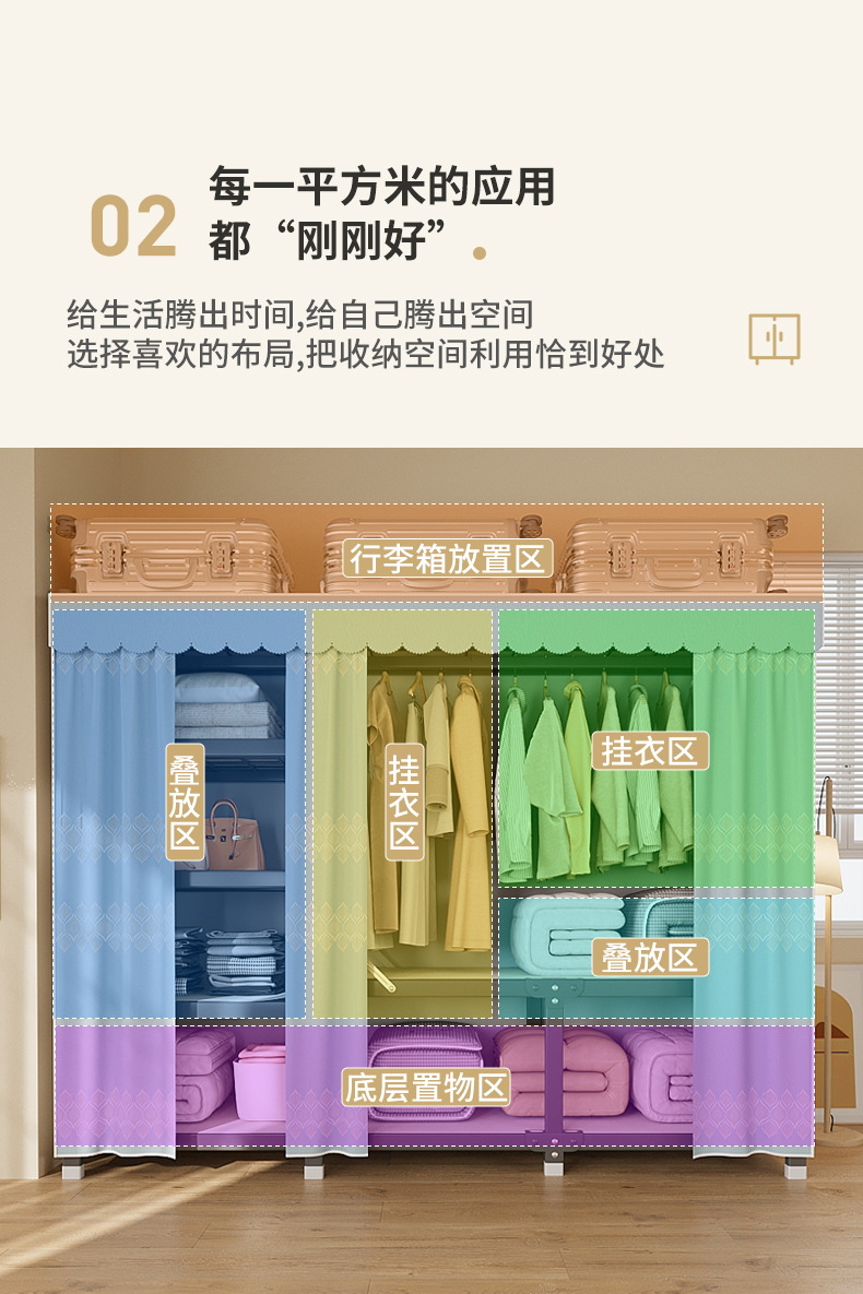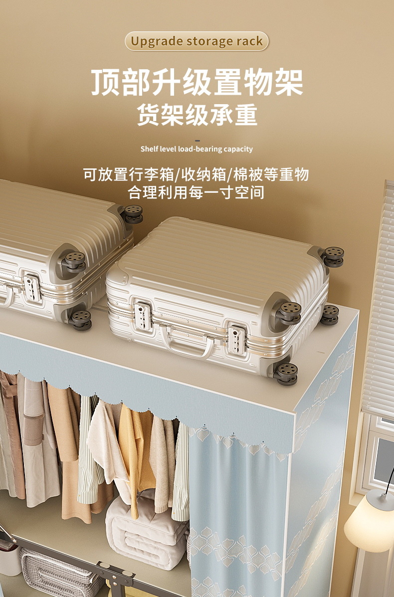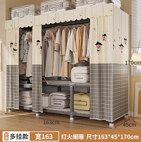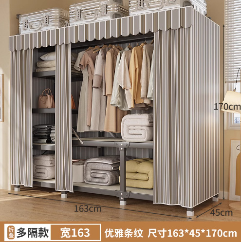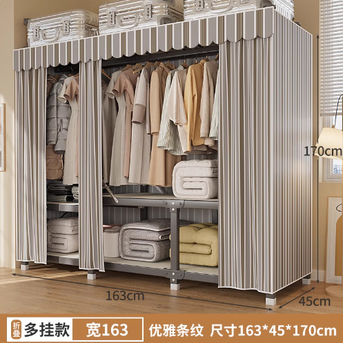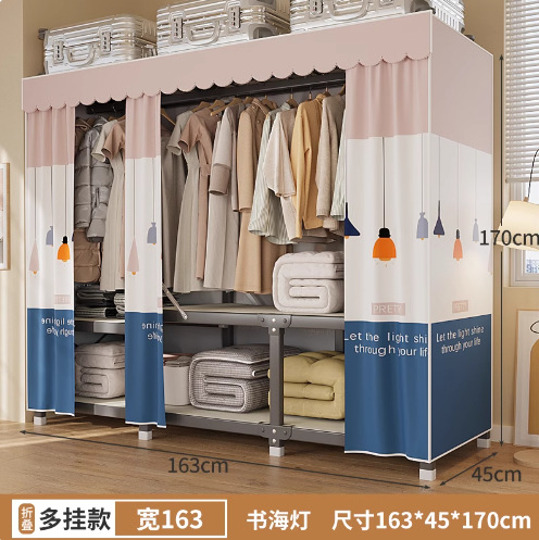 신형 2024 천 옷장 임대 방 간단한 조립 두꺼운 굵은 풀 스틸 프레임 강력하고 튼튼한 옷장스토어 가기