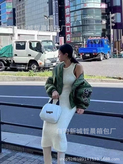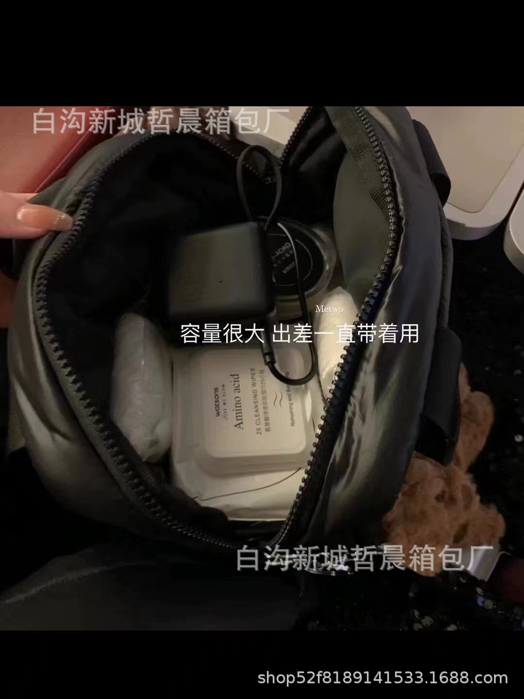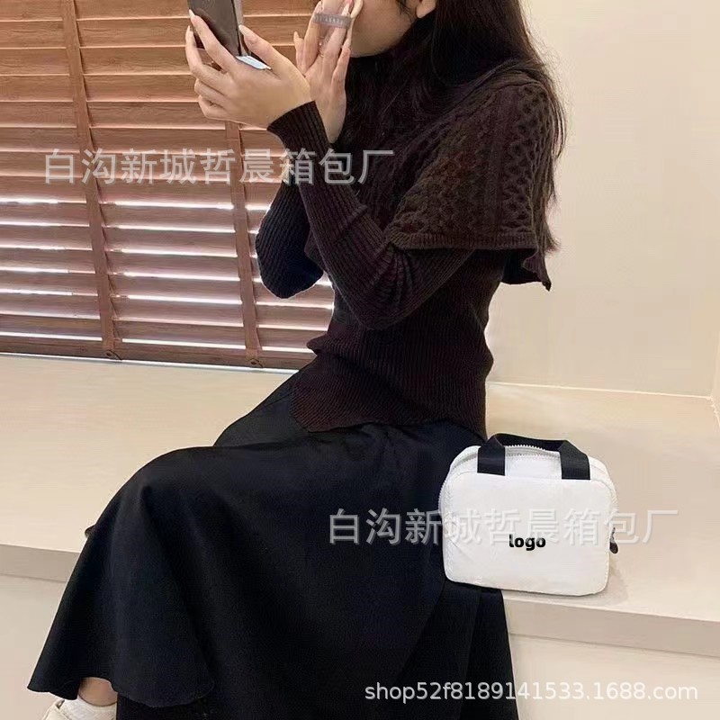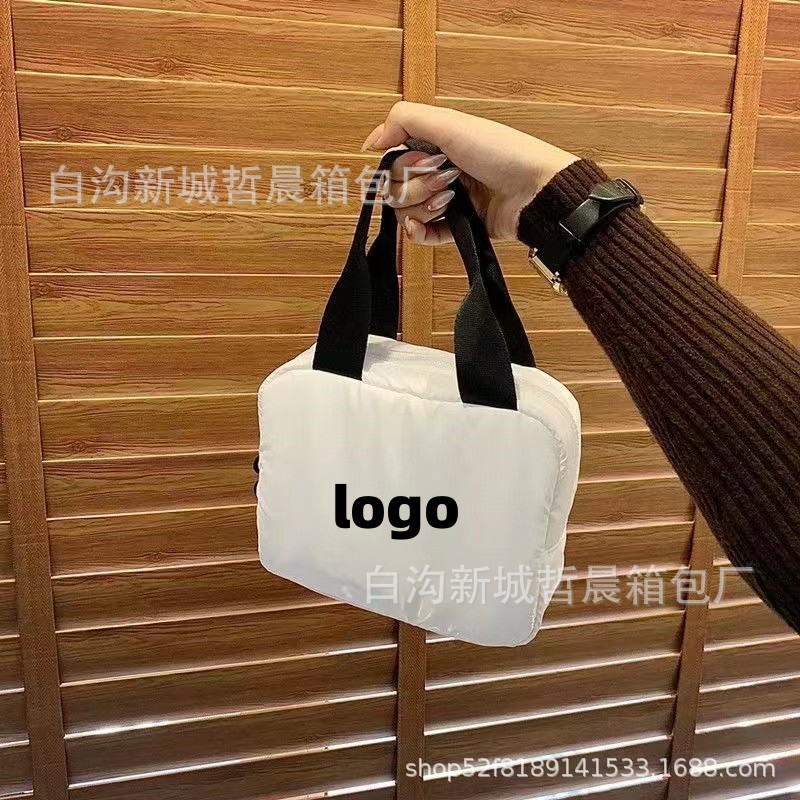2023 가을과 겨울 새로운 진주 화이트 클라우드 휴대용 화장품 가방 샤넬 다운 코튼 핸드백 유럽과 미국 메이크업