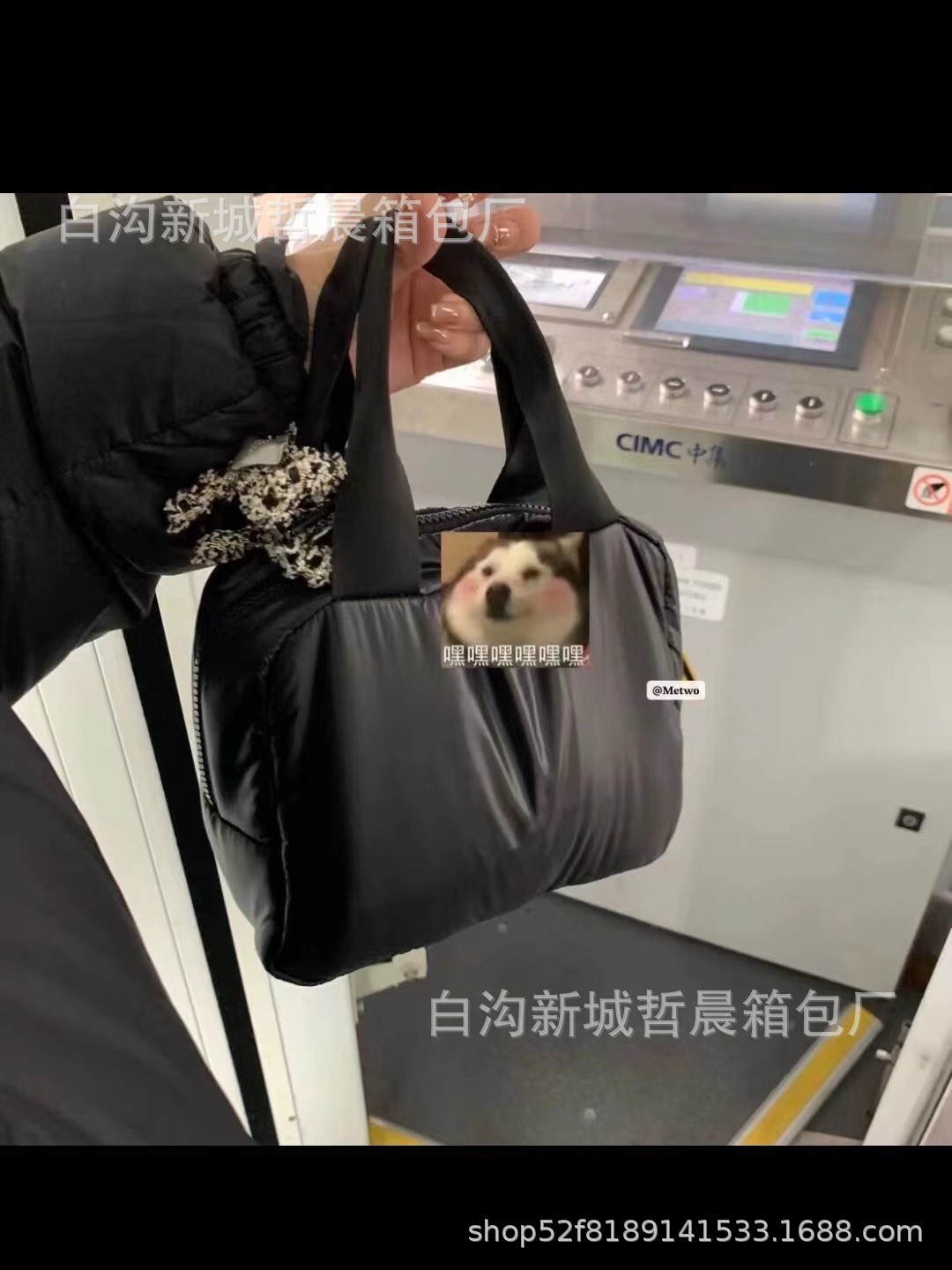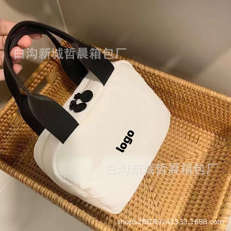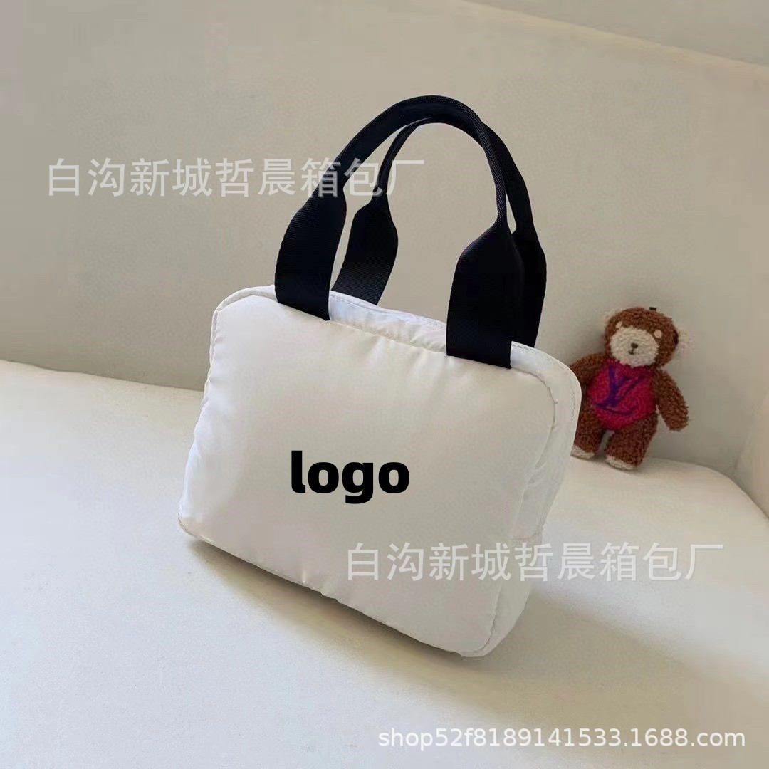 2023 가을과 겨울 새로운 진주 화이트 클라우드 휴대용 화장품 가방 샤넬 다운 코튼 핸드백 유럽과 미국 메이크업스토어 가기