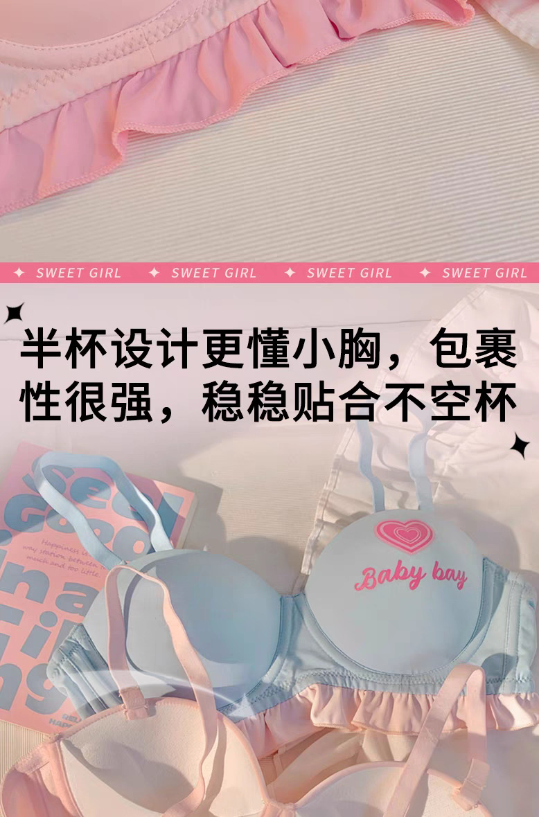일본 스타일 달콤한 작은 가슴 모임 하프 컵 속옷 여성의 순수한 섹시한 소녀 학생 브래지어 세트 여름 새로운 스타일스토어 가기