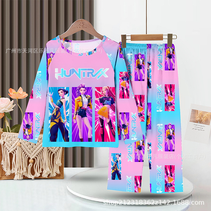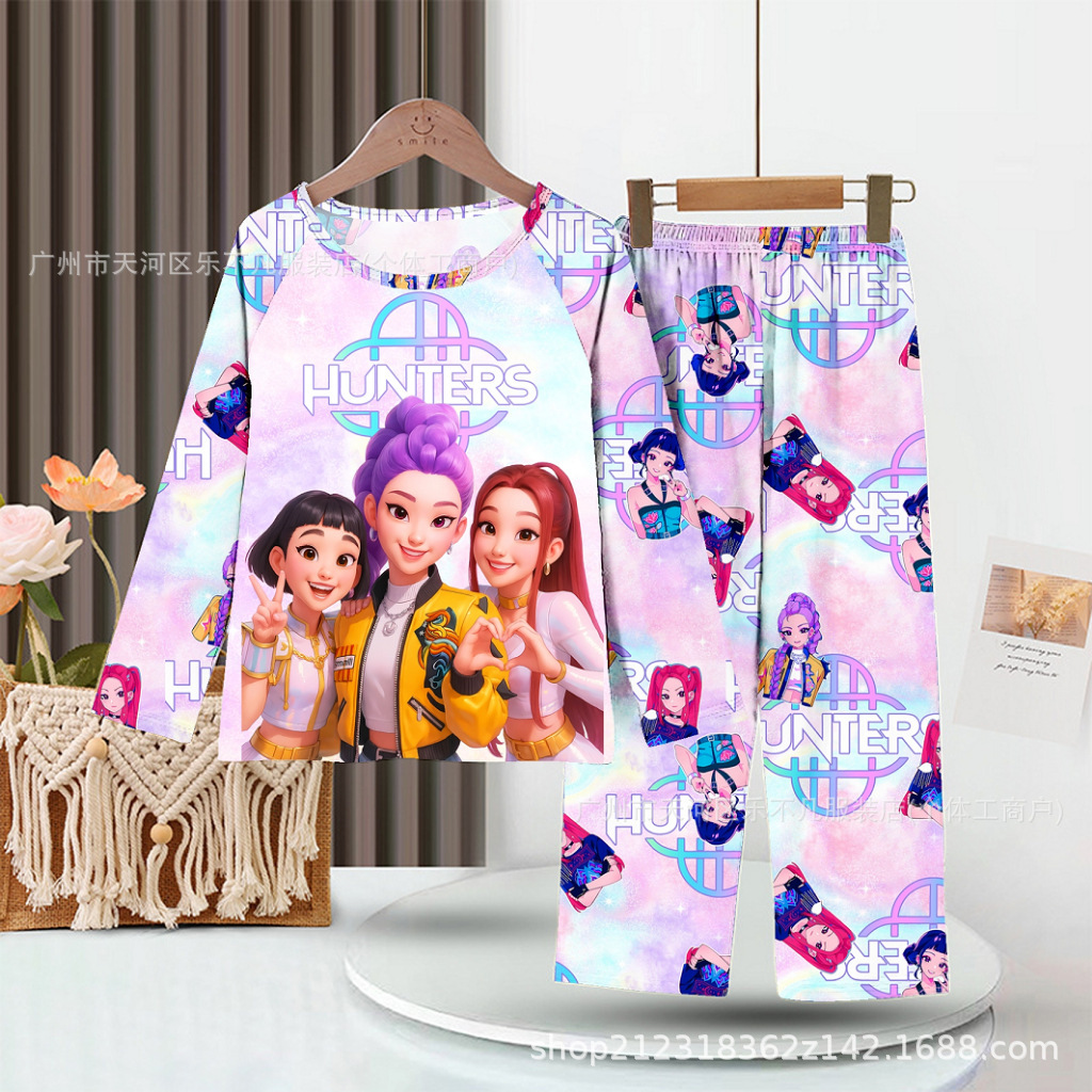 어린이 잠옷 소녀 중대형 아동 남아 긴팔 긴바지 소녀 만화 사냥꾼 소녀 그룹 동남아시아 홈웨어 세트스토어 가기