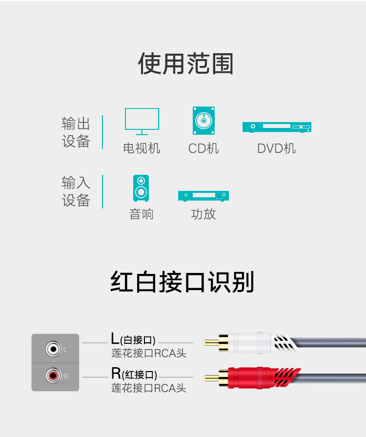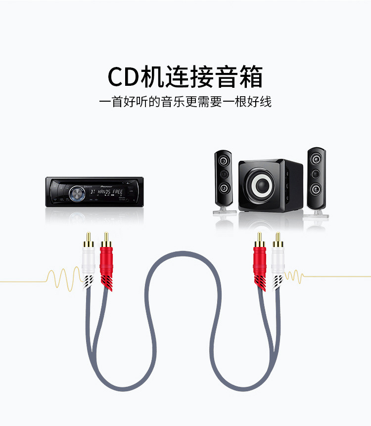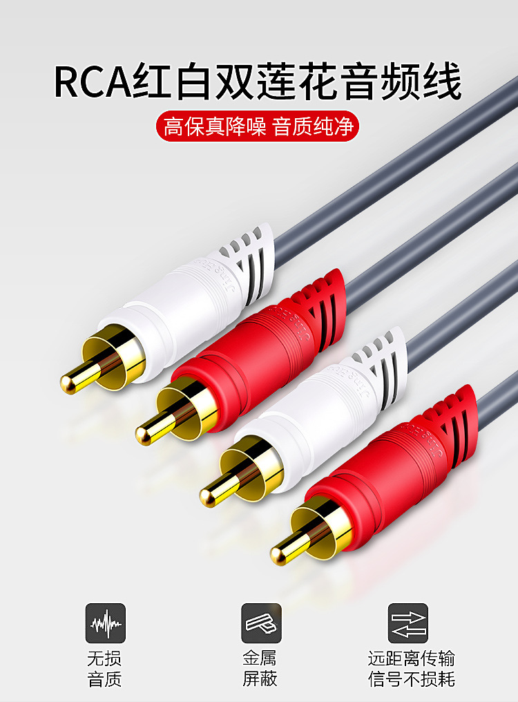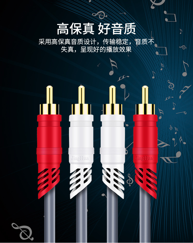 Jinghua 2 대 2 오디오 케이블 이중 연꽃 빨간색과 흰색 플러그 왼쪽 및 오른쪽 채널 2rca TV 오디오 앰프 케이블스토어 가기