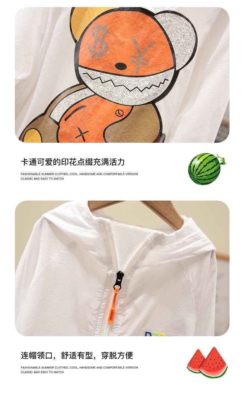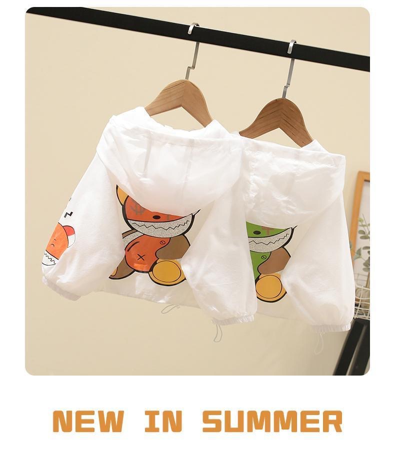 남학생과 여학생의 선 스크린 의류 2024 새 여름 어린이 잘 생긴 후드 탑 어린이 아기 만화 얇은 코트