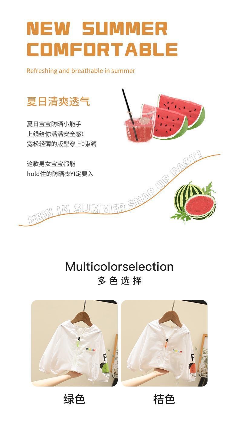 남학생과 여학생의 선 스크린 의류 2024 새 여름 어린이 잘 생긴 후드 탑 어린이 아기 만화 얇은 코트스토어 가기