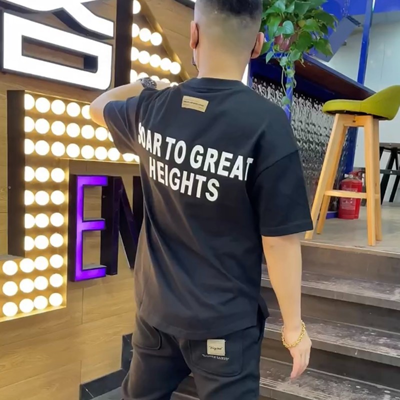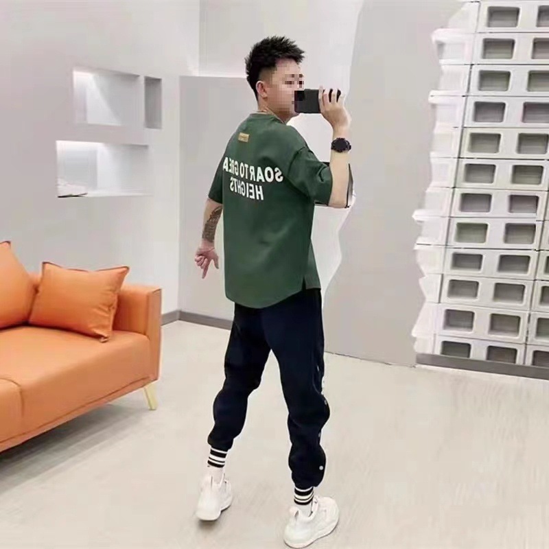 Jiaren 2024 여름 패션 브랜드 라운드 넥 반팔 티셔츠 남성면 반소매 청소년 패션 레터 인쇄 탑스토어 가기