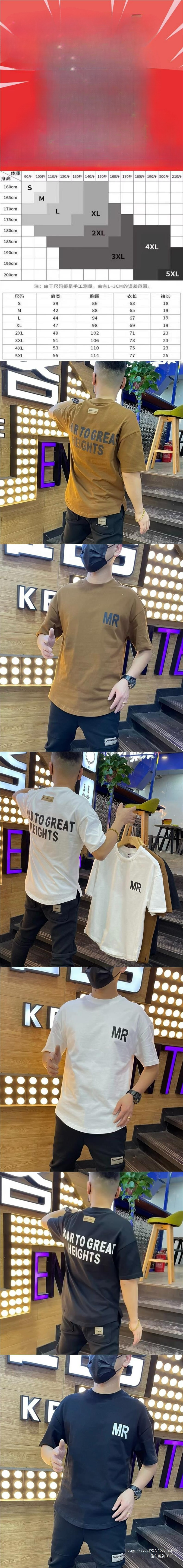 Jiaren 2024 여름 패션 브랜드 라운드 넥 반팔 티셔츠 남성면 반소매 청소년 패션 레터 인쇄 탑