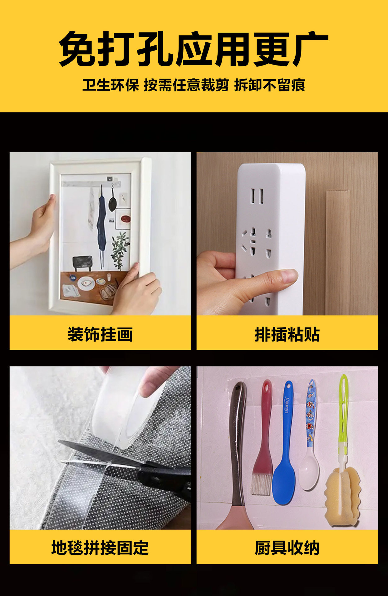 공장 재고 나노 양면 접착 강한 높은 스틱 후크 이동식 투명 아크릴 추적 방수 작은 튜브 테이프스토어 가기