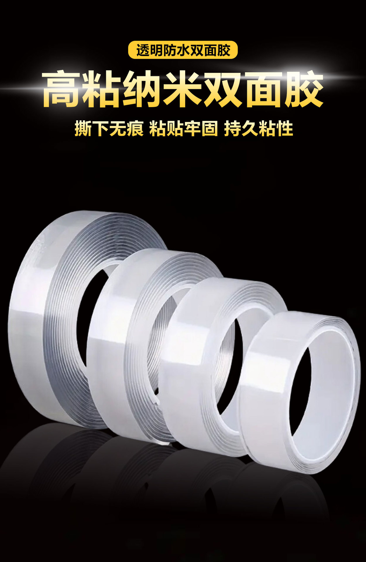 공장 재고 나노 양면 접착 강한 높은 스틱 후크 이동식 투명 아크릴 추적 방수 작은 튜브 테이프
