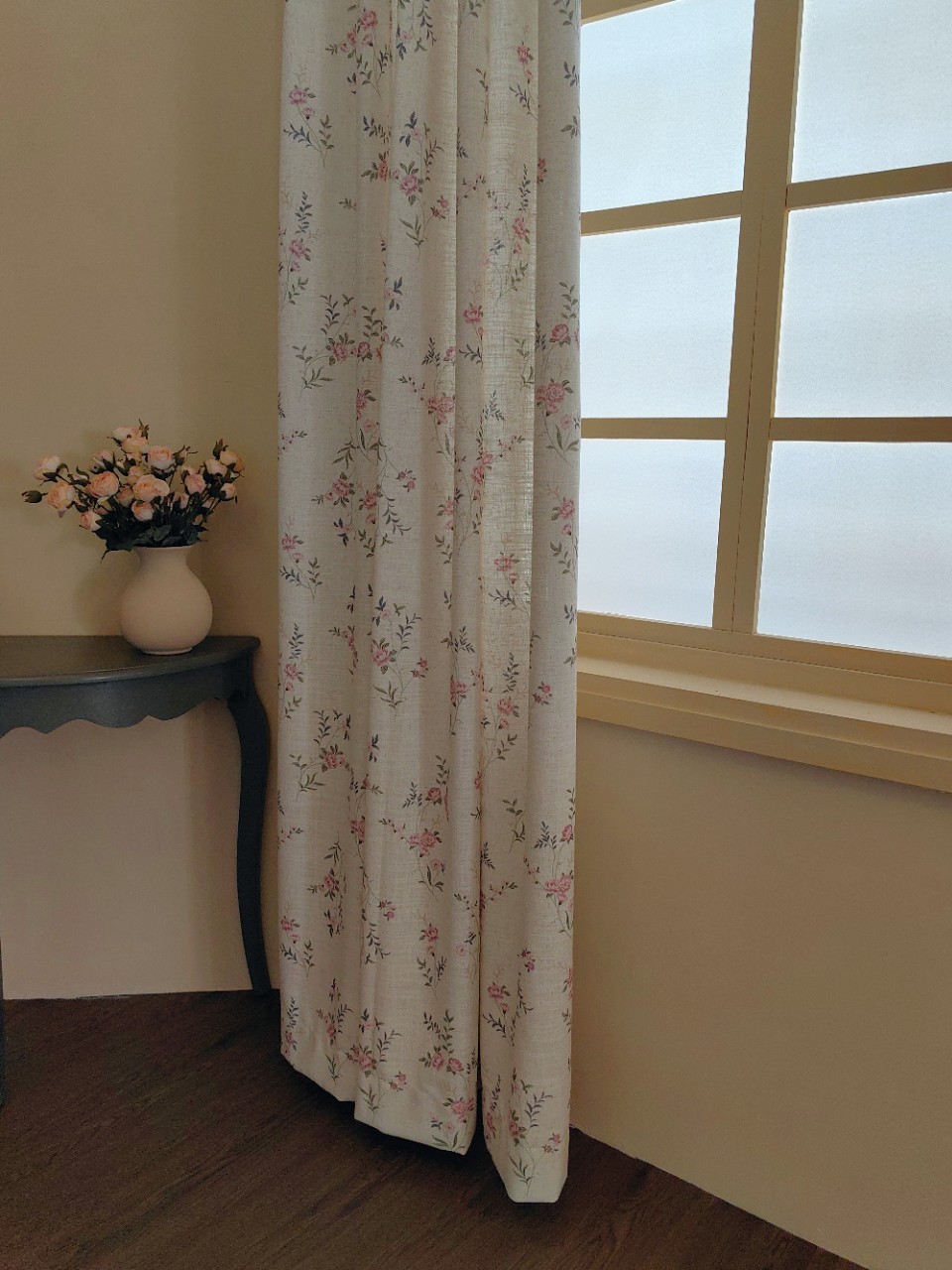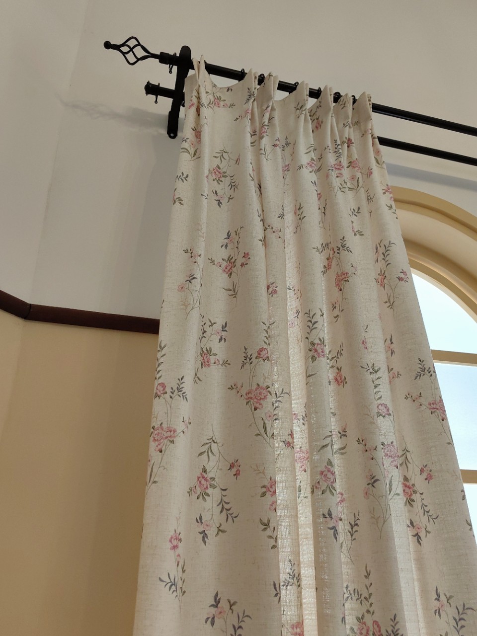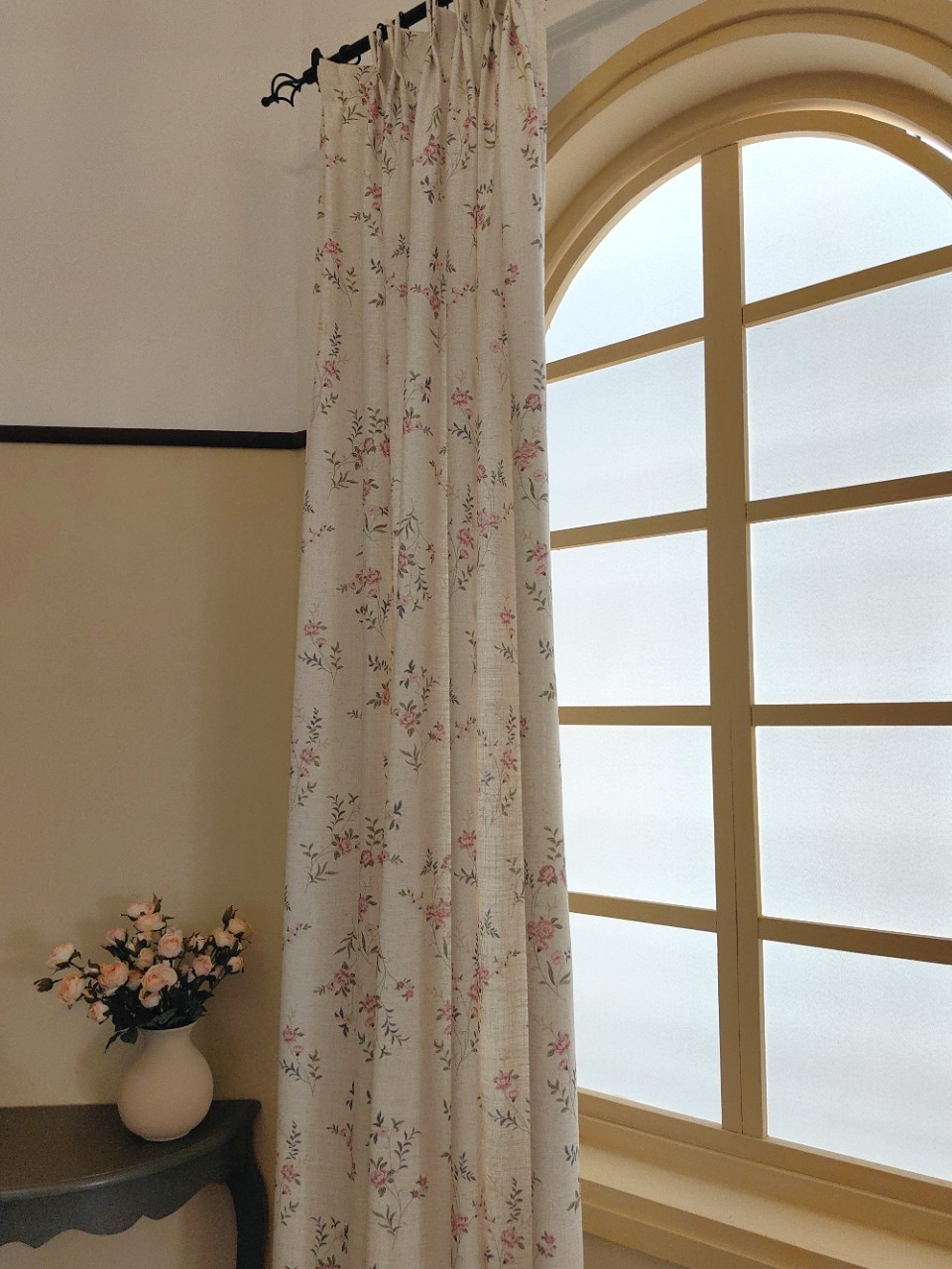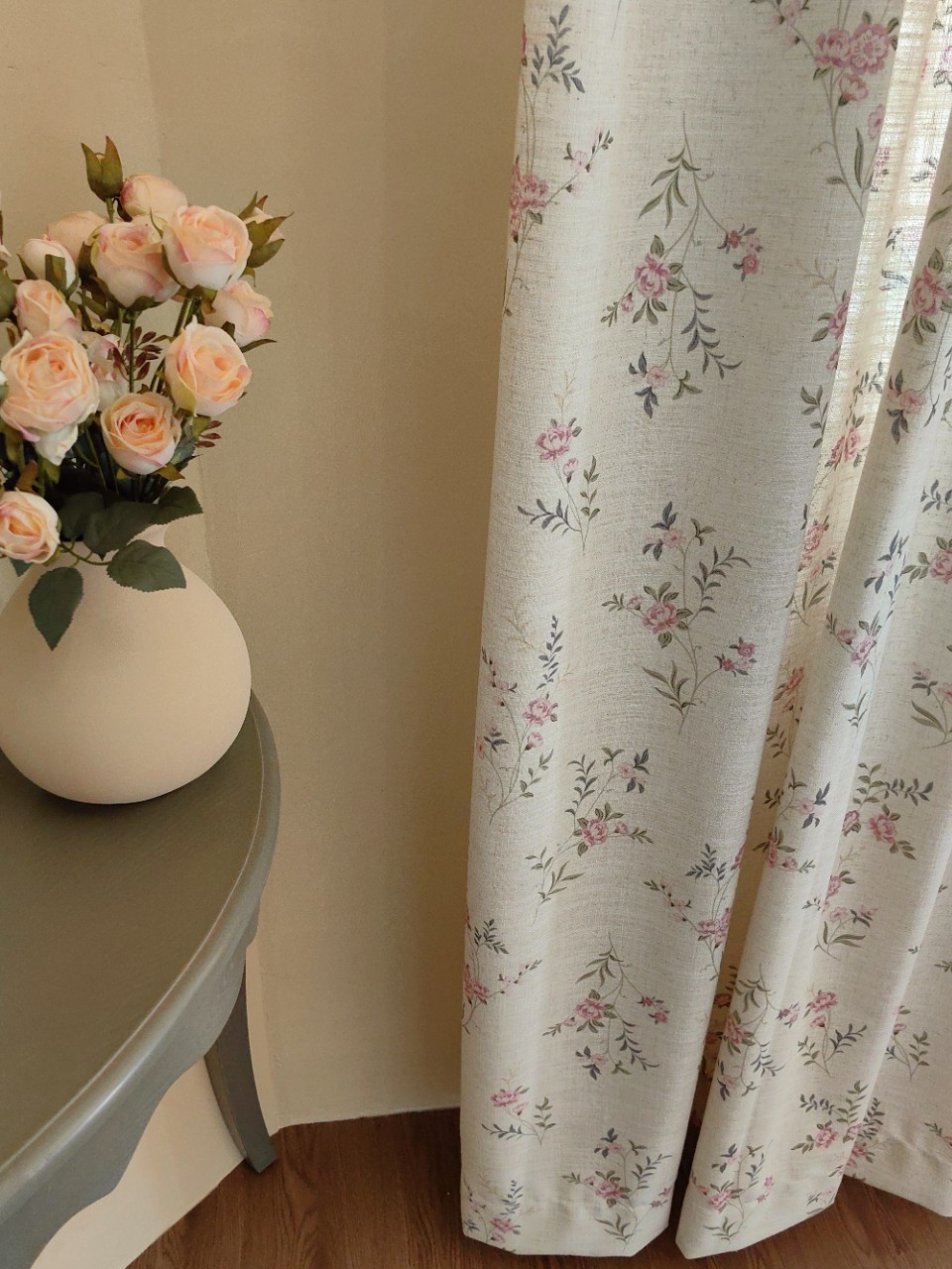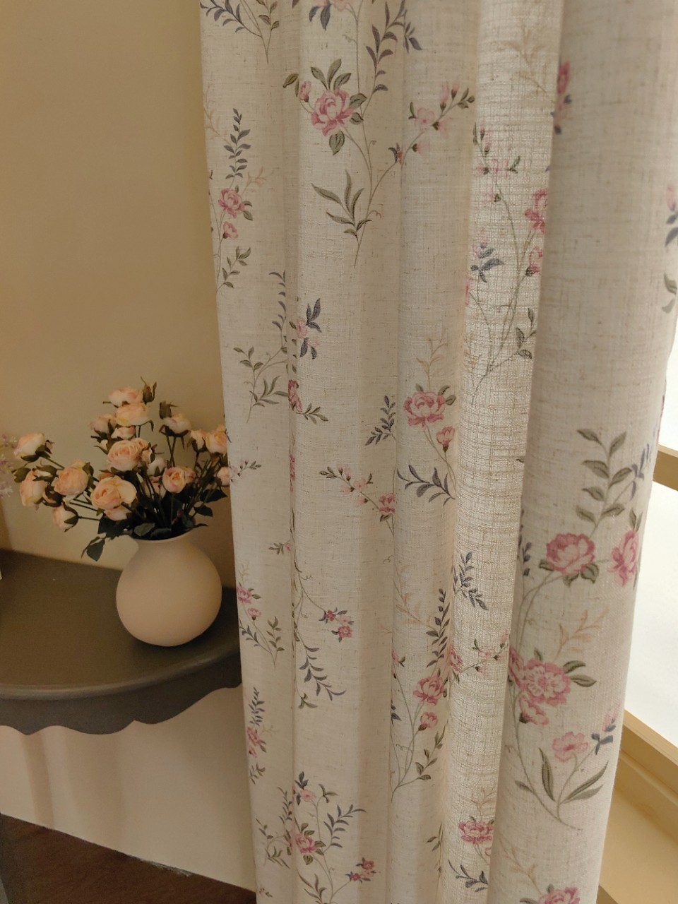 저작권 프랑스 미국 목가적 인 꽃 고급 면화 및 리넨 반음영 인쇄 커튼 천 화면 완성 커튼스토어 가기