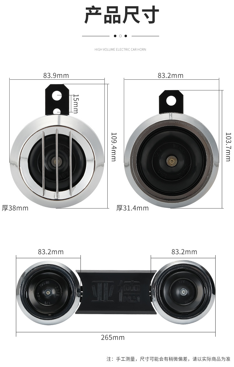 야드 세발 자전거 오토바이 전기 자동차 보호 커버 12V 방수 분지 유형 하이베이스 경적