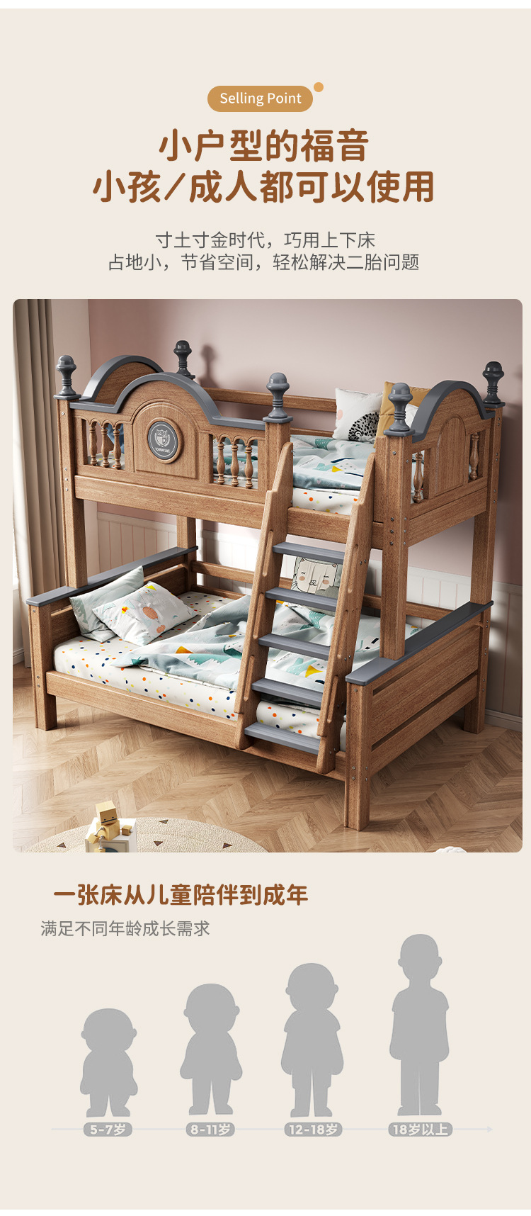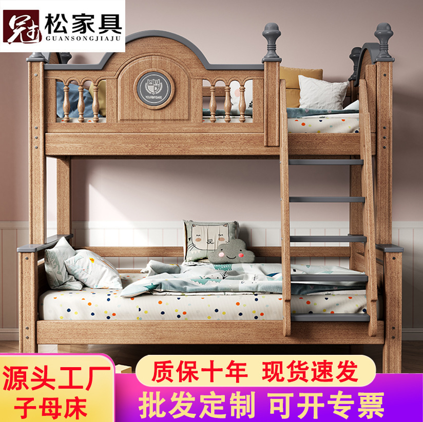 풀 솔리드 우드 두꺼운 2 층 더블 침대 성인과 어린이를위한 상하 벙크 더블 침대 작은 아파트 어머니 침대