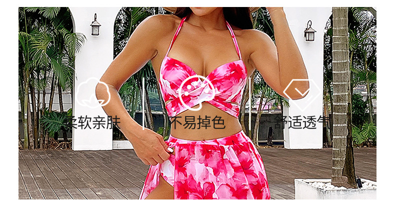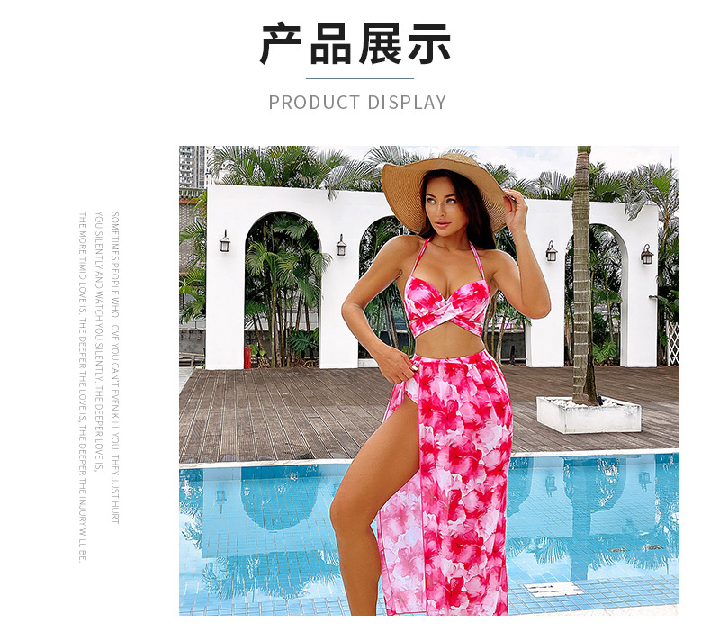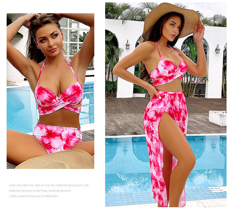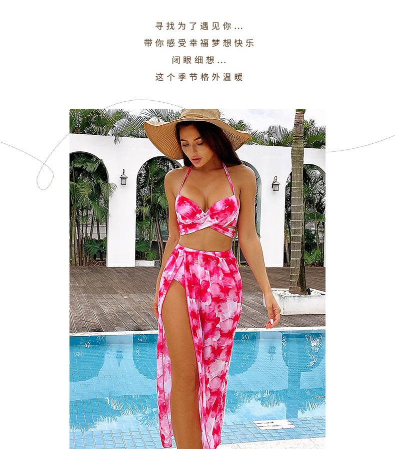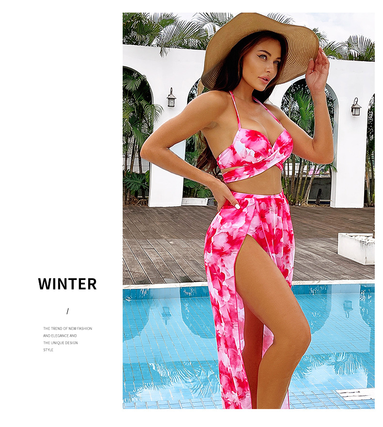 2024 유럽 및 미국 스타일 핫걸 프린트 비키니 3피스 세트 아마존 시스루 스커트 백리스 비키니 수영복 유럽 및 미국 스타일스토어 가기
