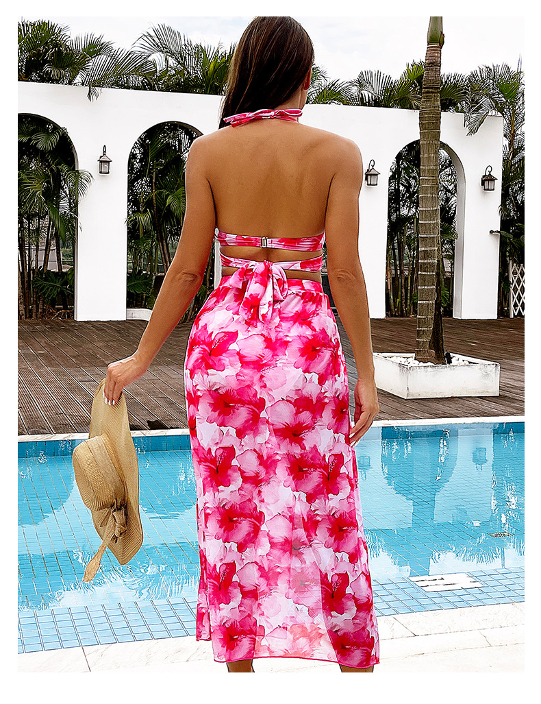 2024 유럽 및 미국 스타일 핫걸 프린트 비키니 3피스 세트 아마존 시스루 스커트 백리스 비키니 수영복 유럽 및 미국 스타일