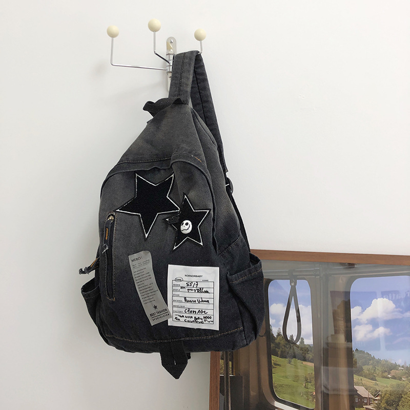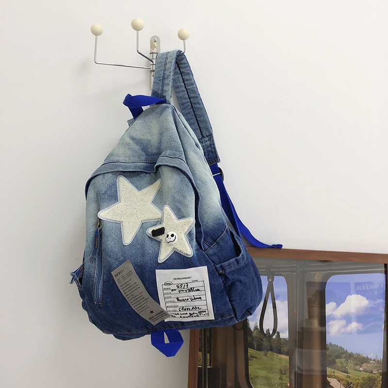 중학생 책가방, 대용량, 맞춤형, 스타일리쉬한 백팩, 2025년 신상 캐주얼 여행용 스타 데님 백팩스토어 가기