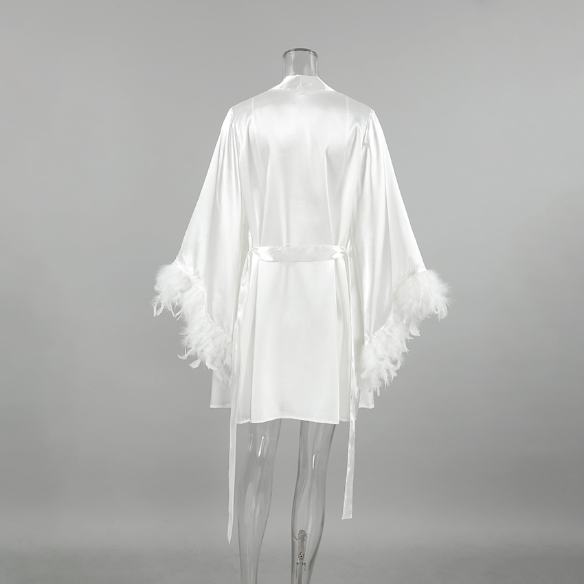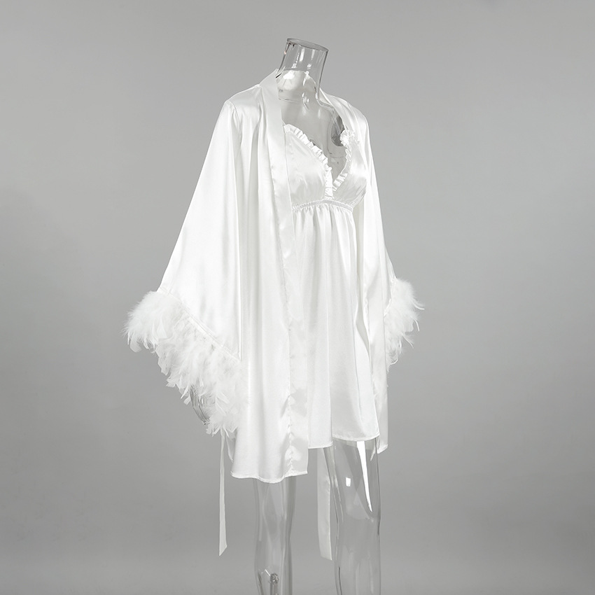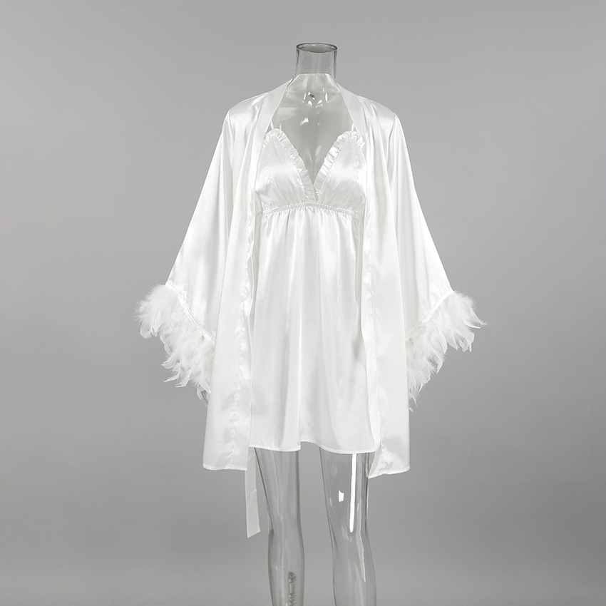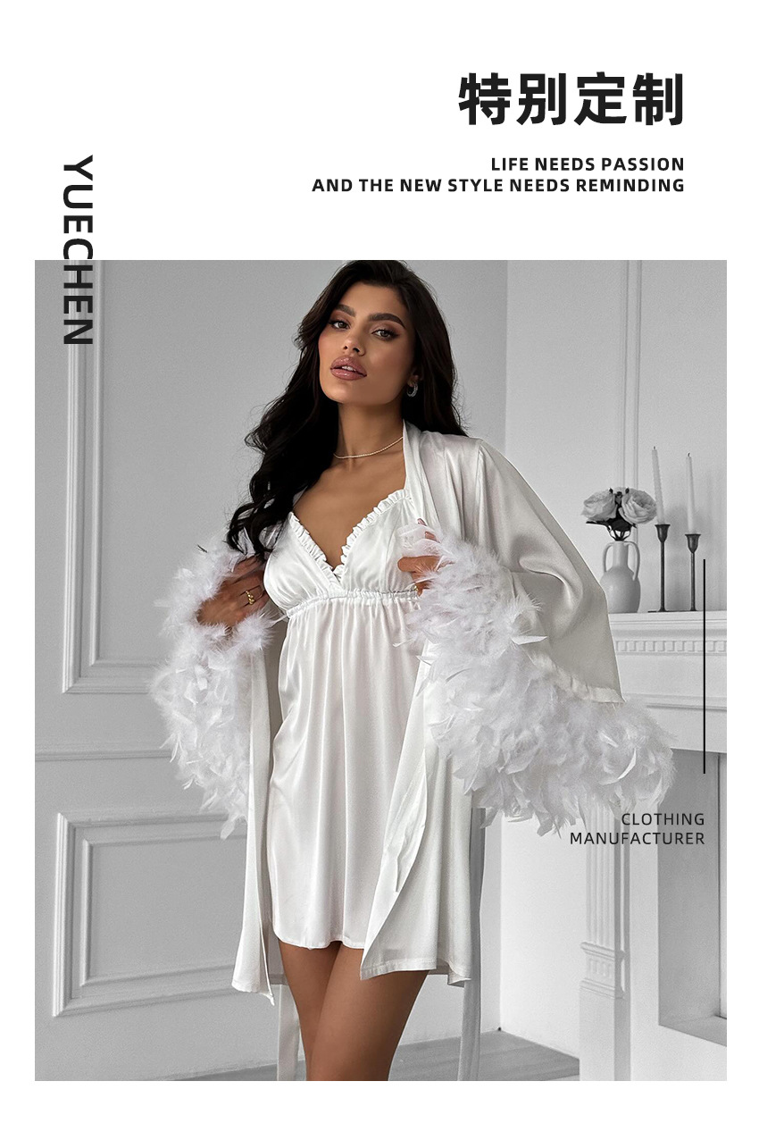 2025 유럽과 미국의 패션 문자 깃털 느슨한 편안한 소프트 로브 슬링 나이트 드레스 잠옷 세트 홈 의류 여성