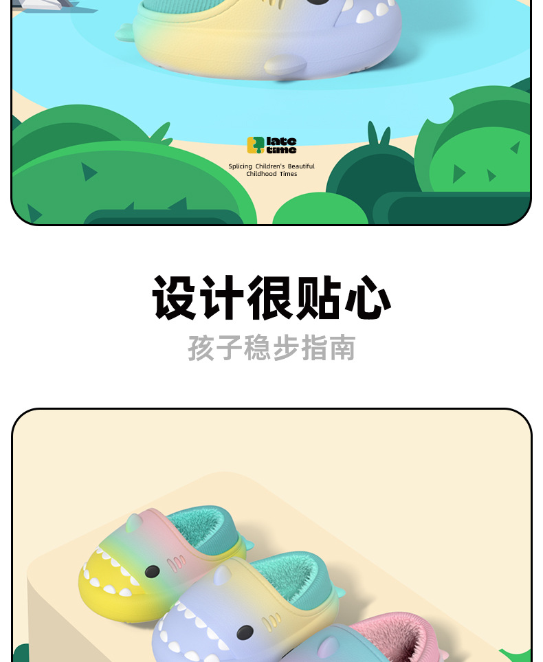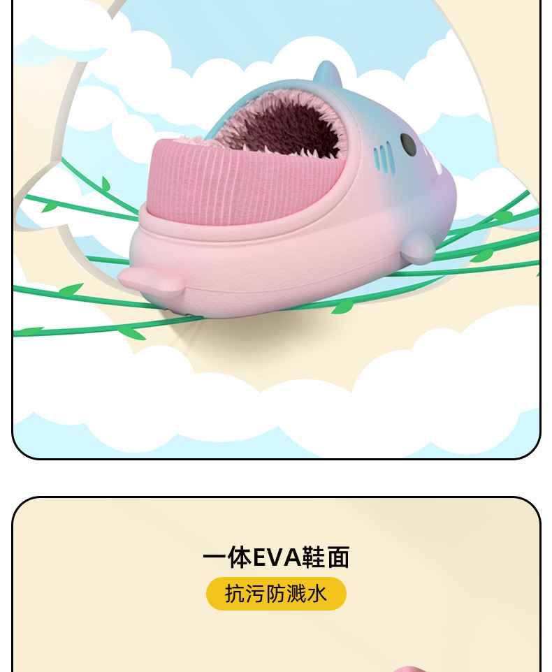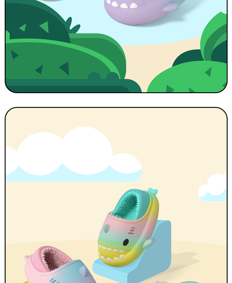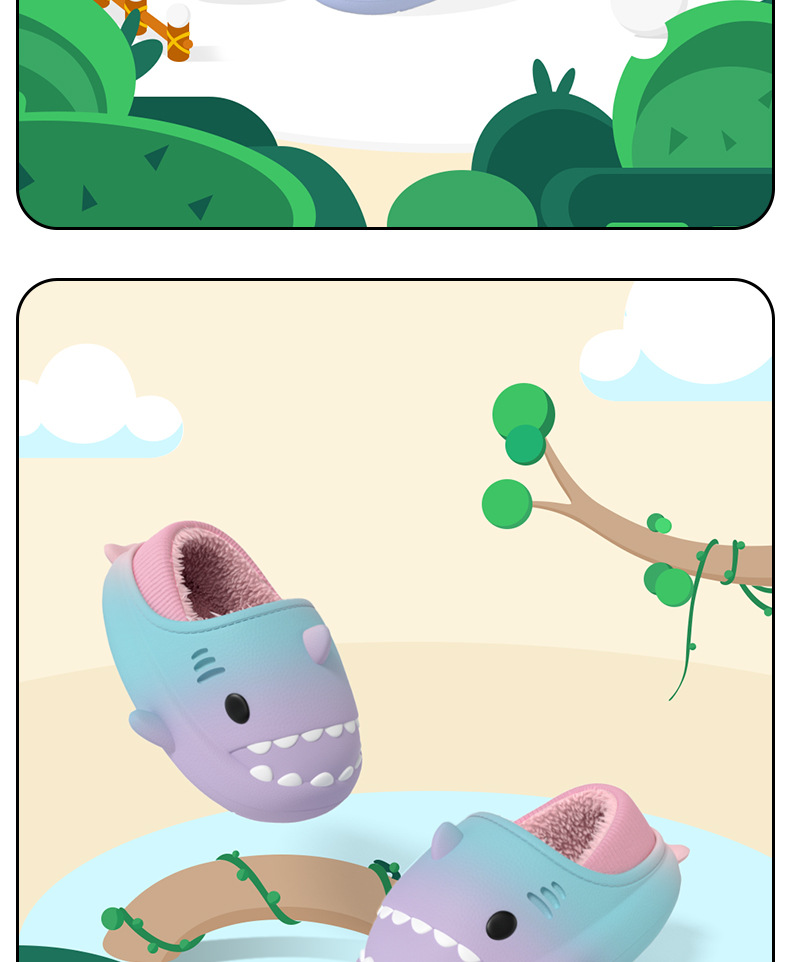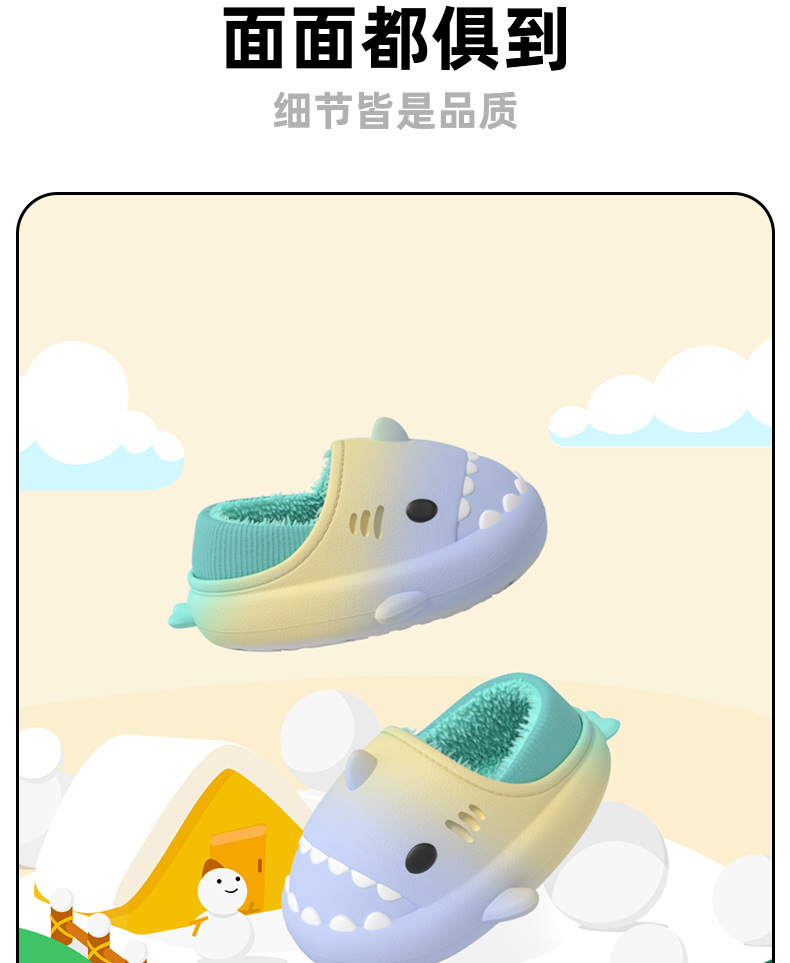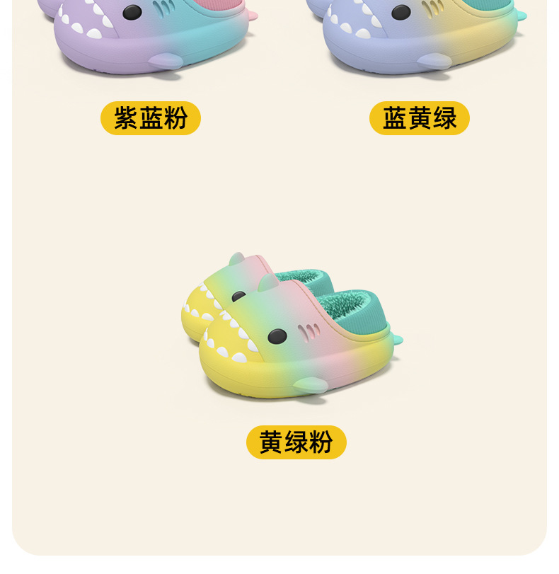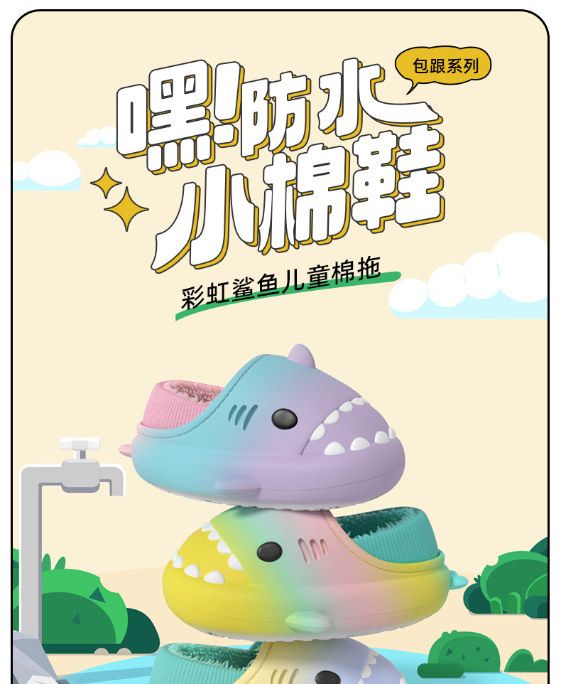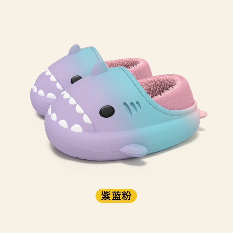 정품 교차 국경 무지개 상어 어린이 가방 면화 슬리퍼 겨울 소녀 실내 홈 봉제 아기 슬리퍼 남성용스토어 가기