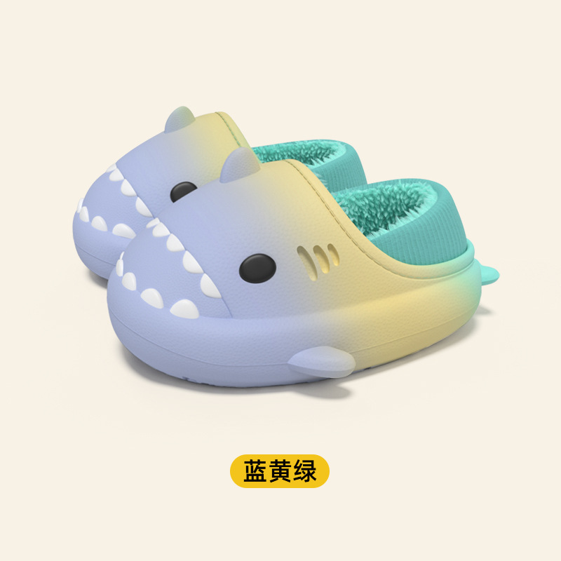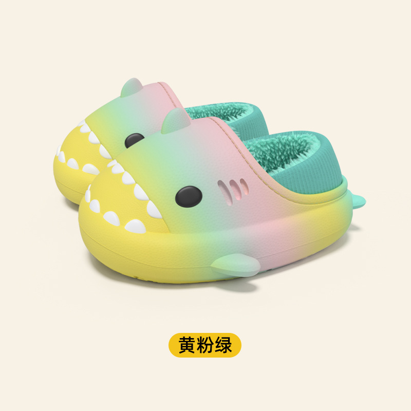 정품 교차 국경 무지개 상어 어린이 가방 면화 슬리퍼 겨울 소녀 실내 홈 봉제 아기 슬리퍼 남성용