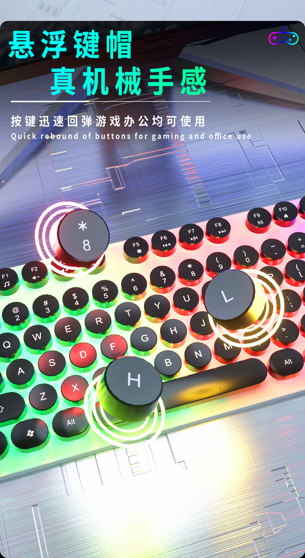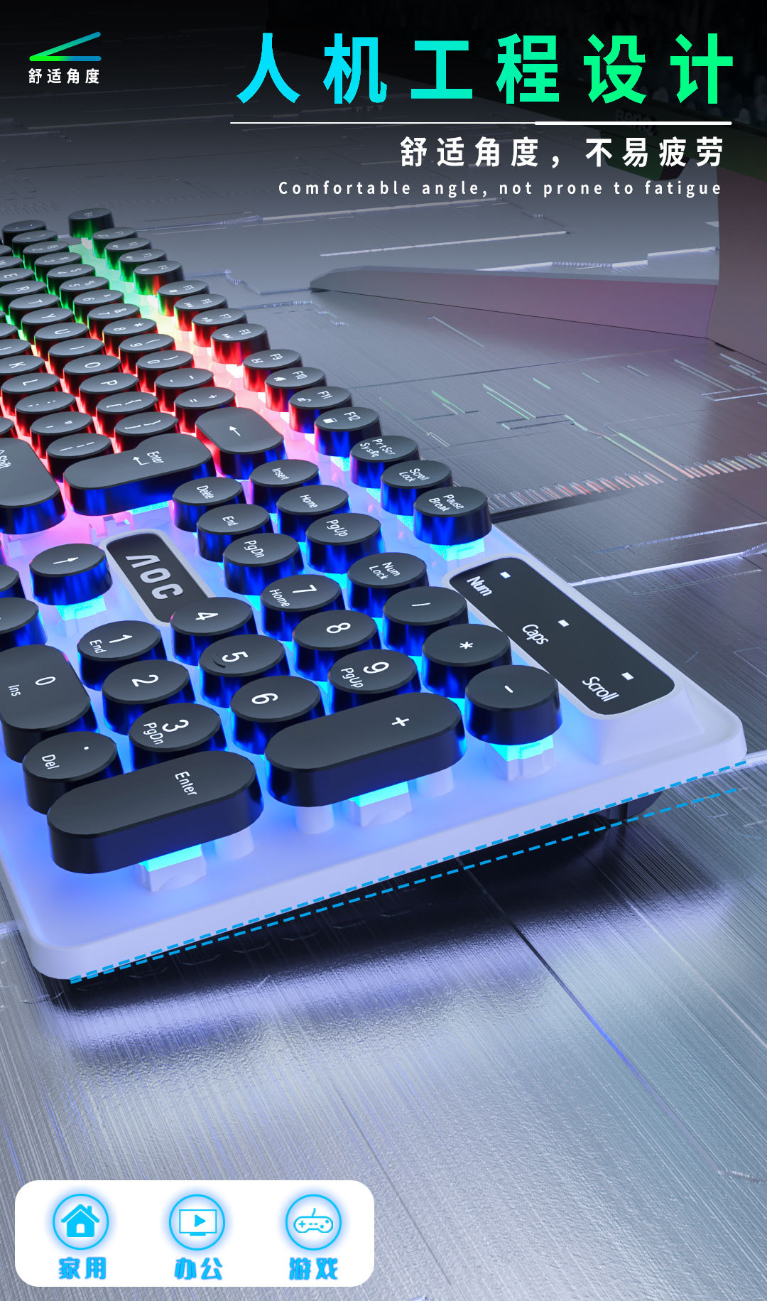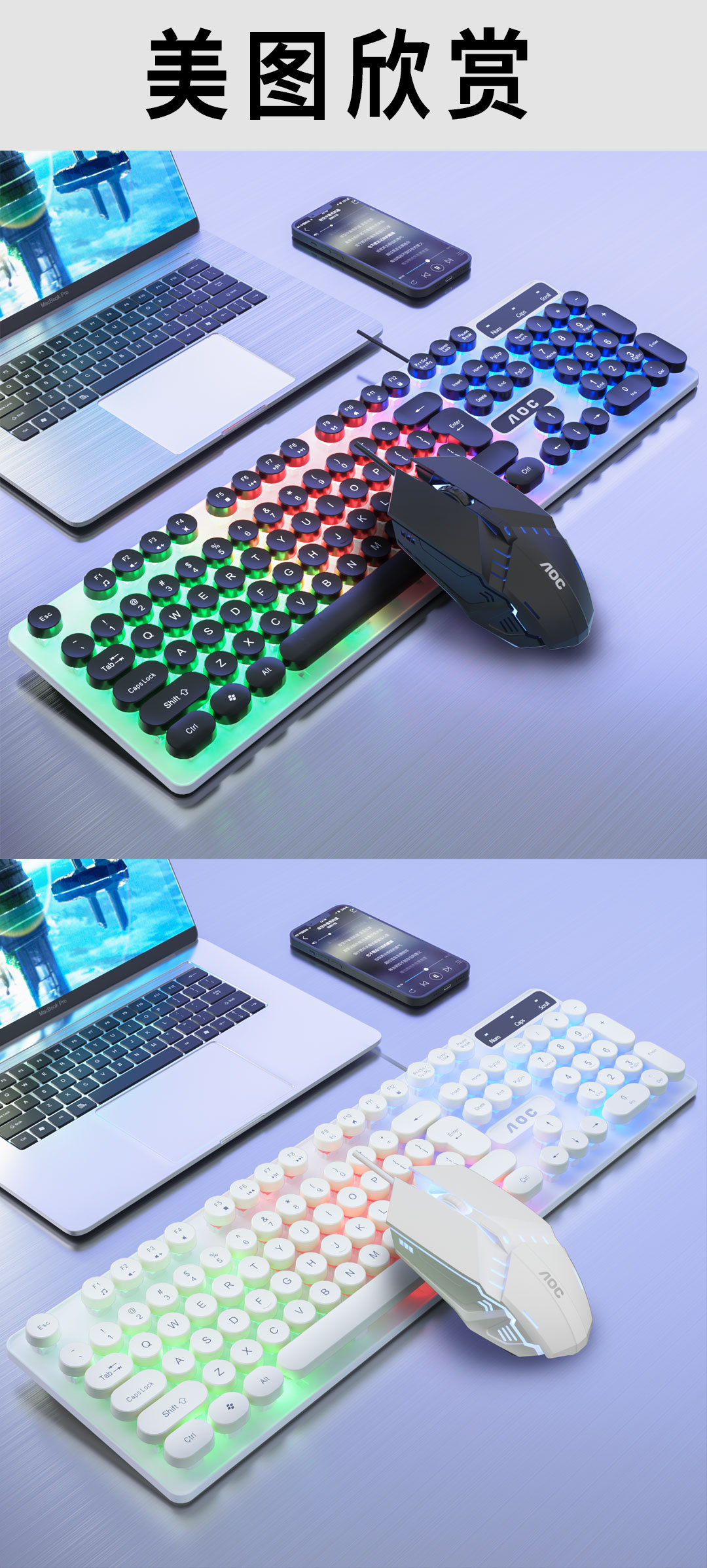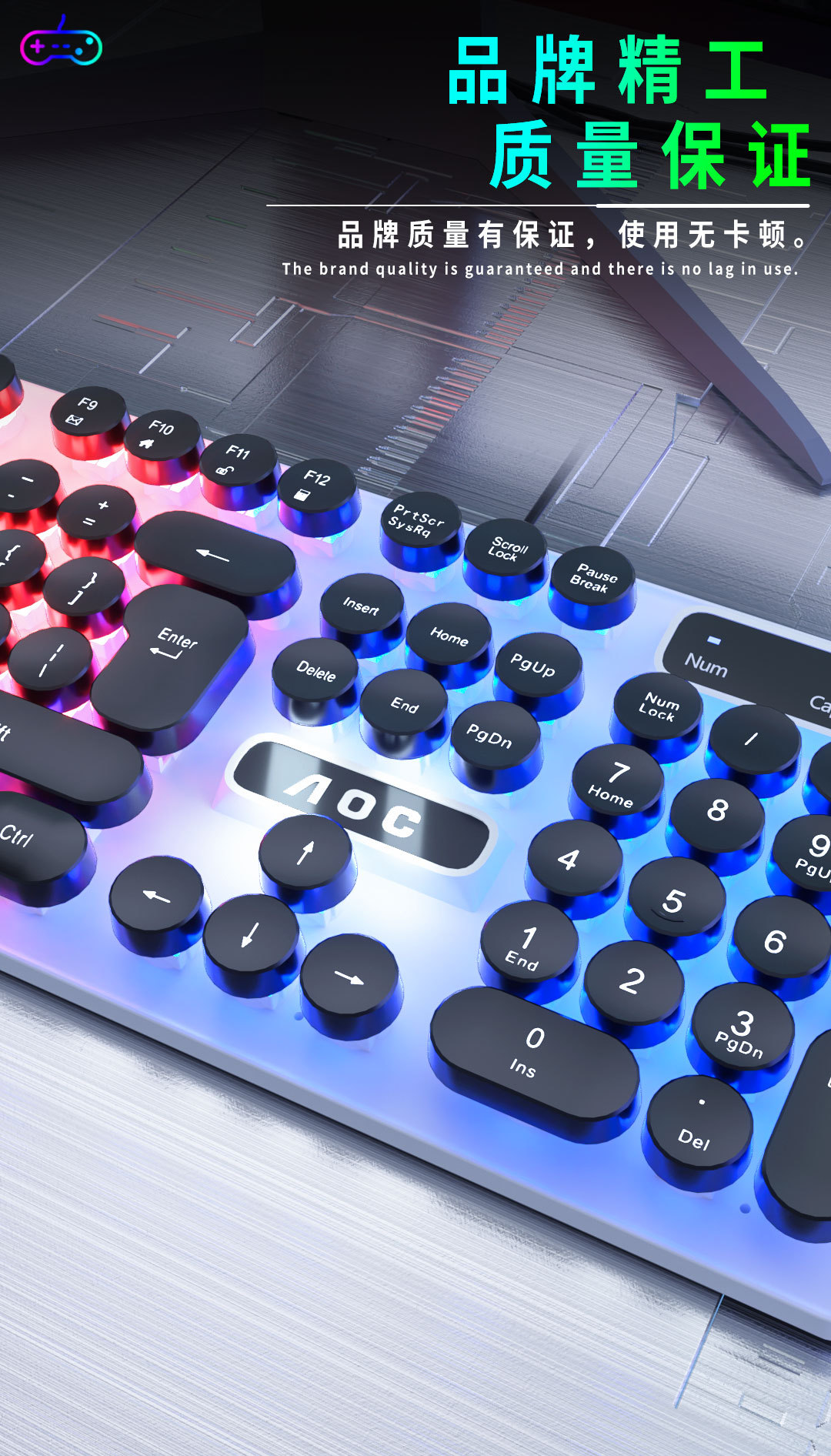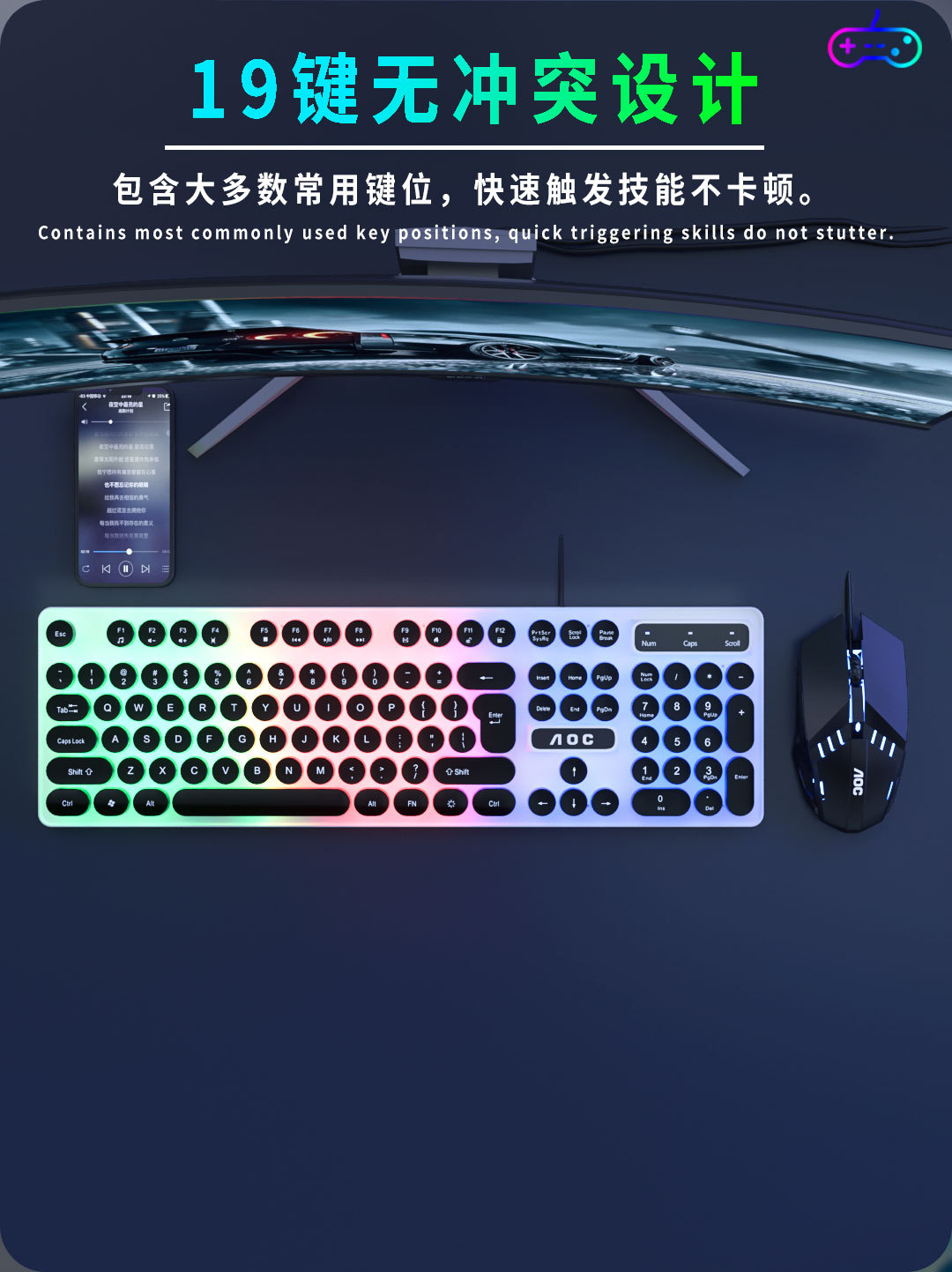 AOC KM100 펑크 라운드 키 캡 유선 발광 게임 키보드 및 마우스 기계적 느낌 키보드 및 마우스 세트 도매