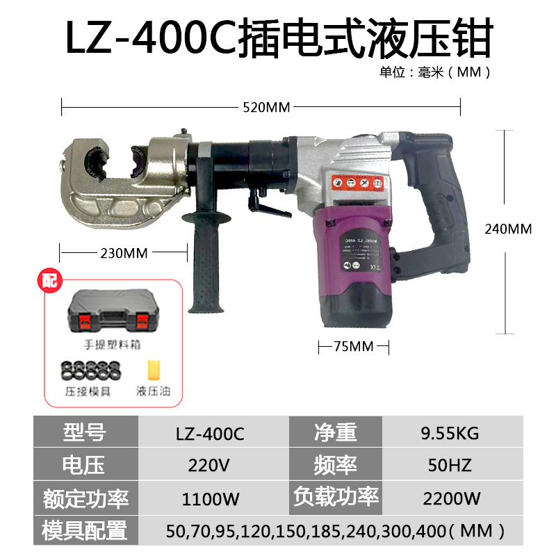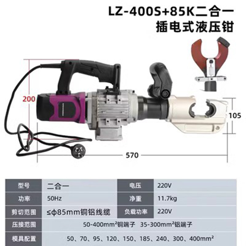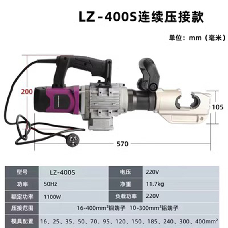 유압 압착기 LZ-400 리튬 전지 구리 알루미늄 노즈 전기 유압 클램프 충전식 케이블 압착기