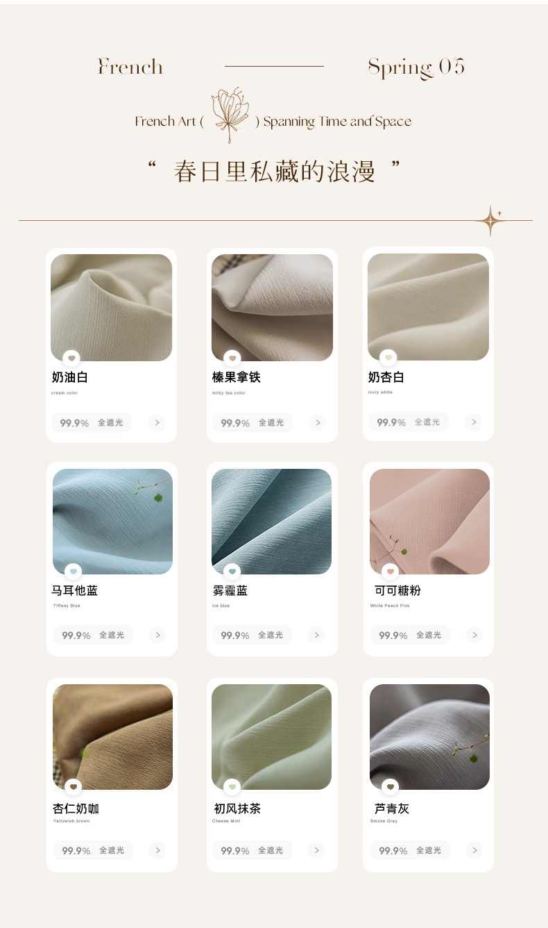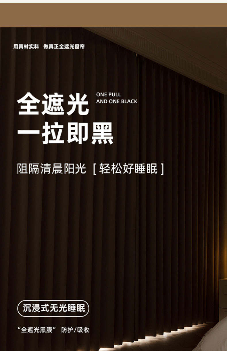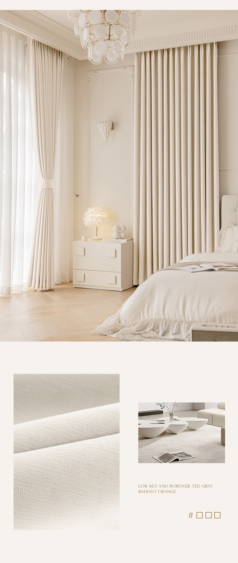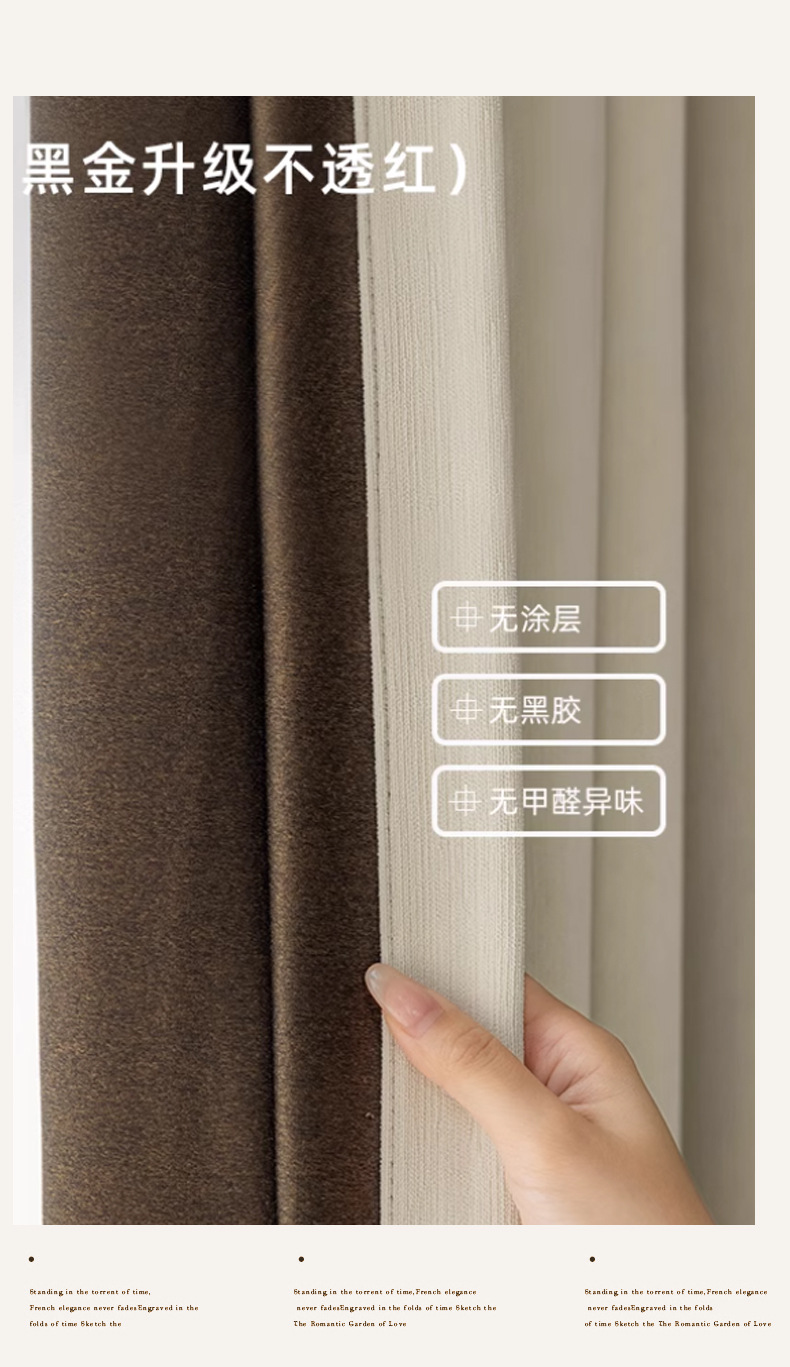 备注:本公司页面所描述的遮光帘,透光率,不退色,克重,色牢度,成分等属性数值,仅供参考。
