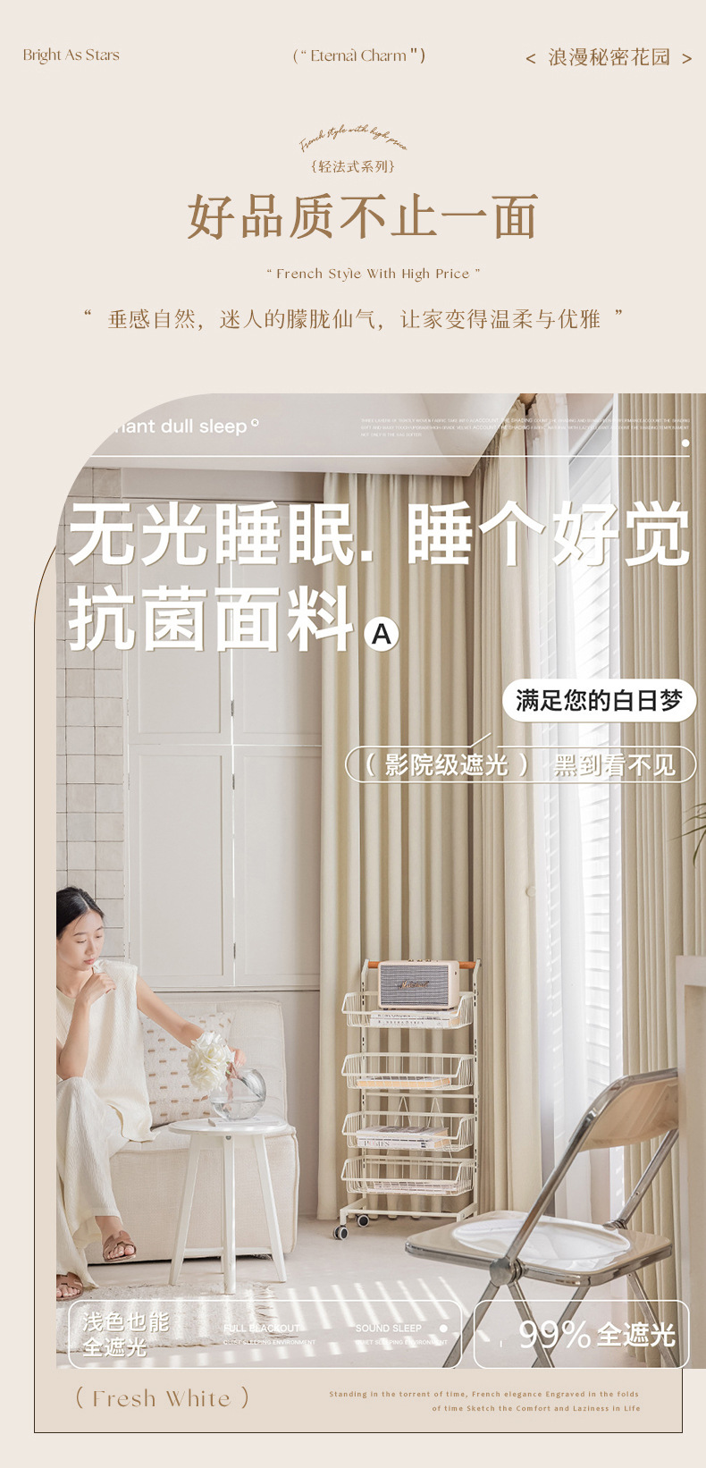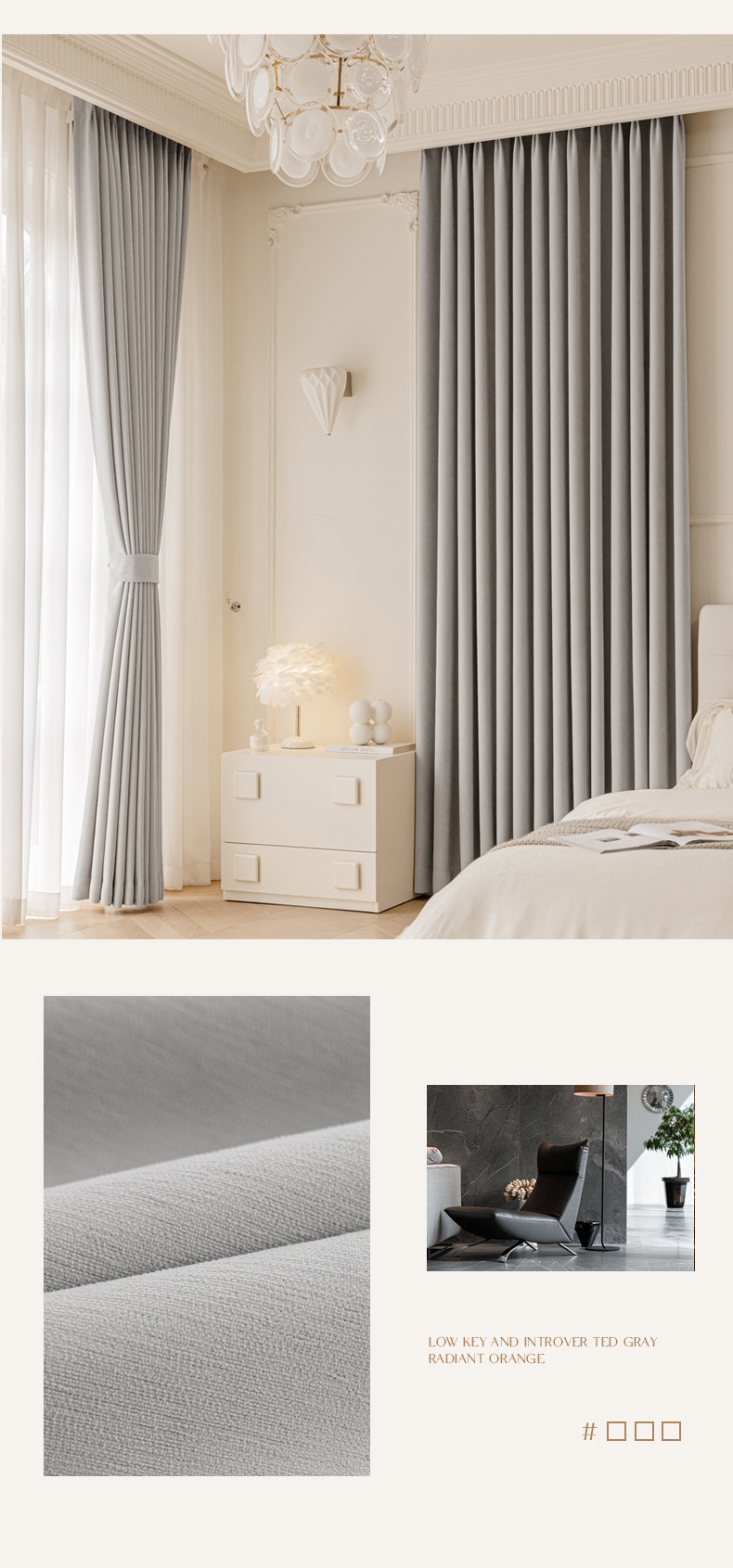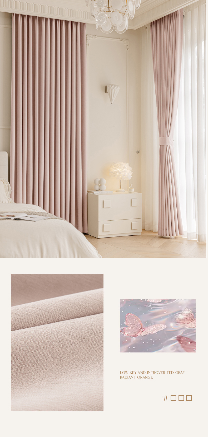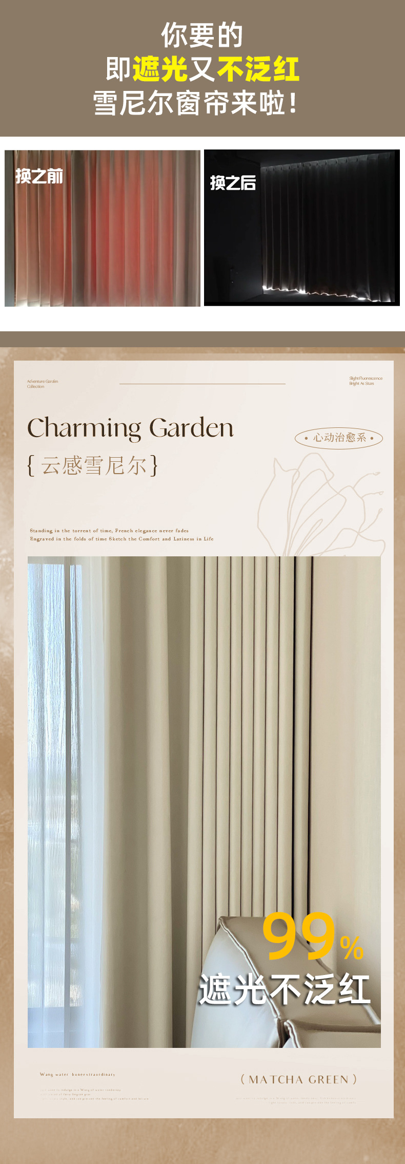 备注:本公司页面所描述的遮光帘,透光率,不退色,克重,色牢度,成分等属性数值,仅供参考。
