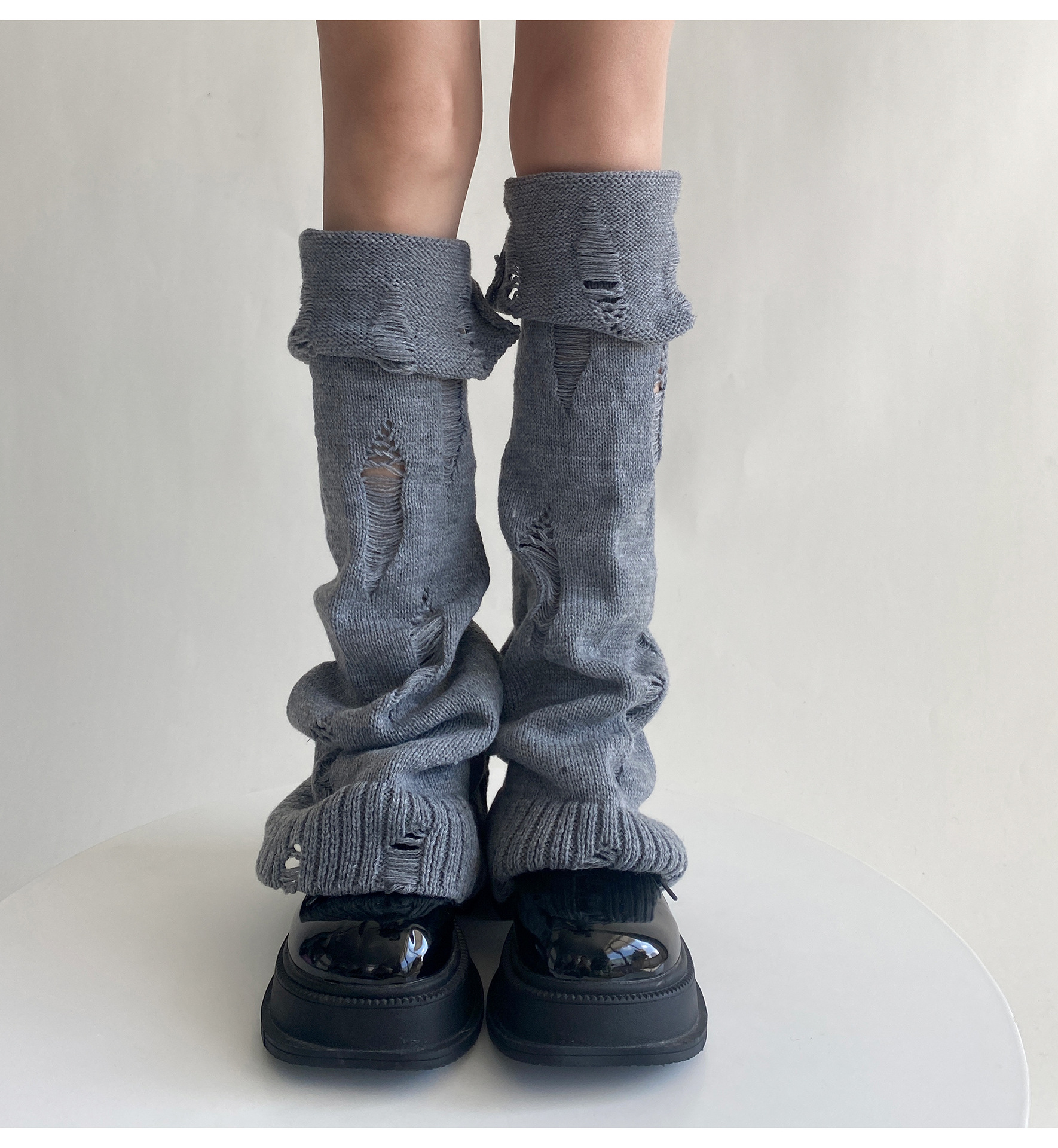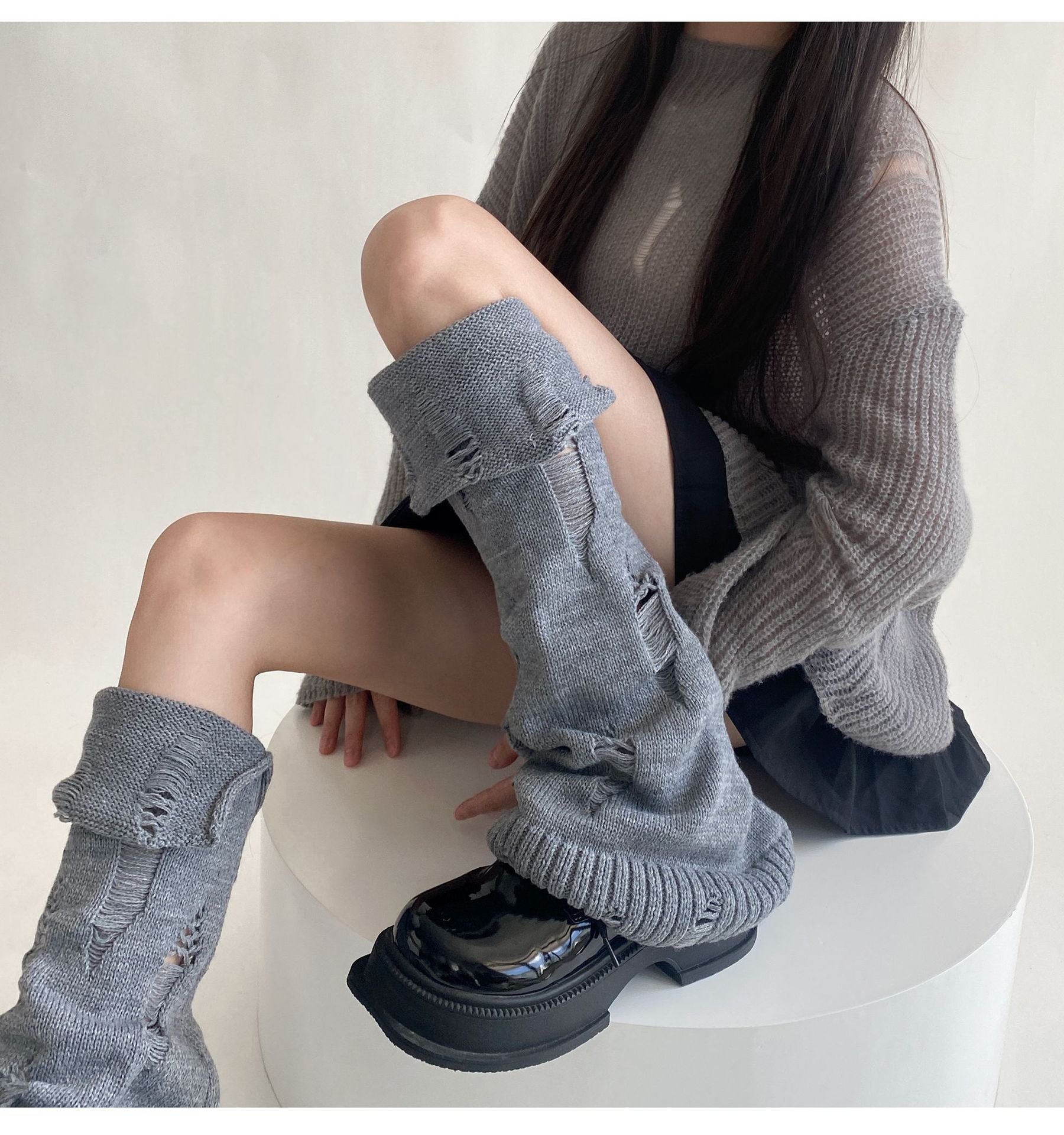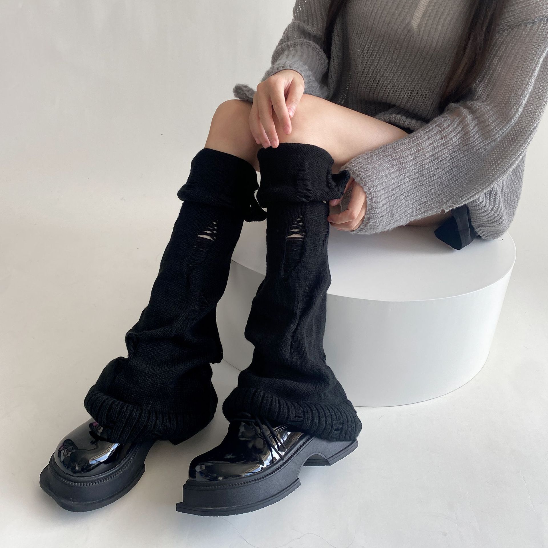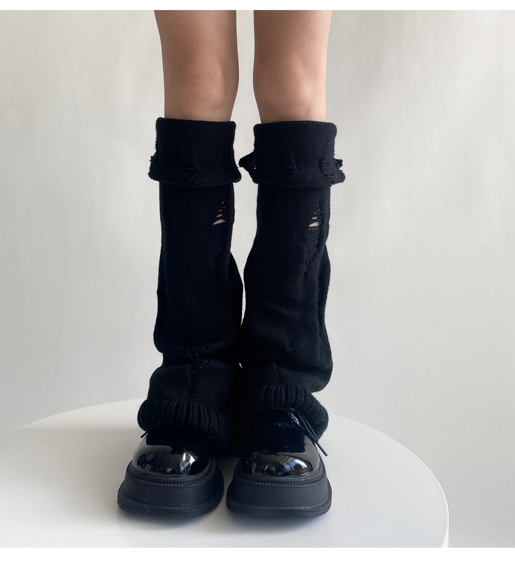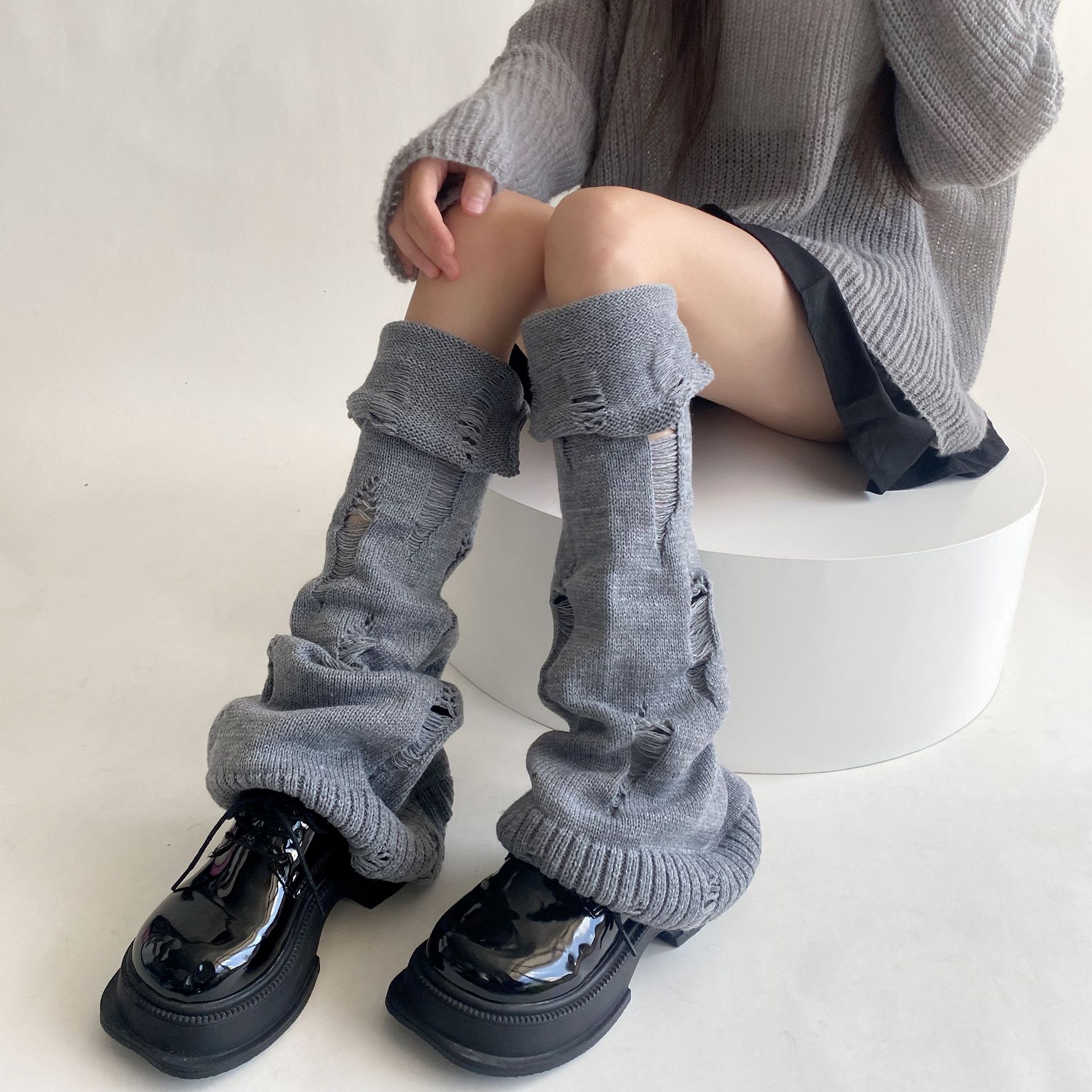 일본식 맞춤형 하위 문화 니트 구멍 넓은 다리 양말 거지 양말 가을과 겨울에 따뜻하게 유지하기 위해 여성이 입을 다물고 다리 커버