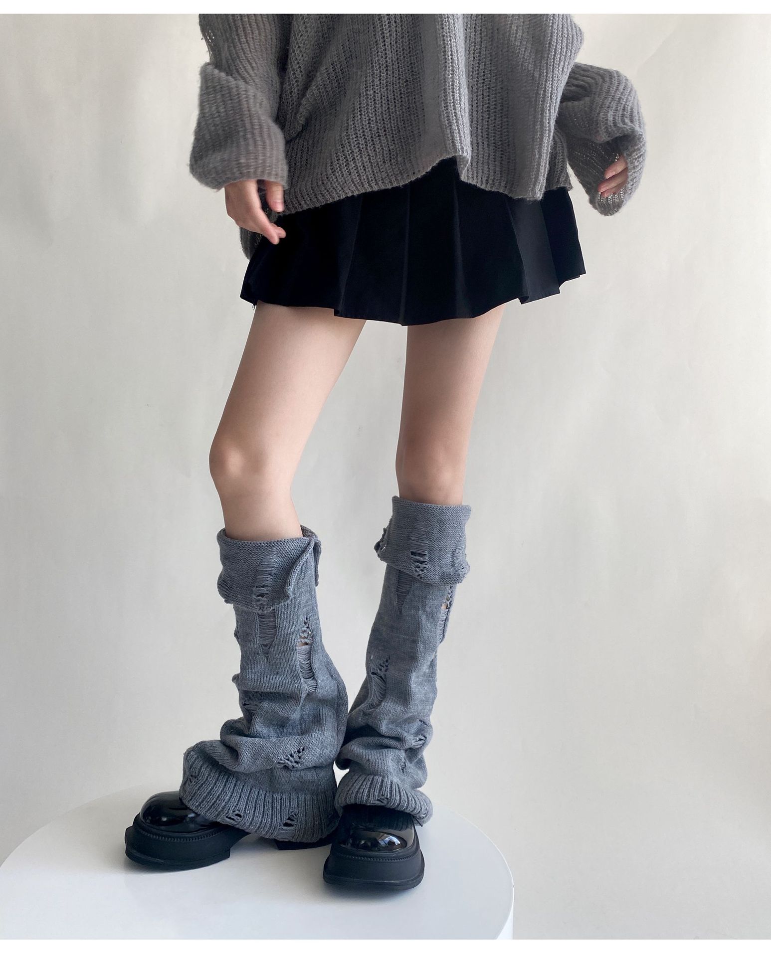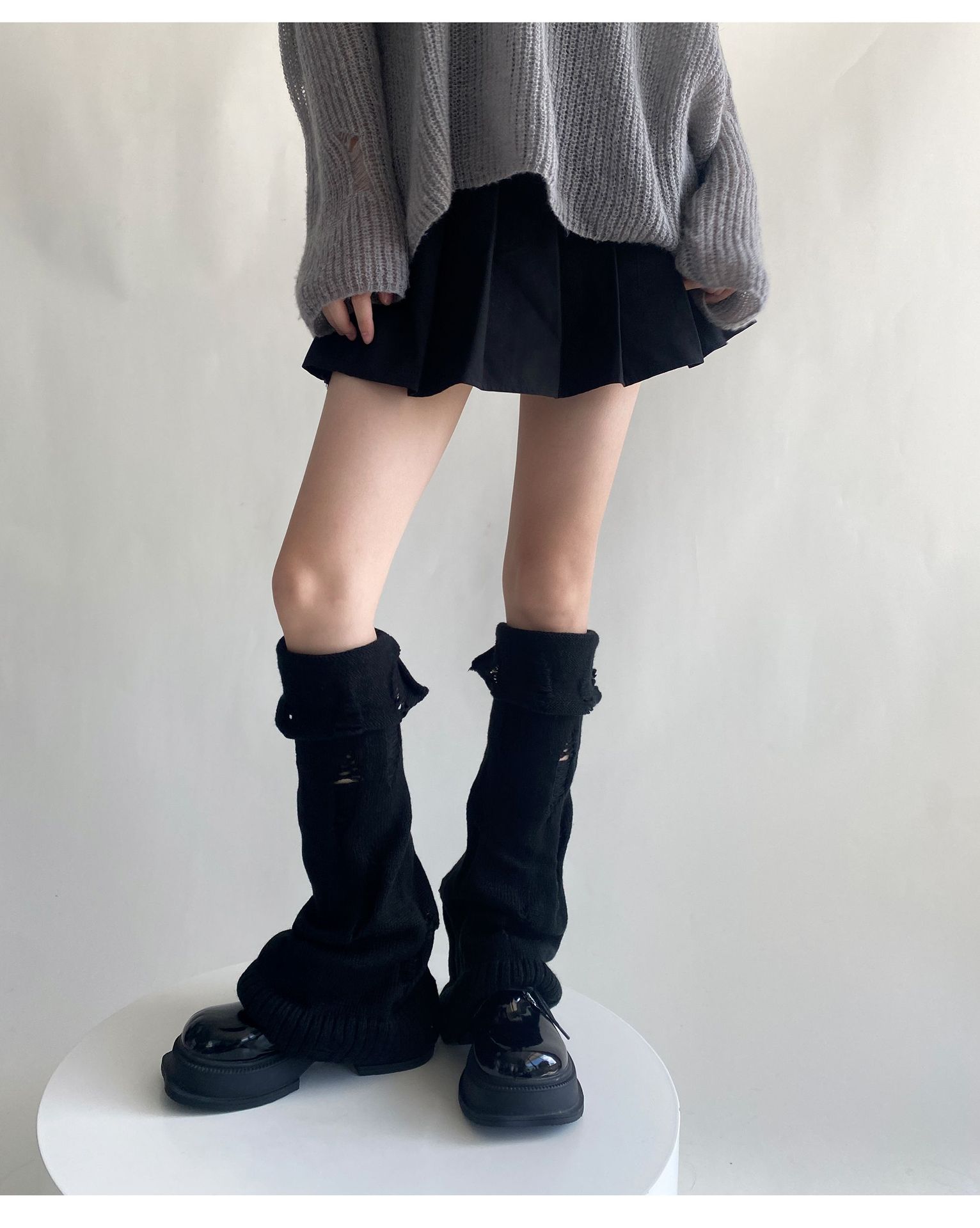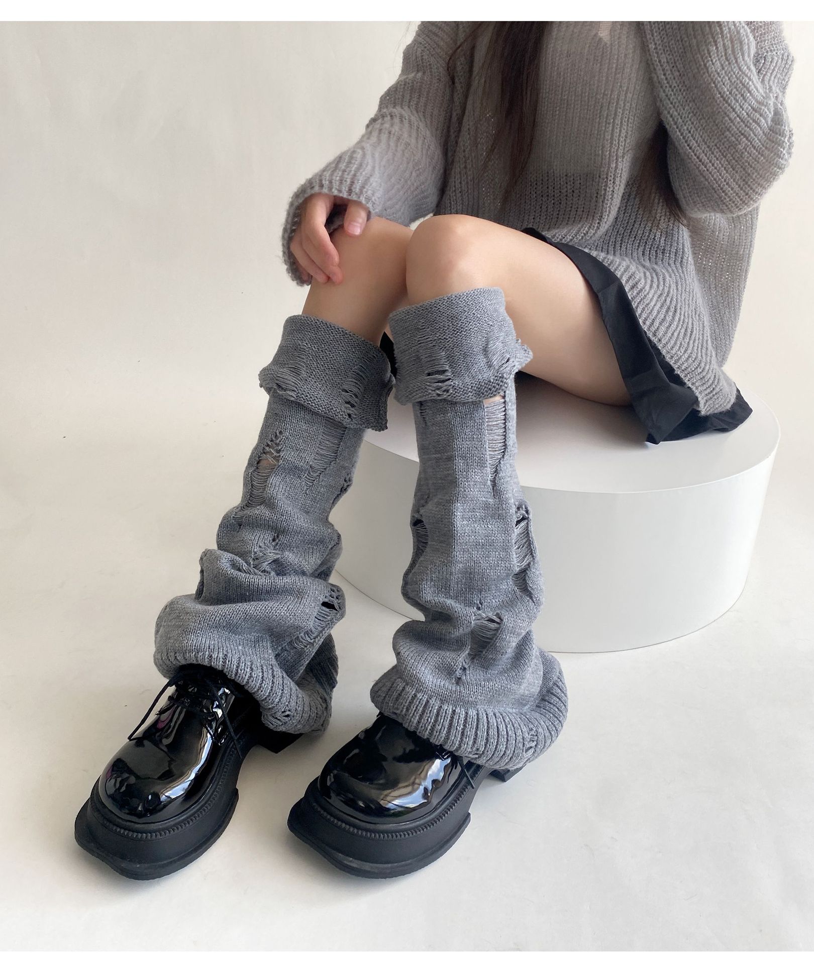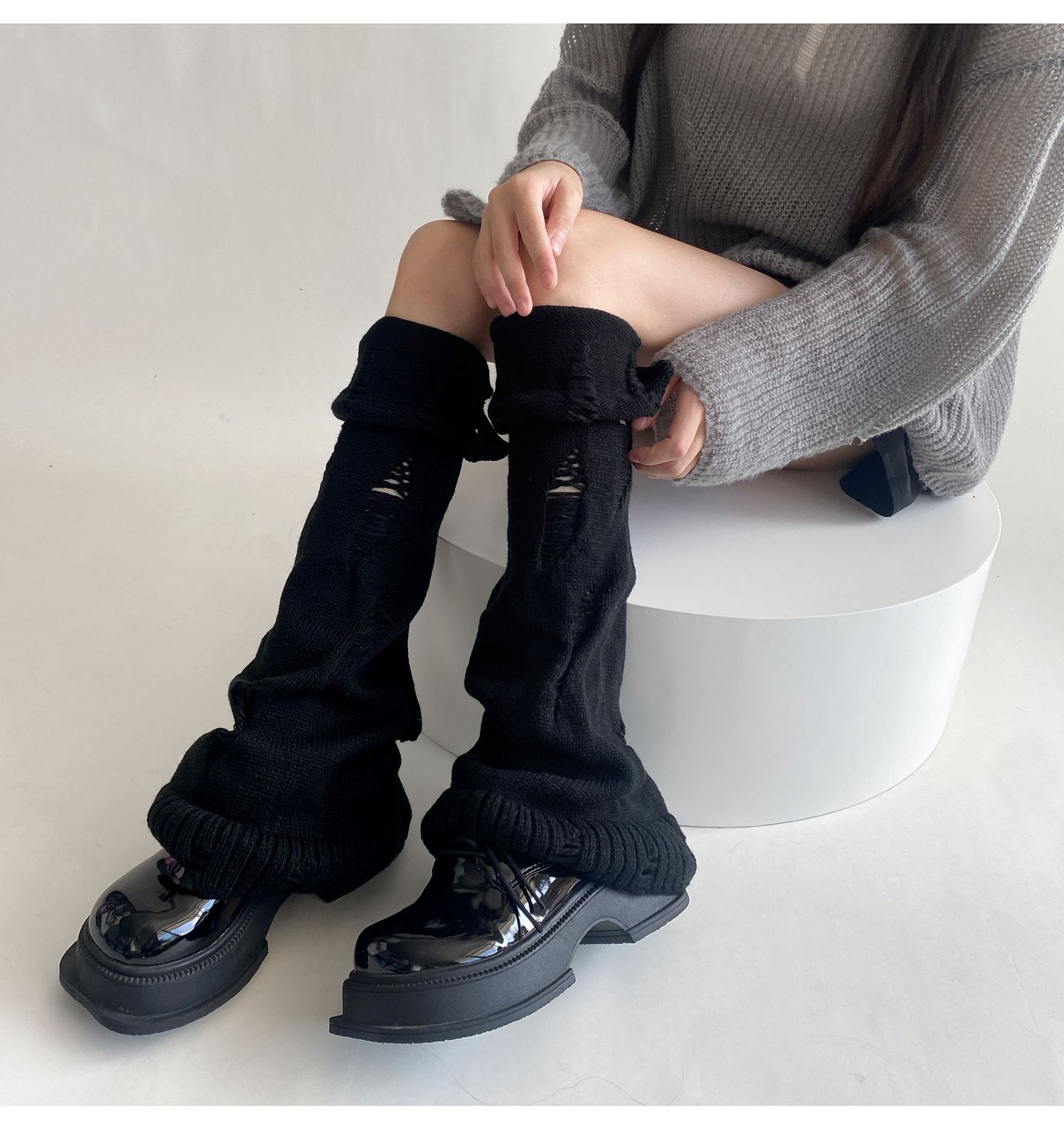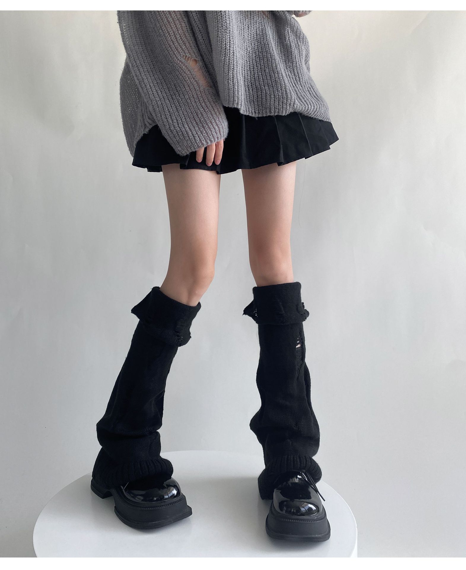 일본식 맞춤형 하위 문화 니트 구멍 넓은 다리 양말 거지 양말 가을과 겨울에 따뜻하게 유지하기 위해 여성이 입을 다물고 다리 커버