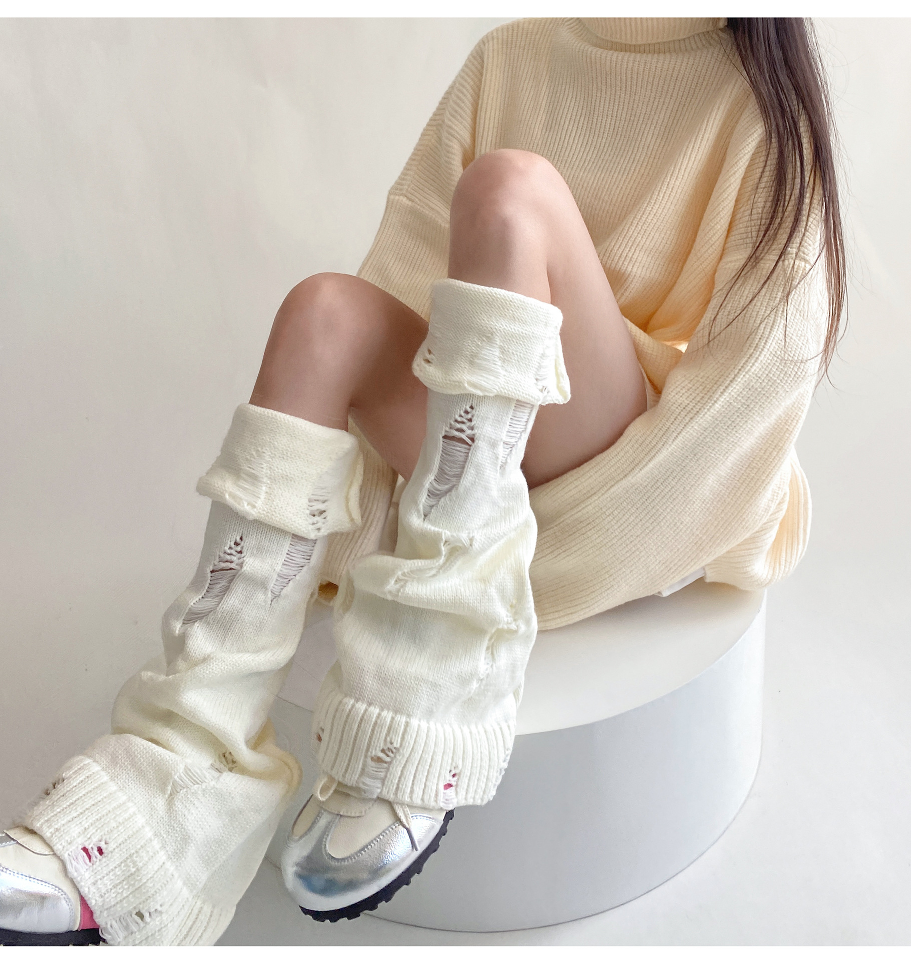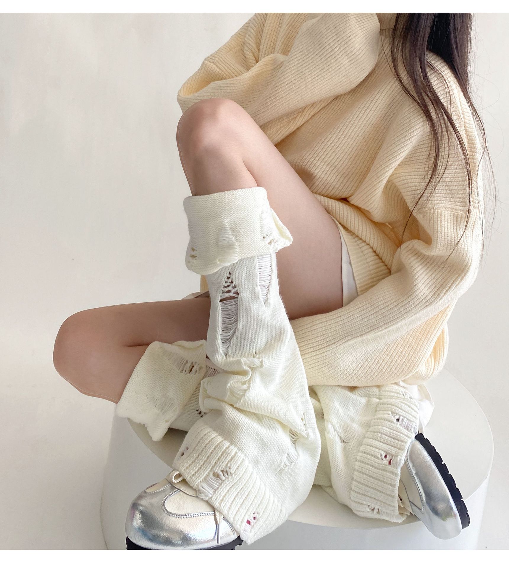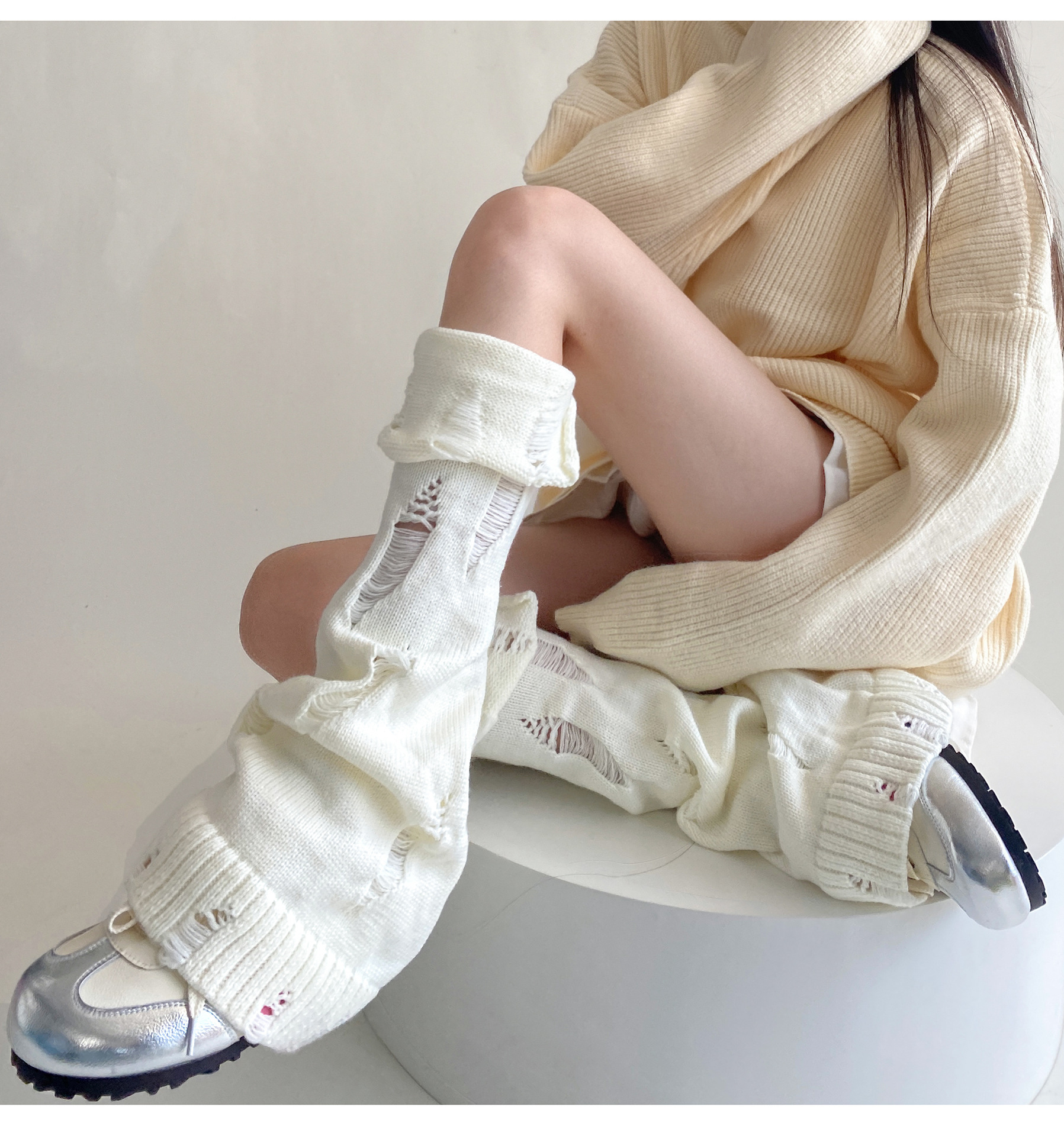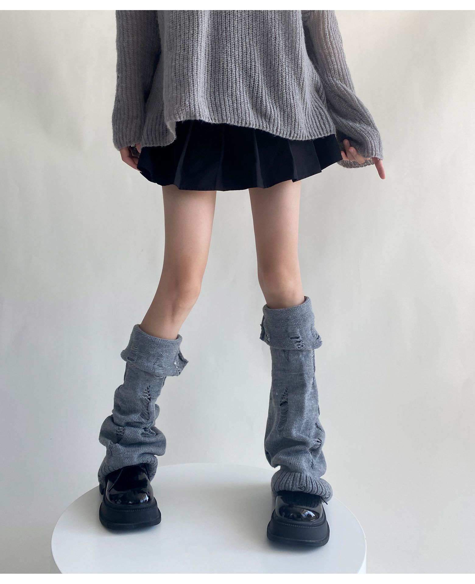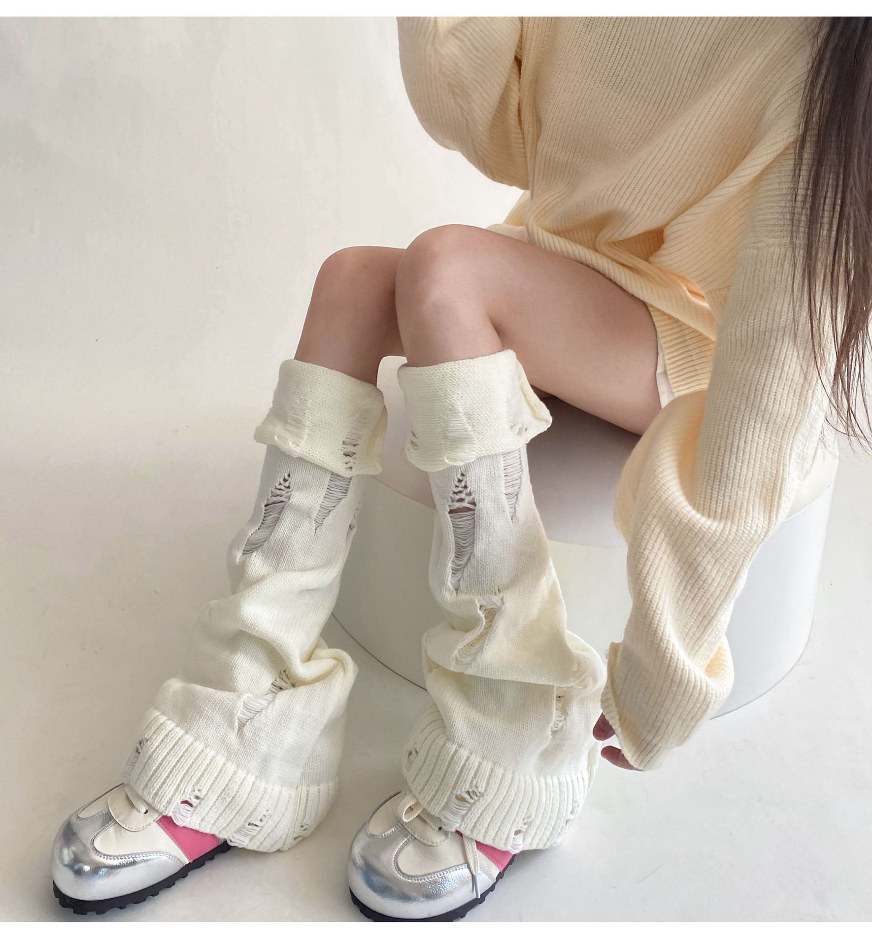 일본식 맞춤형 하위 문화 니트 구멍 넓은 다리 양말 거지 양말 가을과 겨울에 따뜻하게 유지하기 위해 여성이 입을 다물고 다리 커버