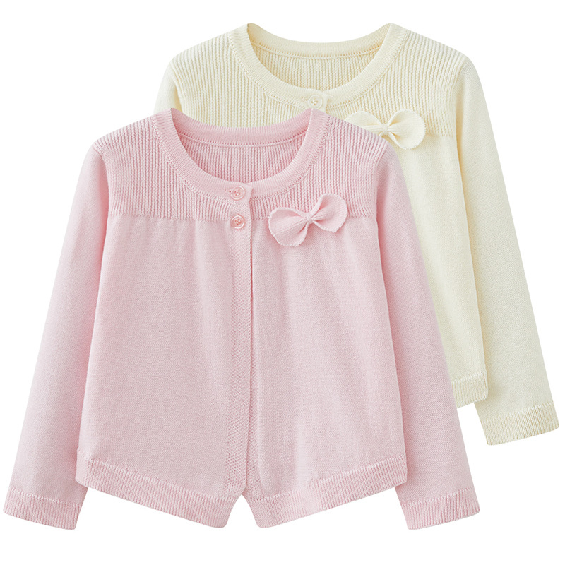 2025 한국어 버전 중소형 아동용 니트 카디건 재킷 코튼 보우 소녀 작은 숄 에어컨 셔츠 드롭 배송스토어 가기