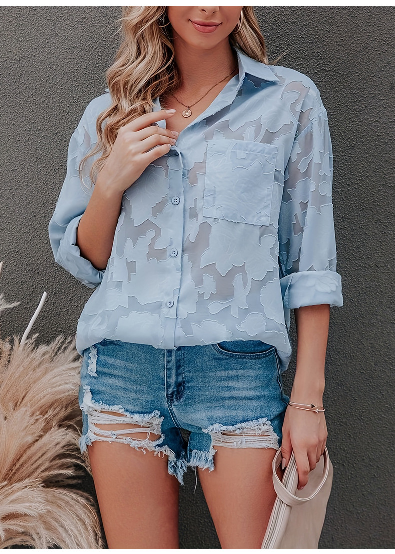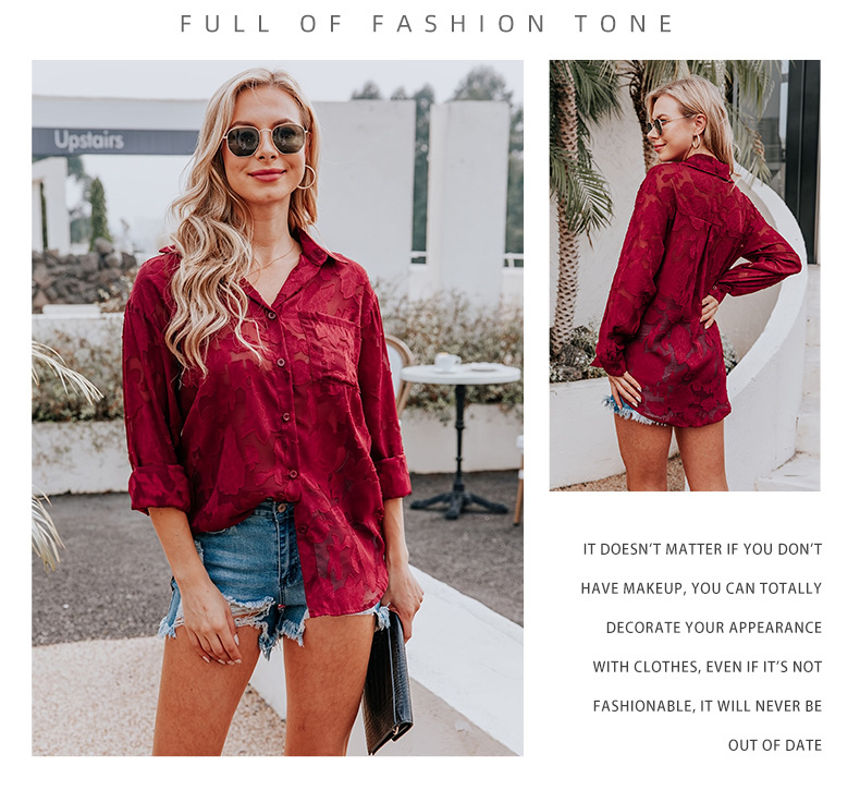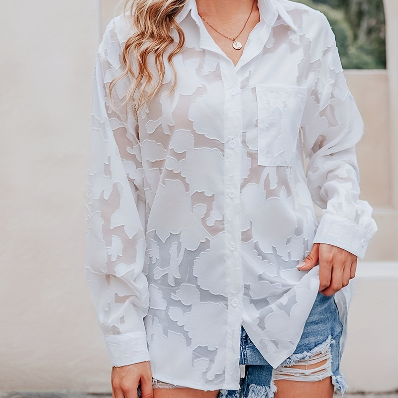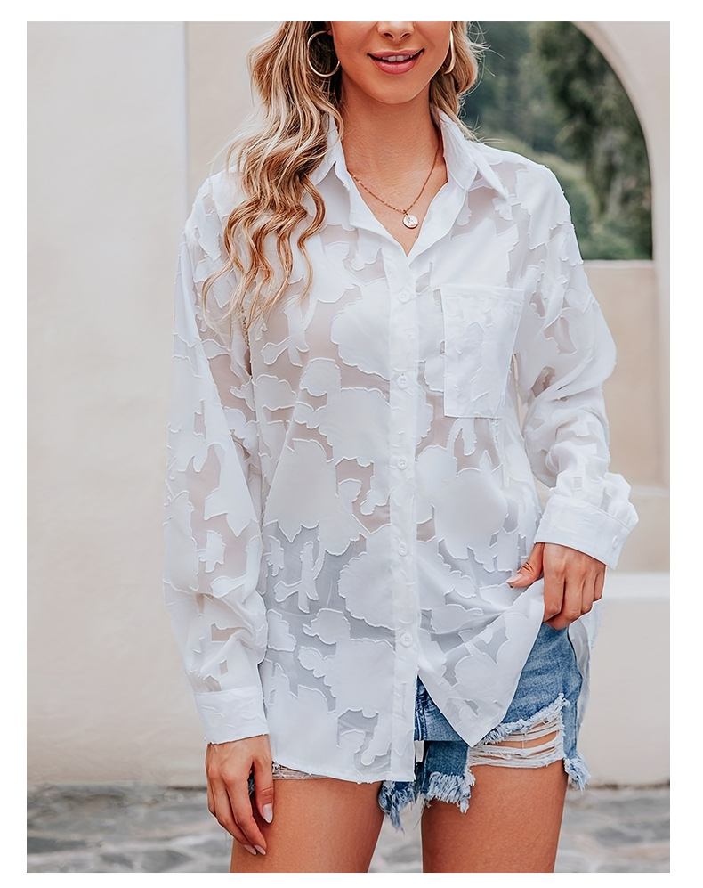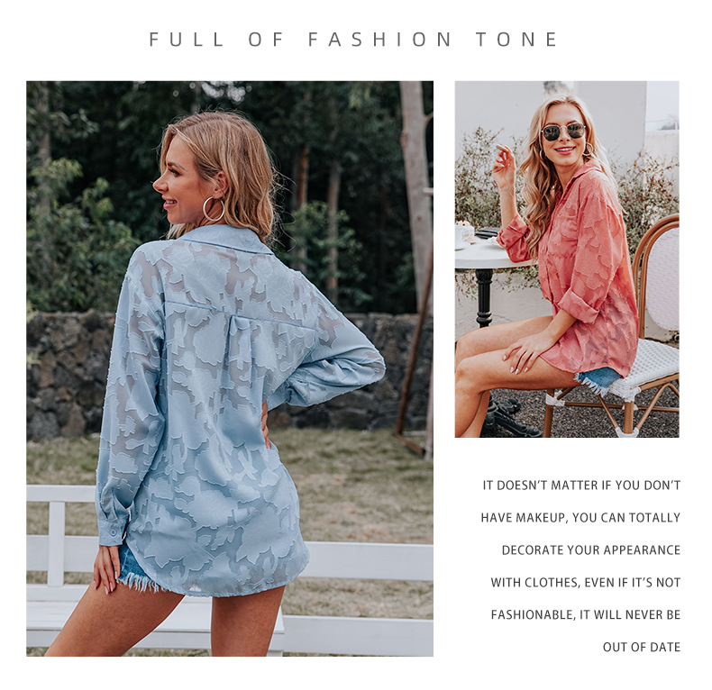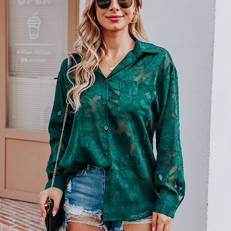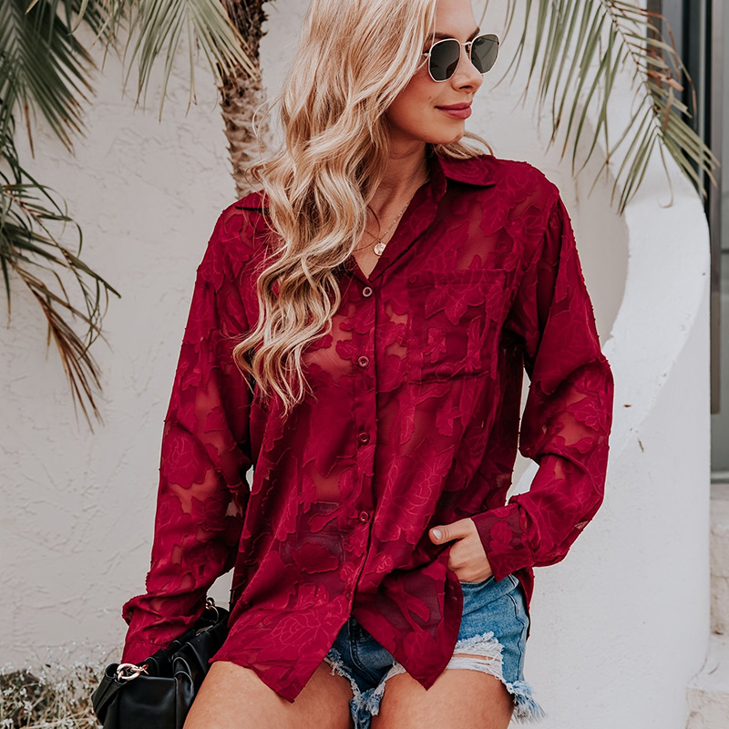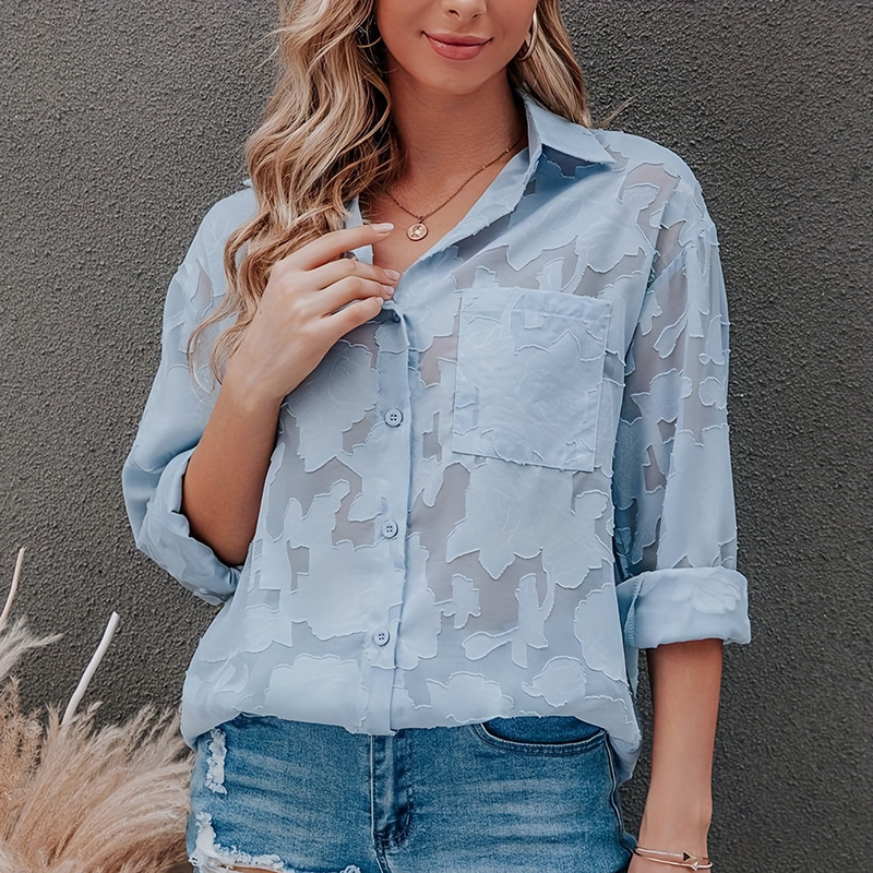 틈새 봄 새로운 레이스 패션 긴 소매 셔츠 여성 유럽과 미국의 느슨한 캐주얼 싱글 행 멀티 버튼 쉬폰 셔츠 여성스토어 가기