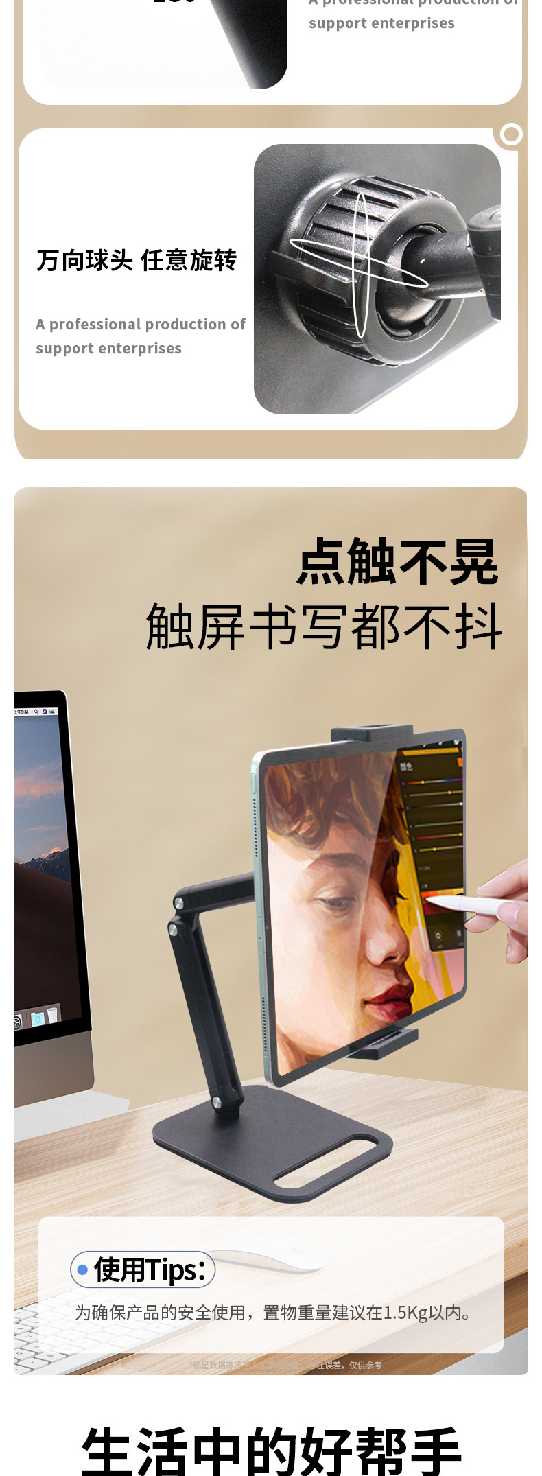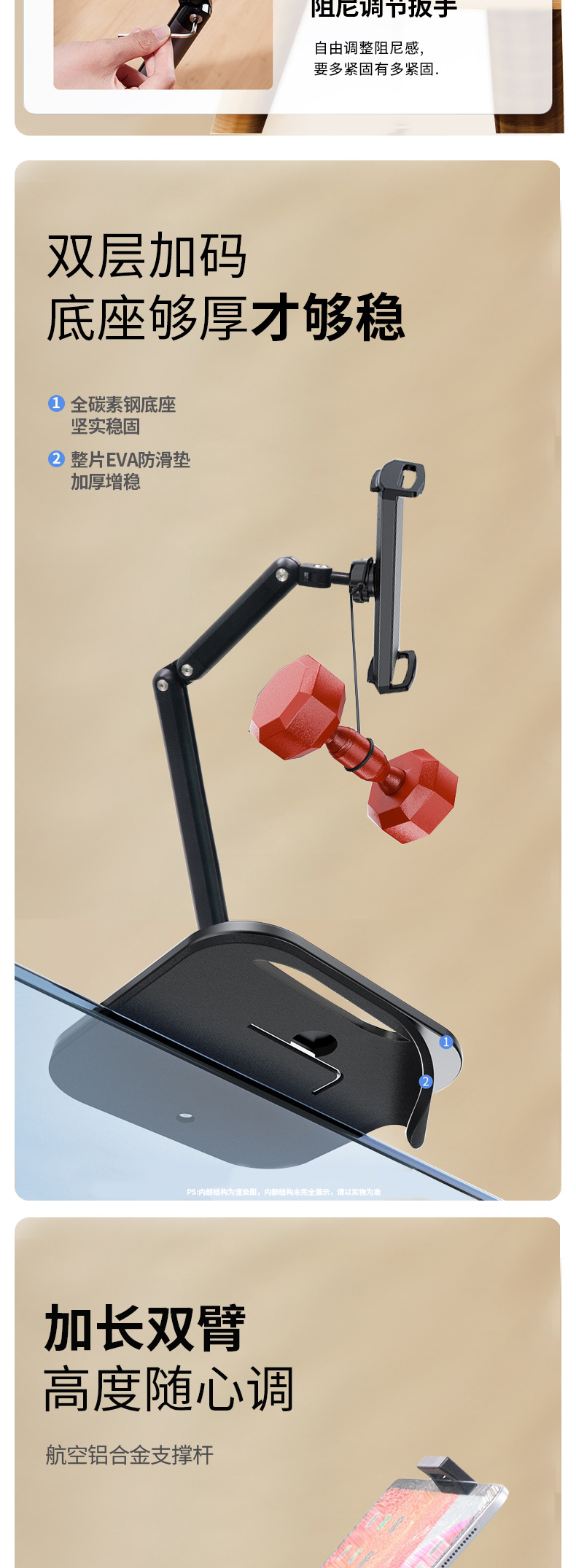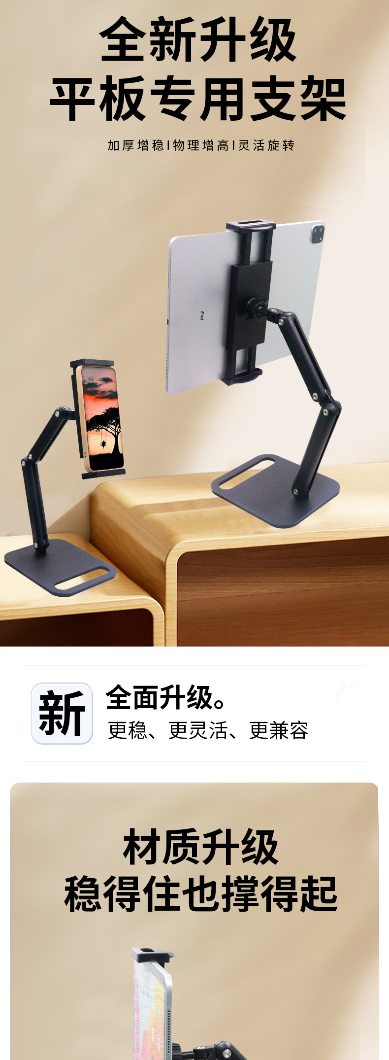 새로운 휴대용 디스플레이 3 섹션 브래킷 탄소 강철 데스크탑 휴대 전화 브래킷 라이브 특수 태블릿 컴퓨터 브래킷스토어 가기