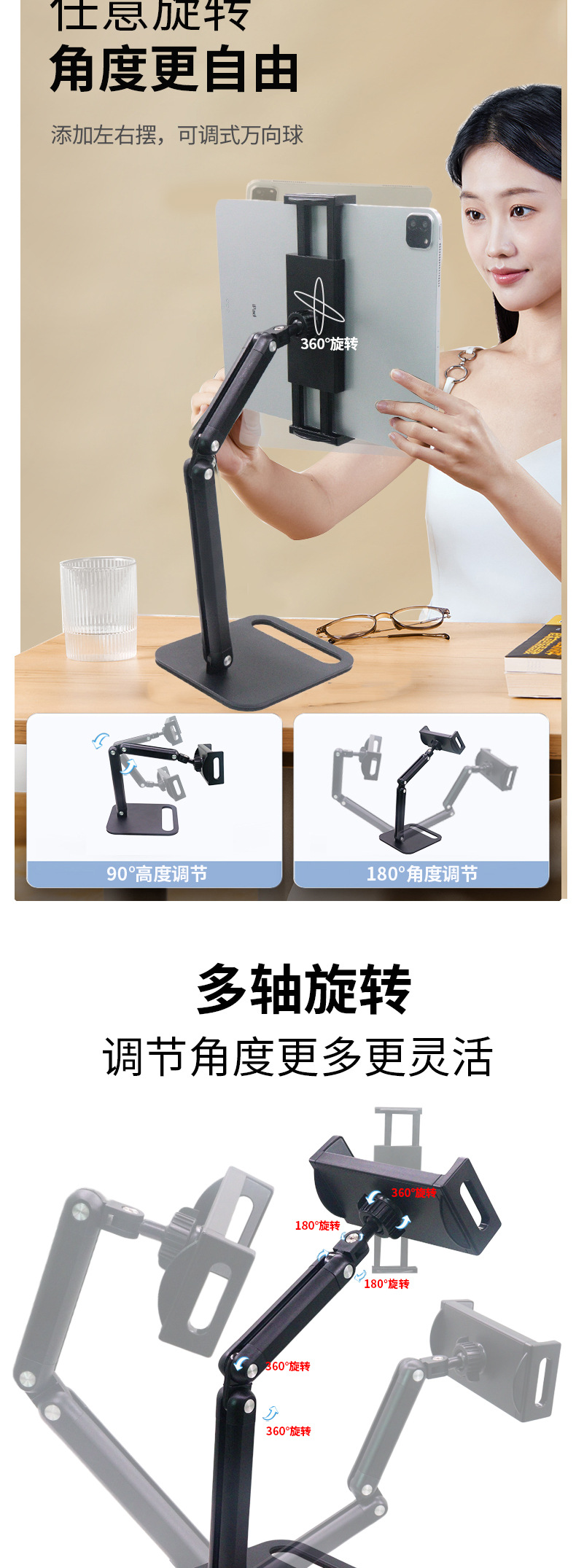 새로운 휴대용 디스플레이 3 섹션 브래킷 탄소 강철 데스크탑 휴대 전화 브래킷 라이브 특수 태블릿 컴퓨터 브래킷