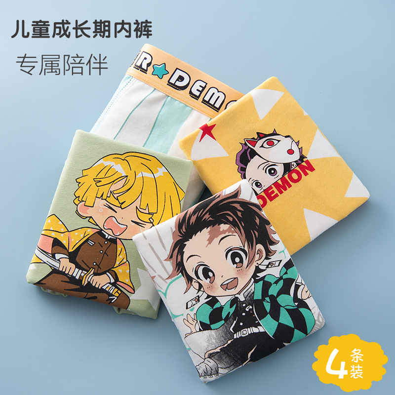 어린이 속옷 코튼 보이즈 중년 남학생과 학생 만화 코튼 쇼트 바지 4 개 코너스토어 가기