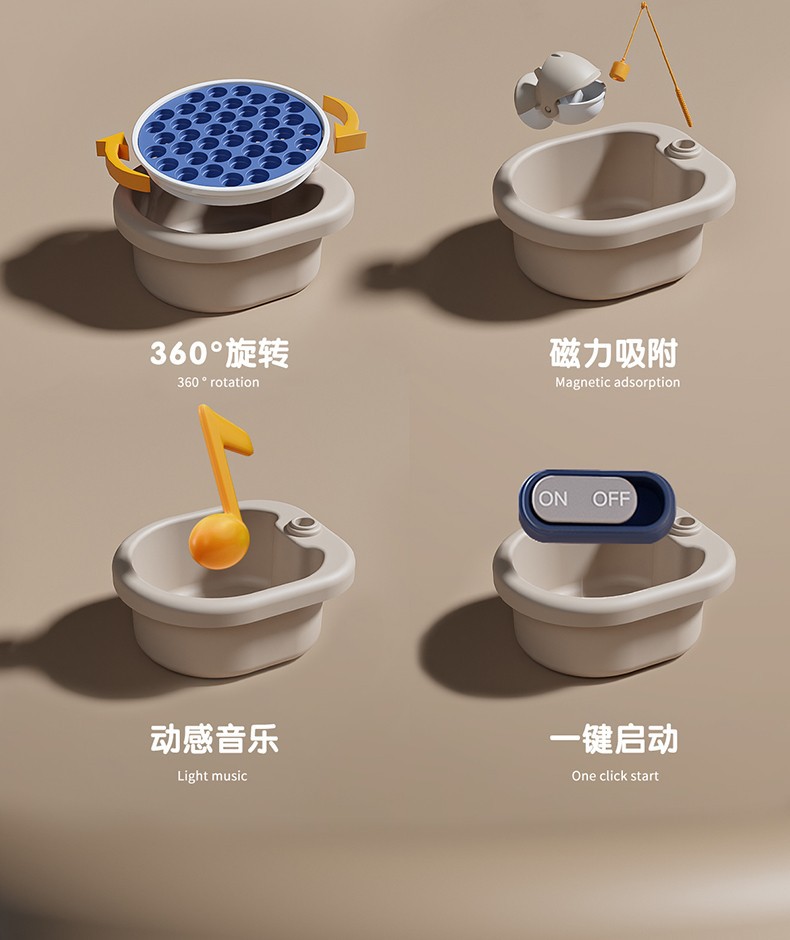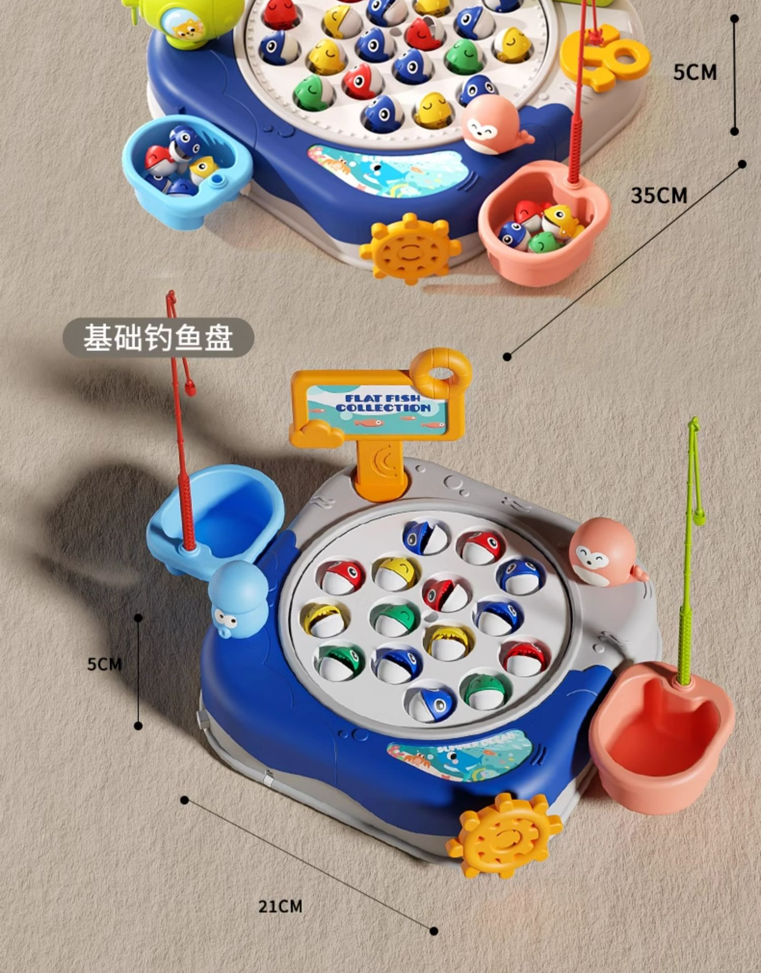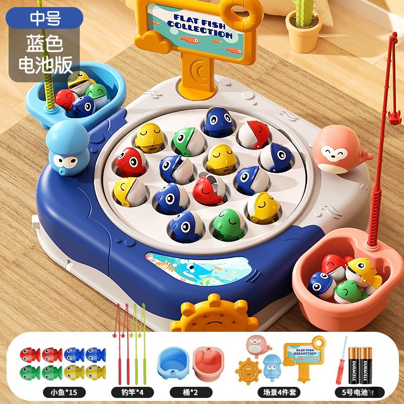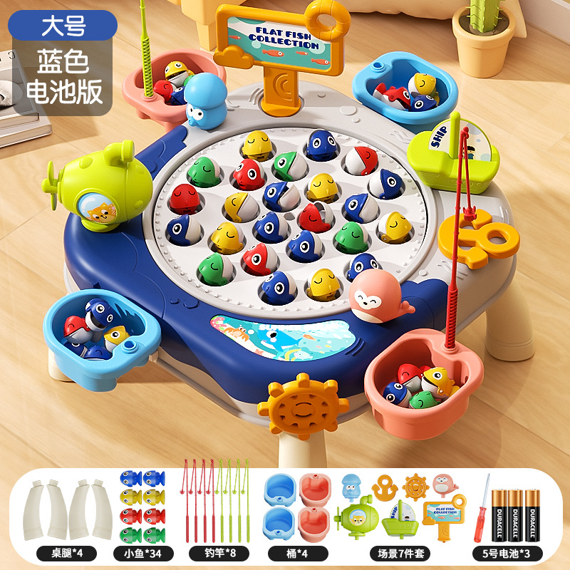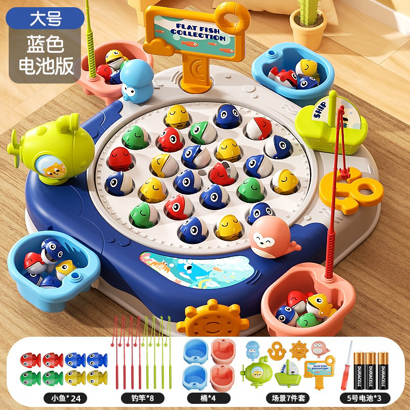 • 블루-대형 자기 턴테이블 [24 물고기, 8 막대, 2 배럴 장면]]