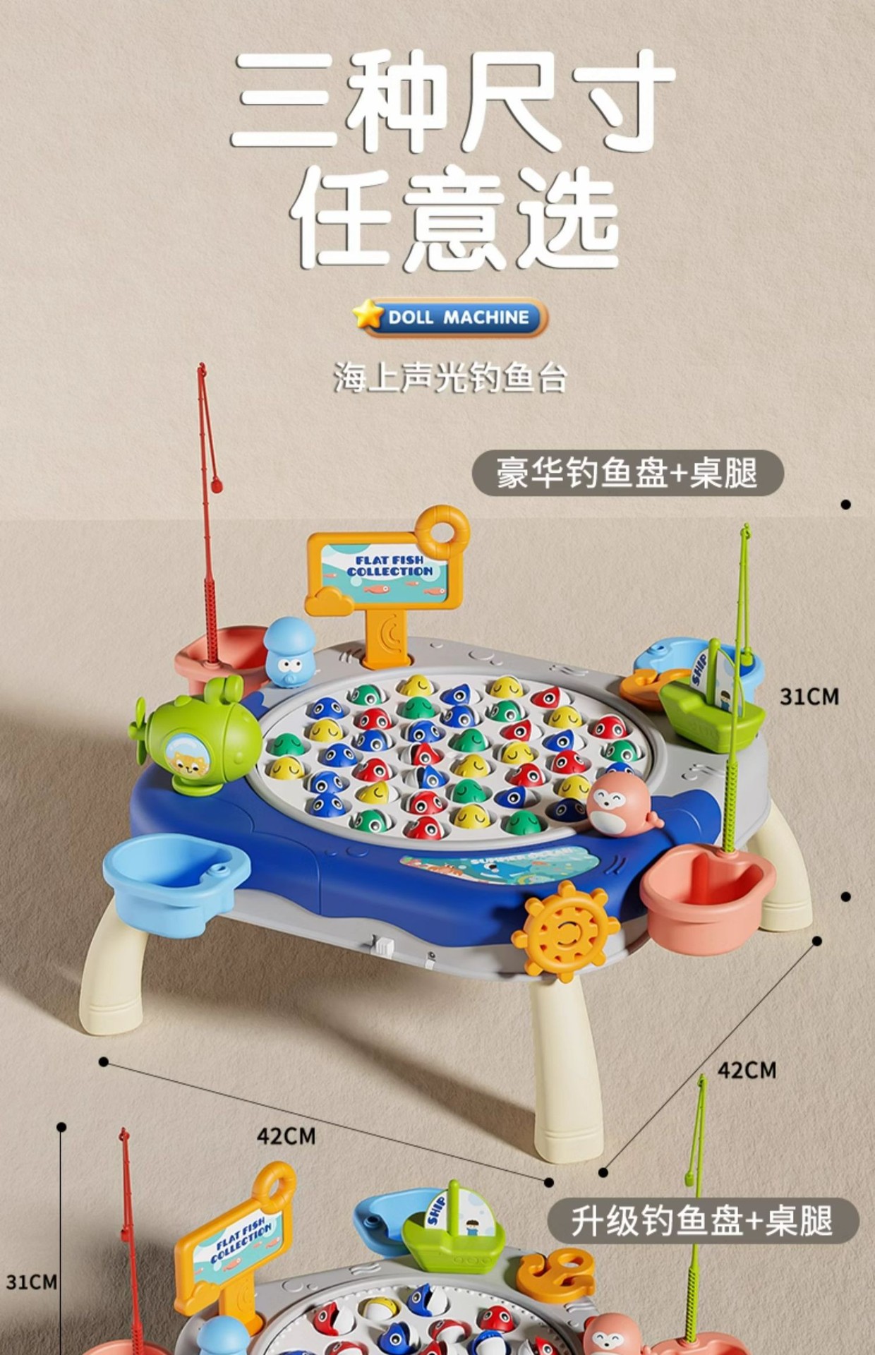 • 블루-대형 플러스 테이블 발 [34 물고기, 8 막대, 2 배럴 장면]