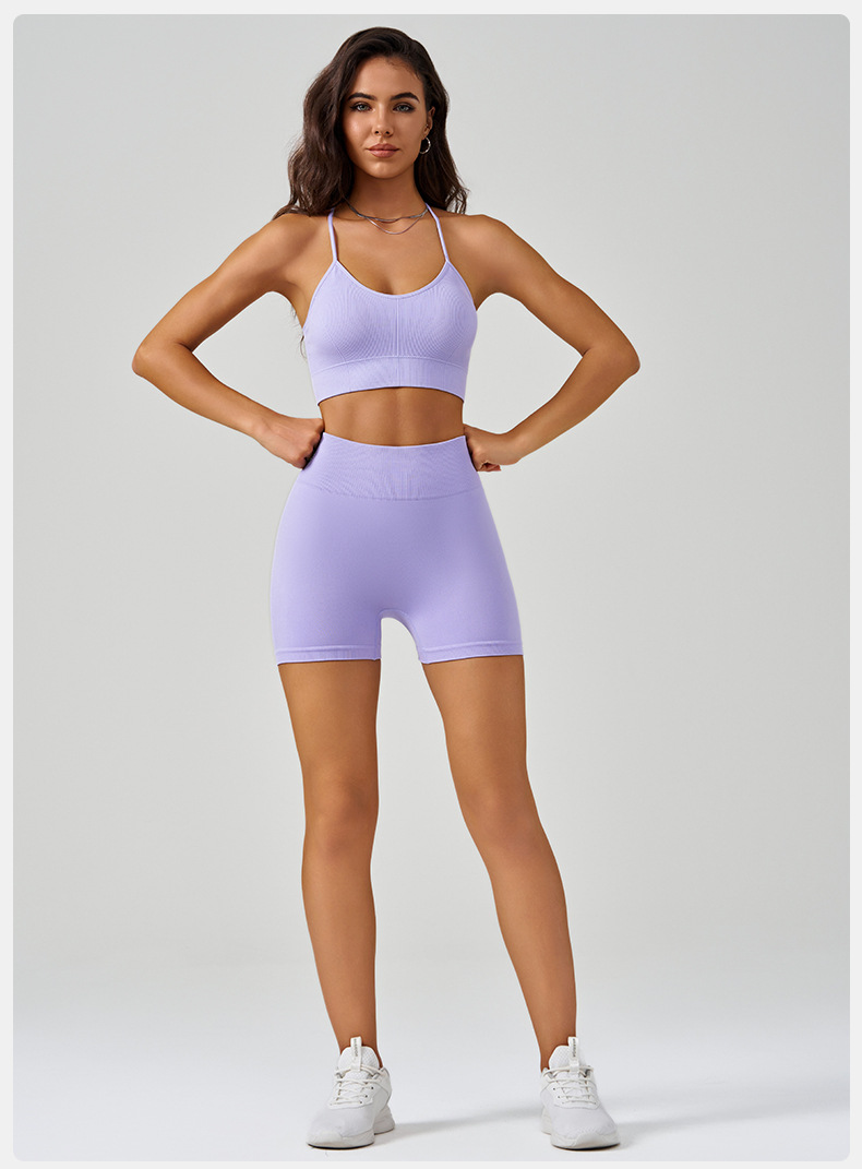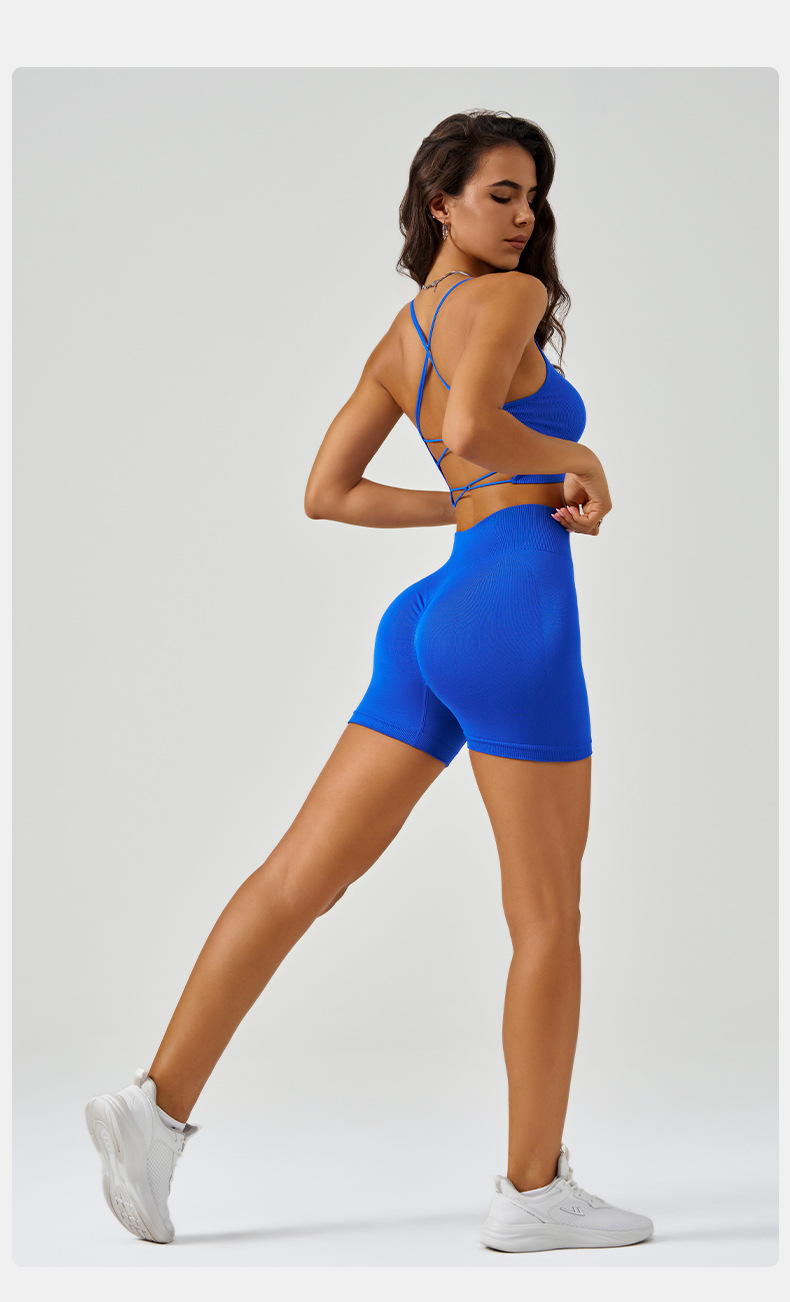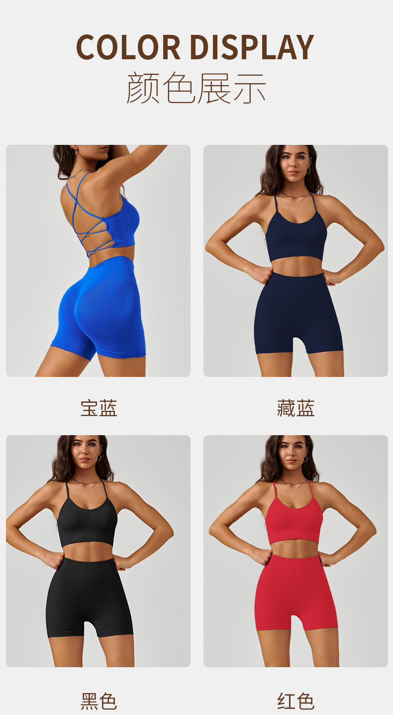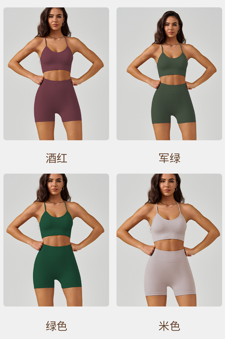 주만 여름 요가 세트 여성 투피스 원활한 조끼 3 점 요가 바지 유럽과 미국의 피트니스 반바지 세트