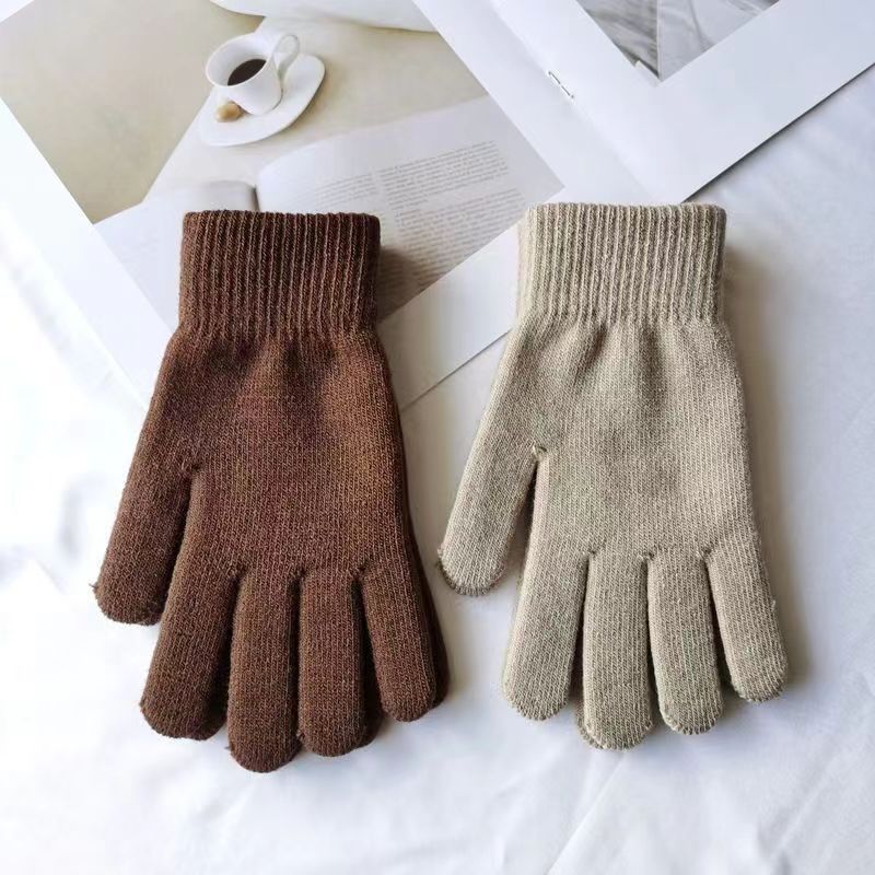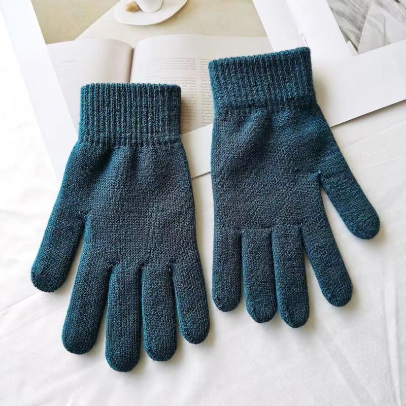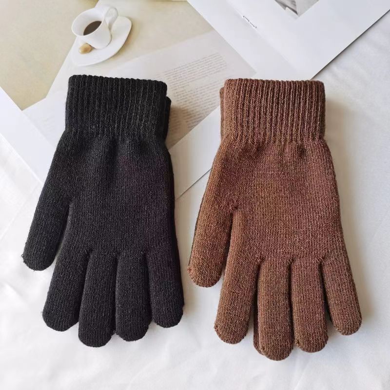 가을, 겨울 솔리드 컬러 니트 장갑 두꺼운 플러스 벨벳 탄성 니트 다섯 손가락 장갑 따뜻한 야외 사이클링 장갑